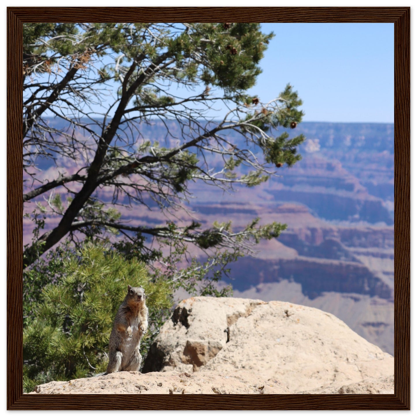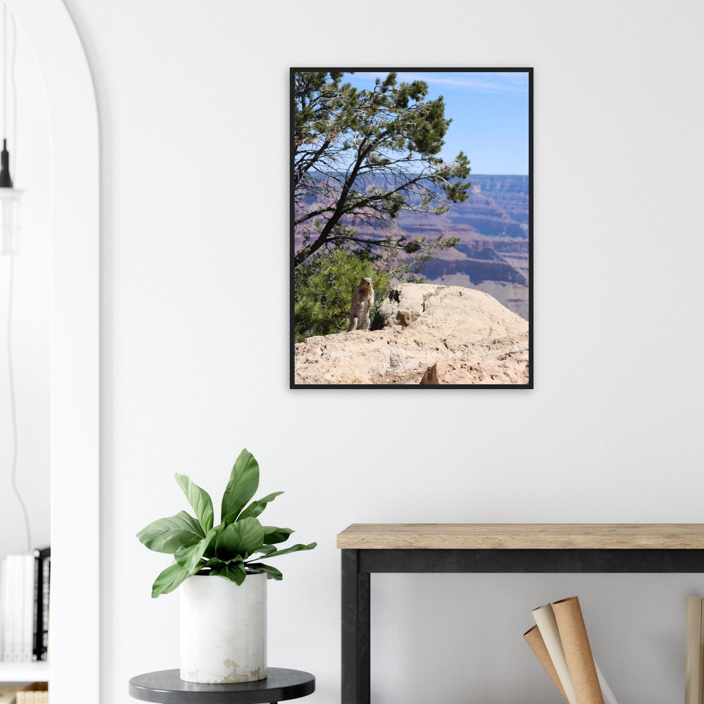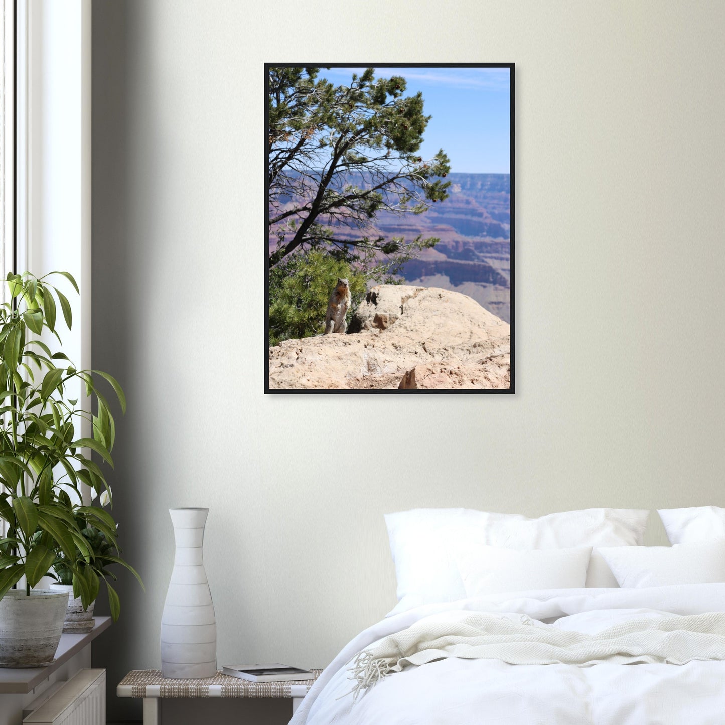 Squirrel by the canyon - Premium Matte Paper Wooden Framed Poster