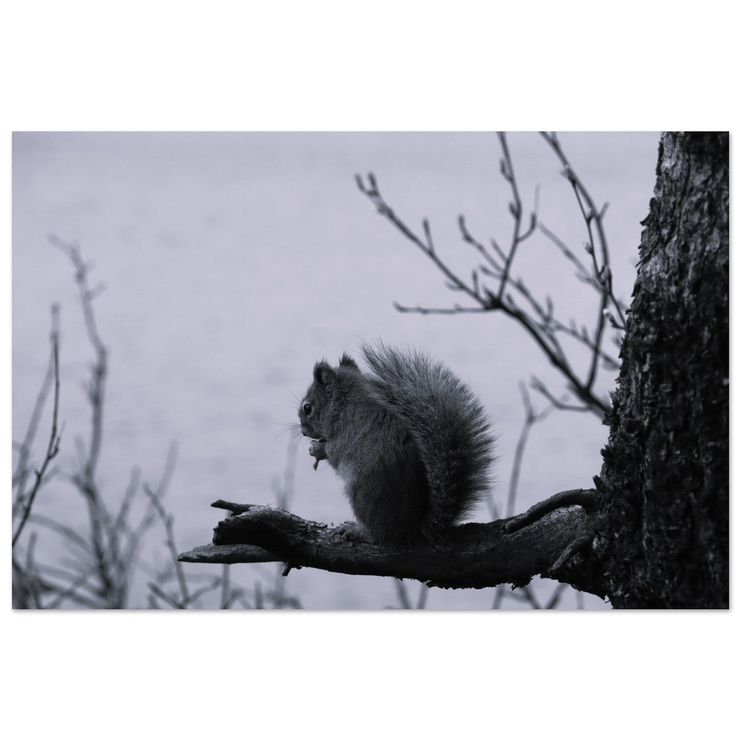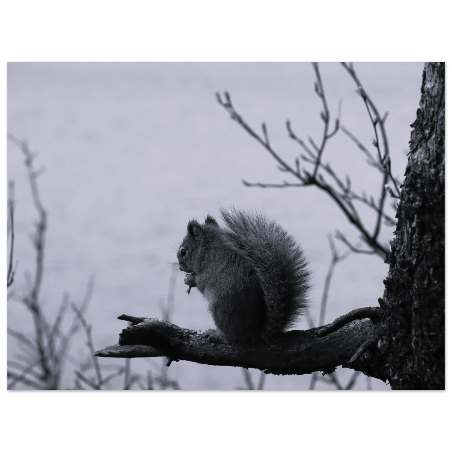 Squirrel on a branch, Grand Teton National Park - Black & White - Lightweight foam board.