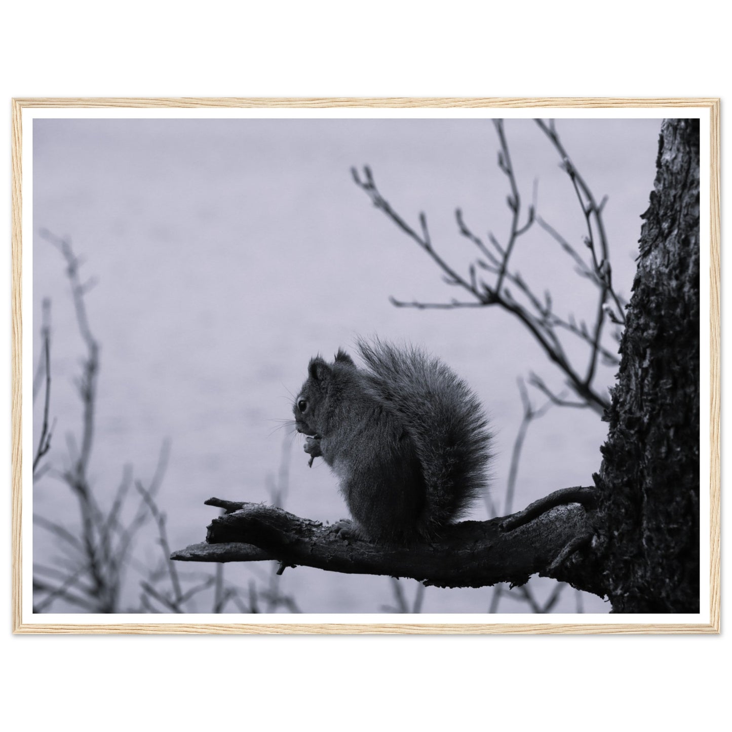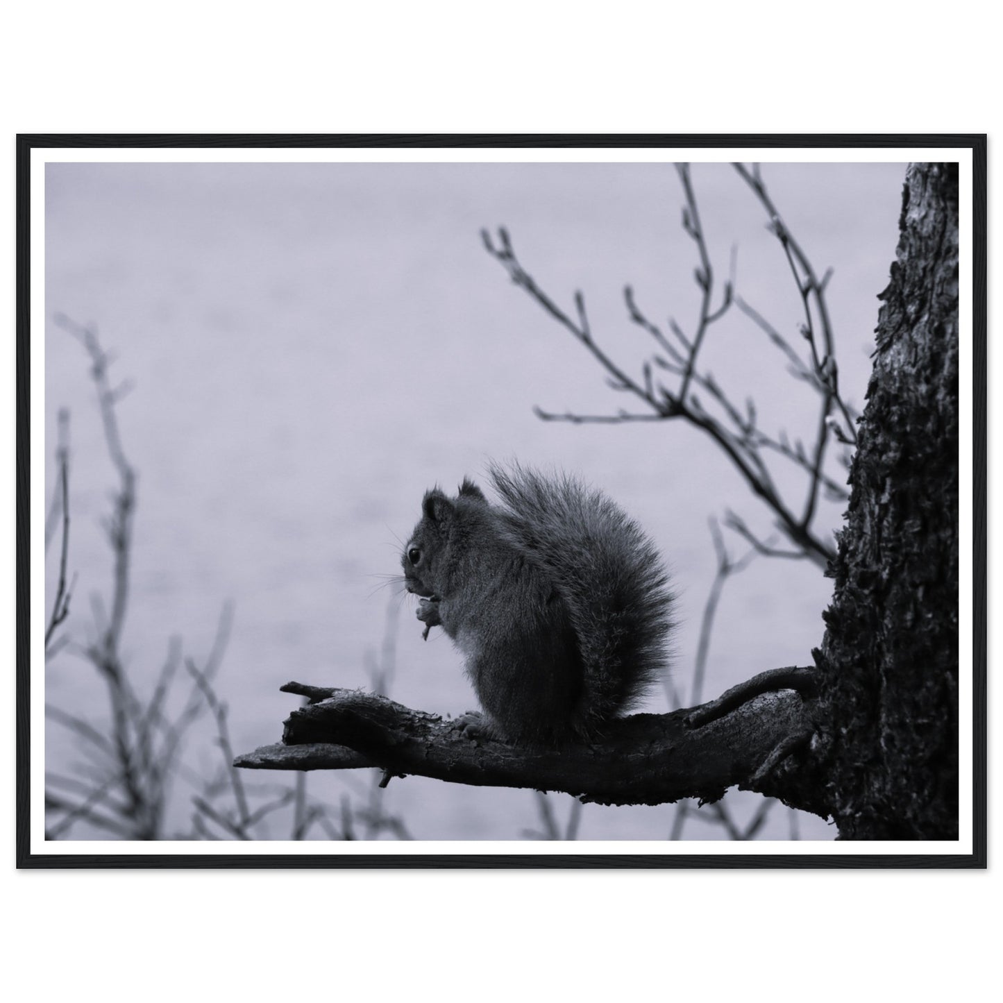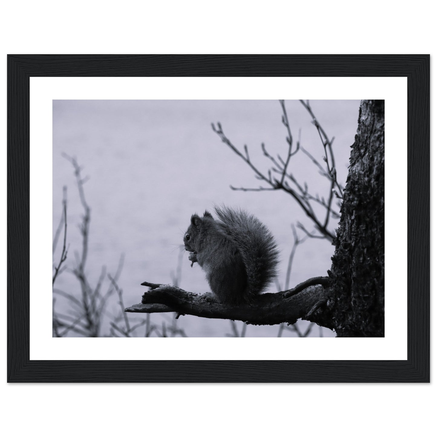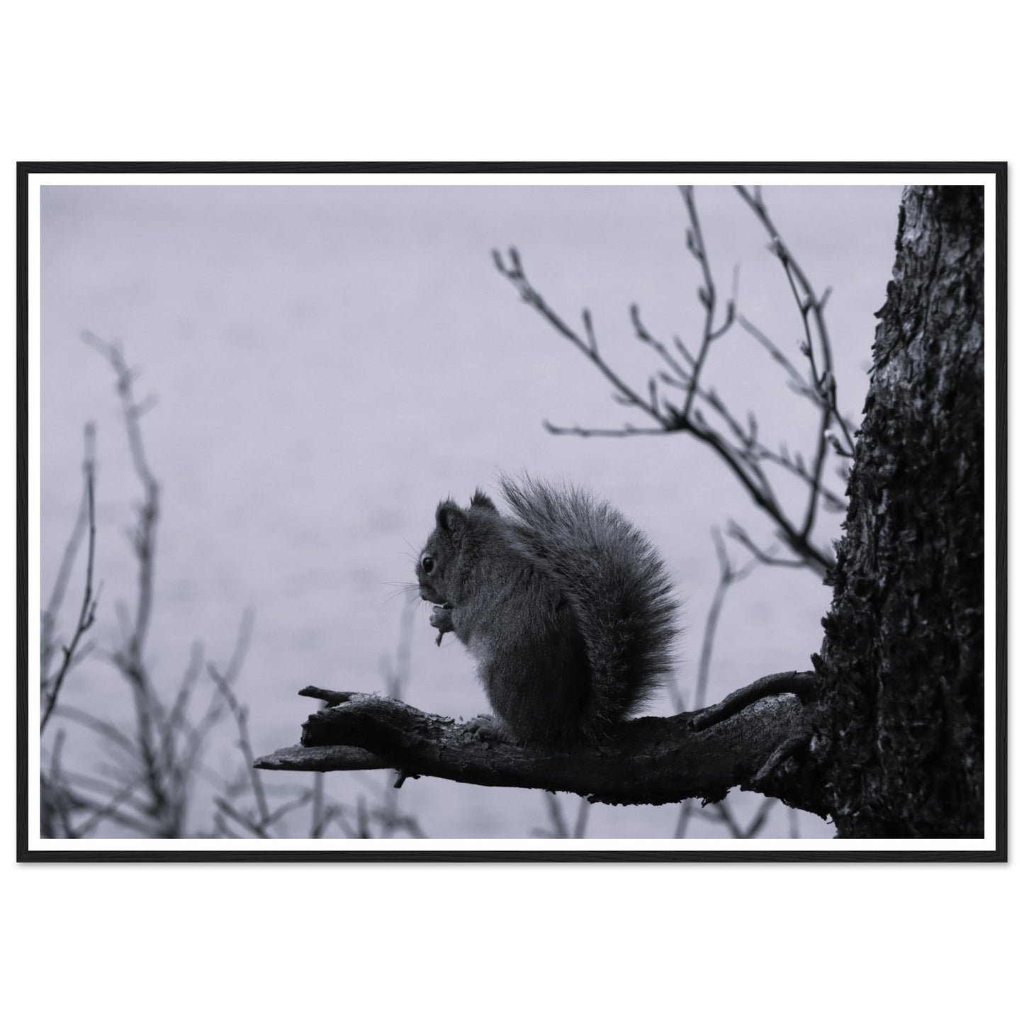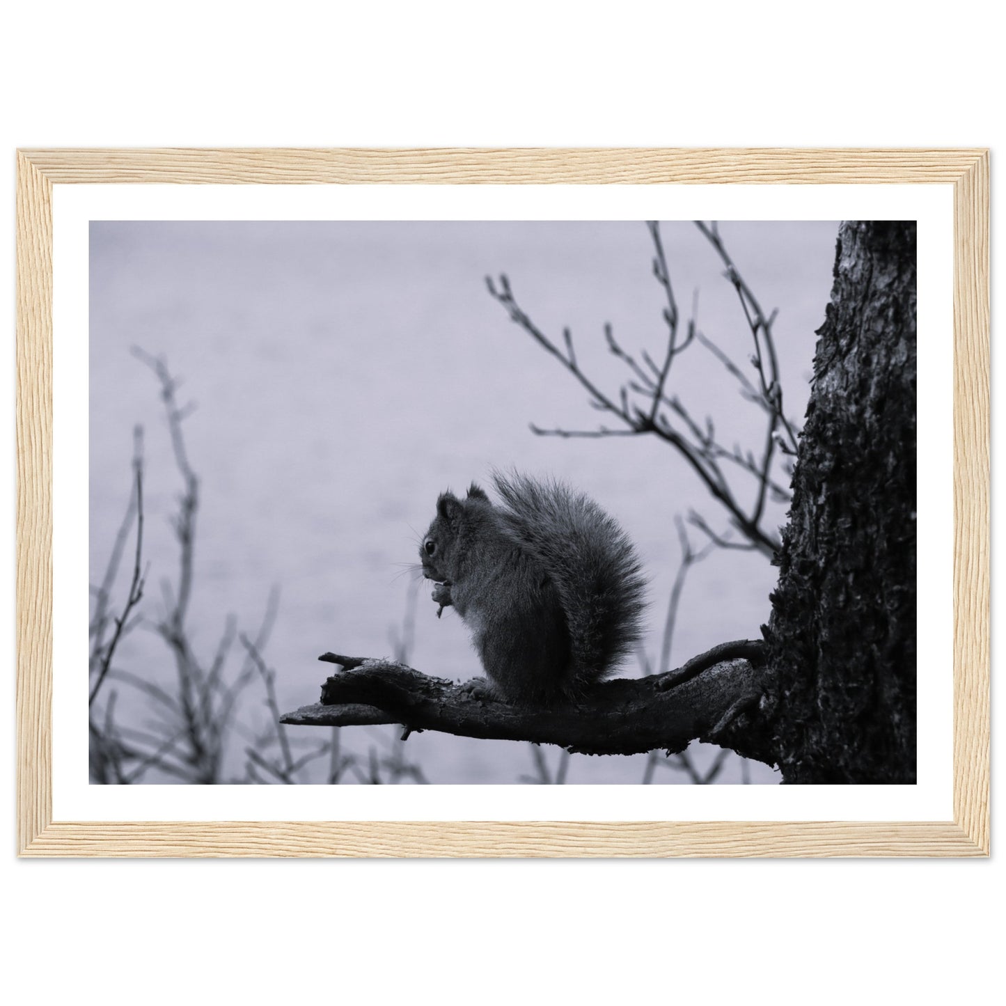 Squirrel on a branch, Grand Teton National Park - Black & White - Premium matte paper poster with wooden frame