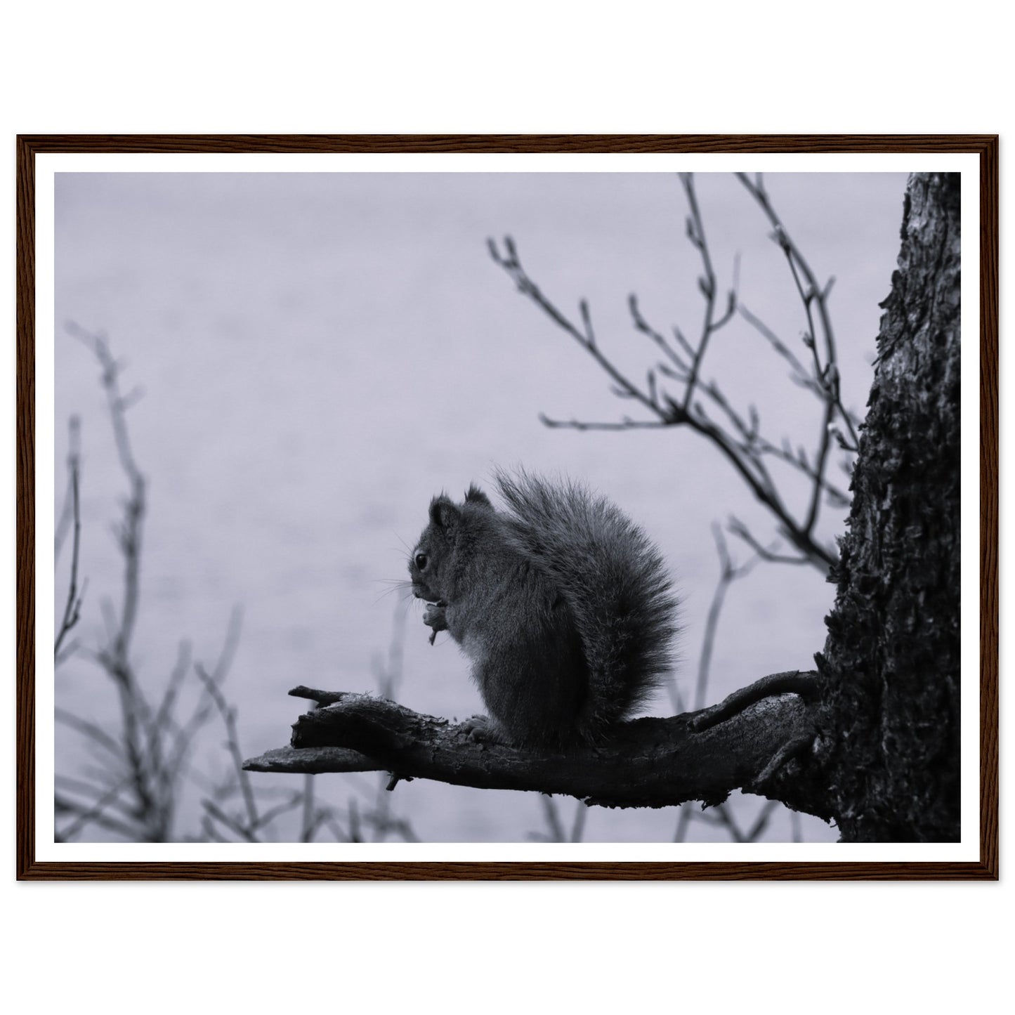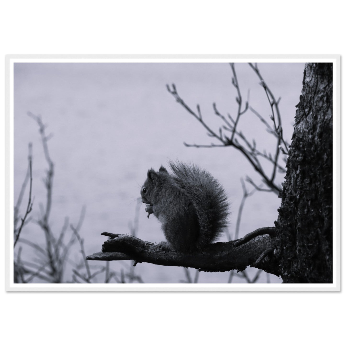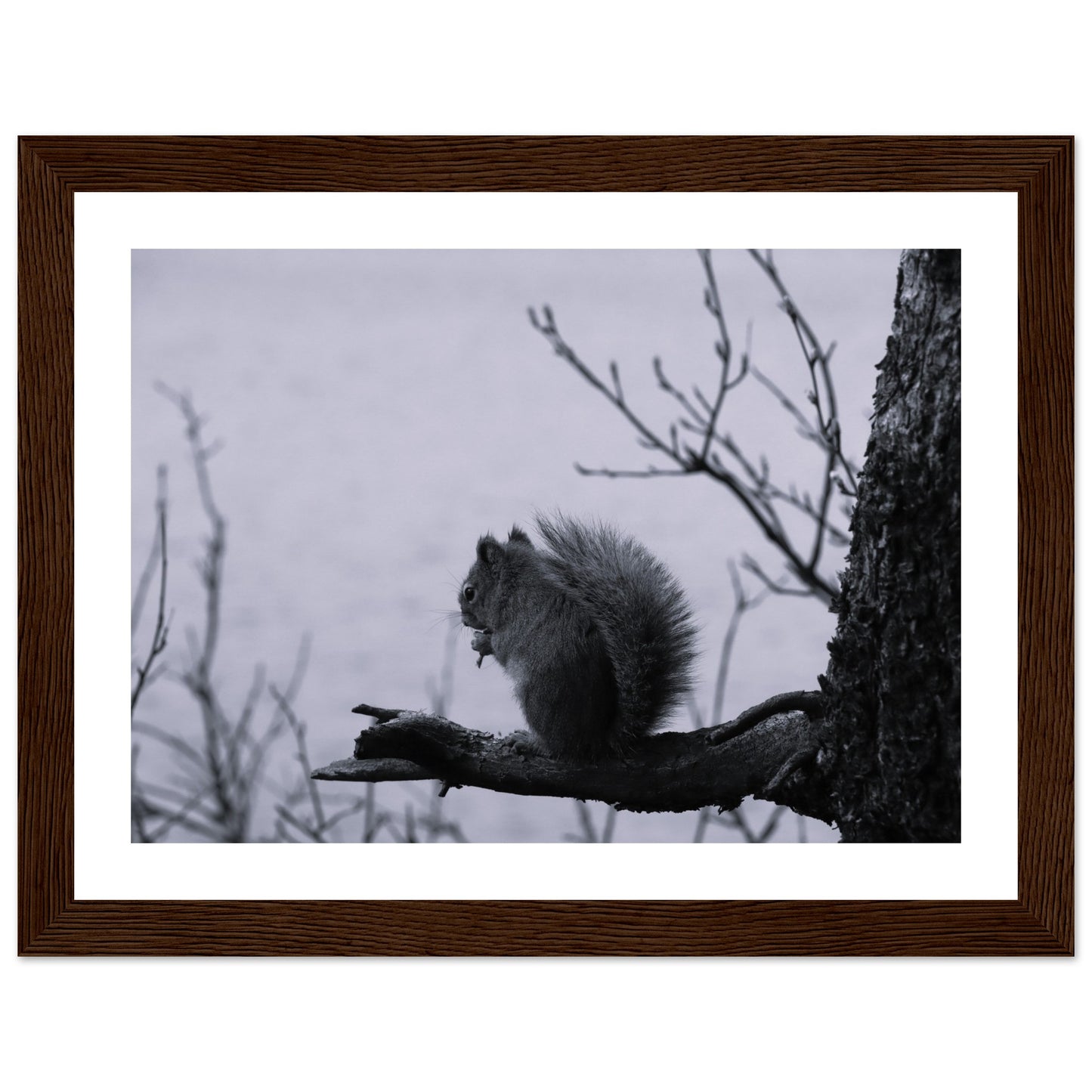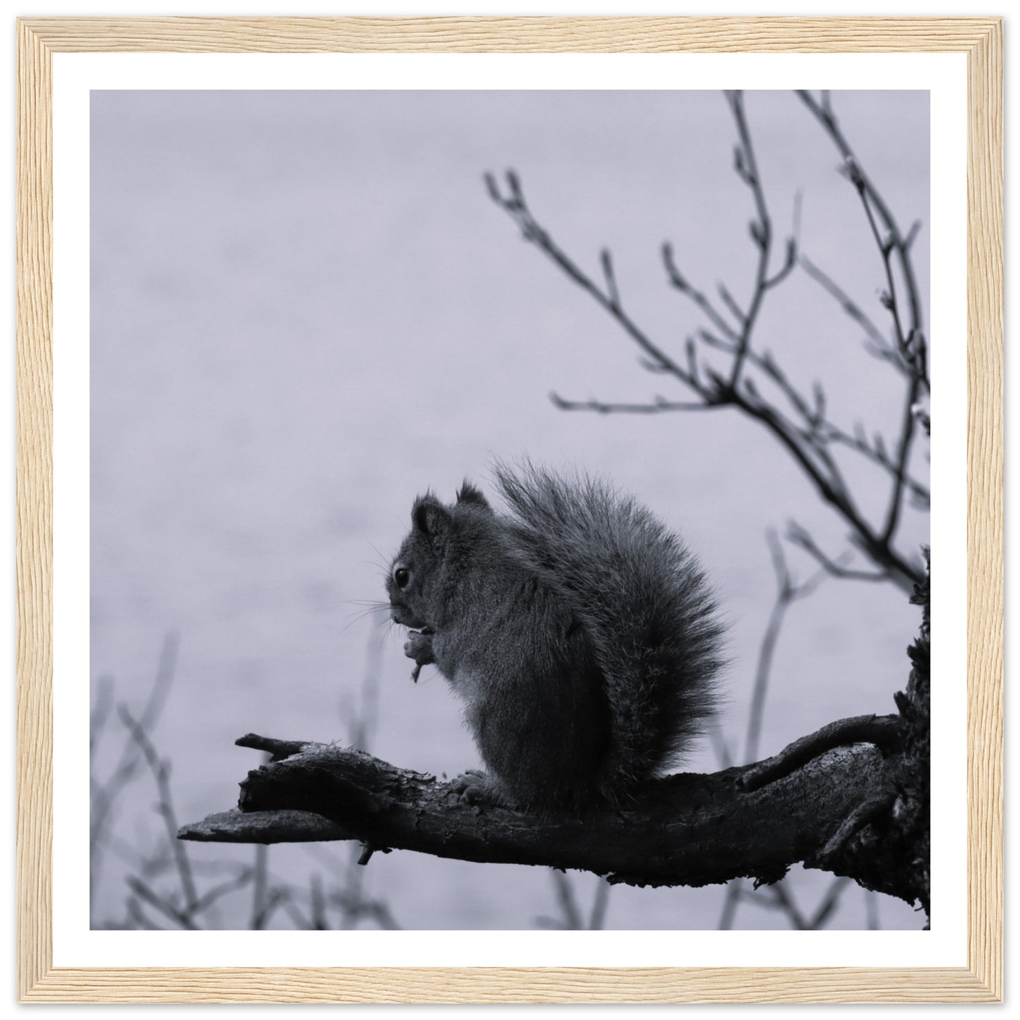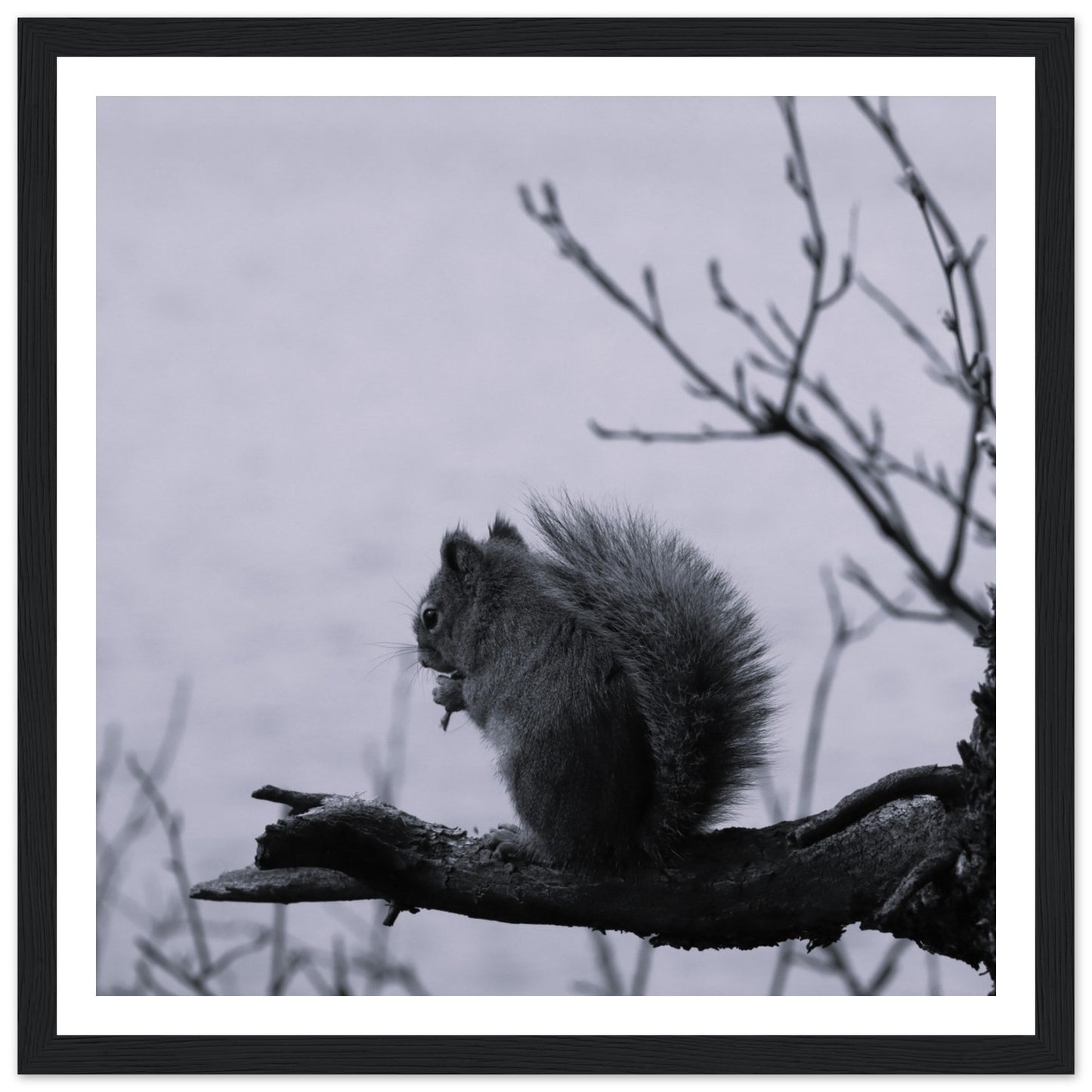 Squirrel on a branch, Grand Teton National Park - Black & White - Premium matte paper poster with wooden frame