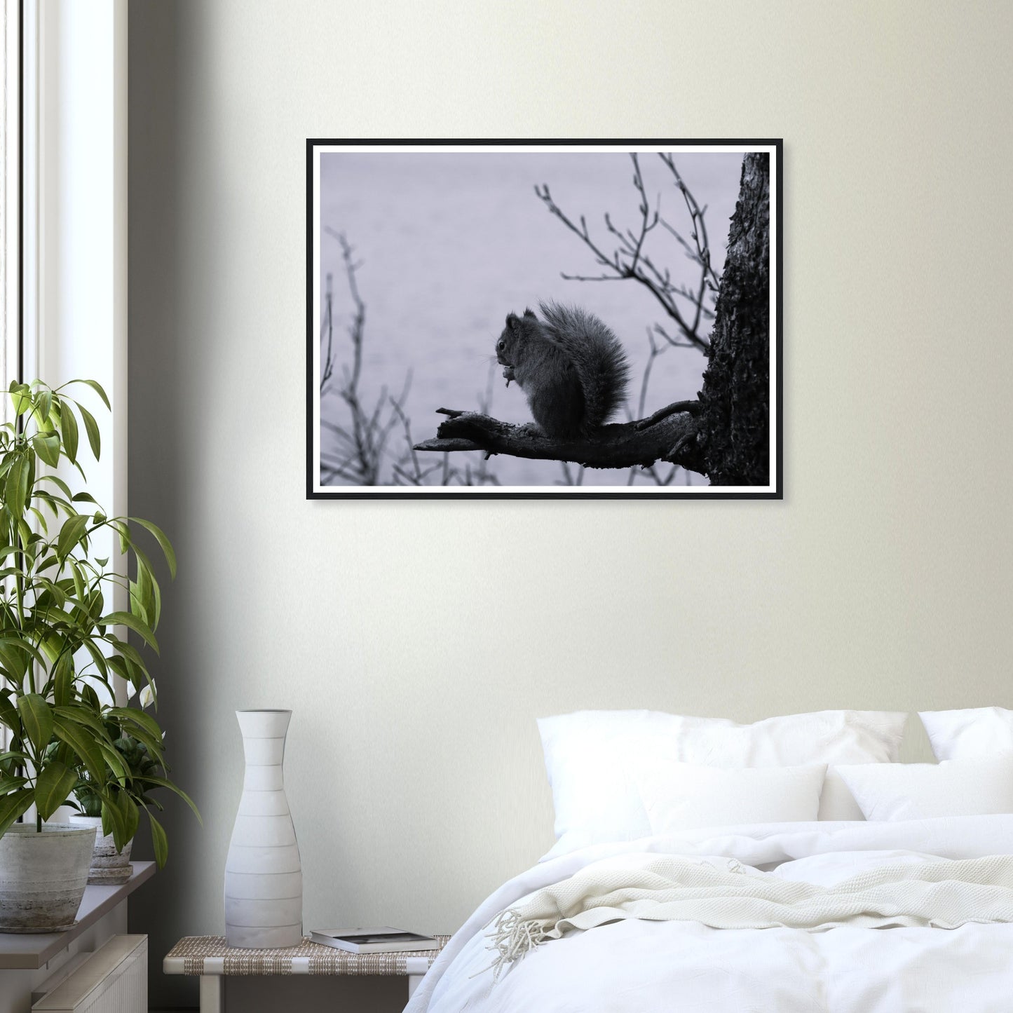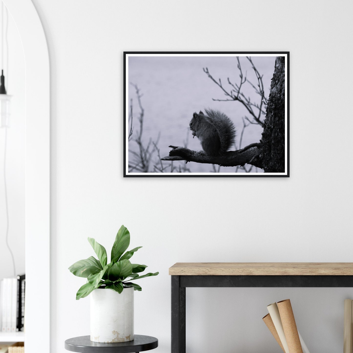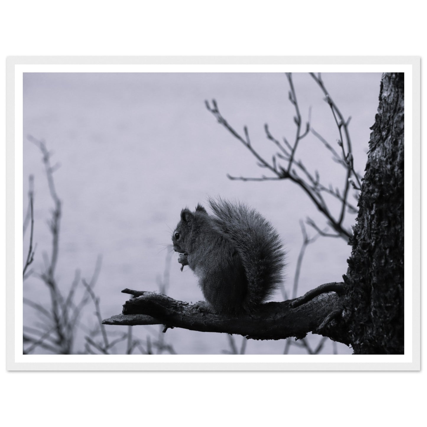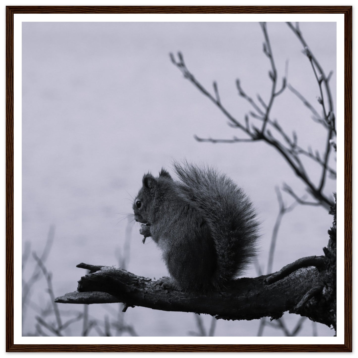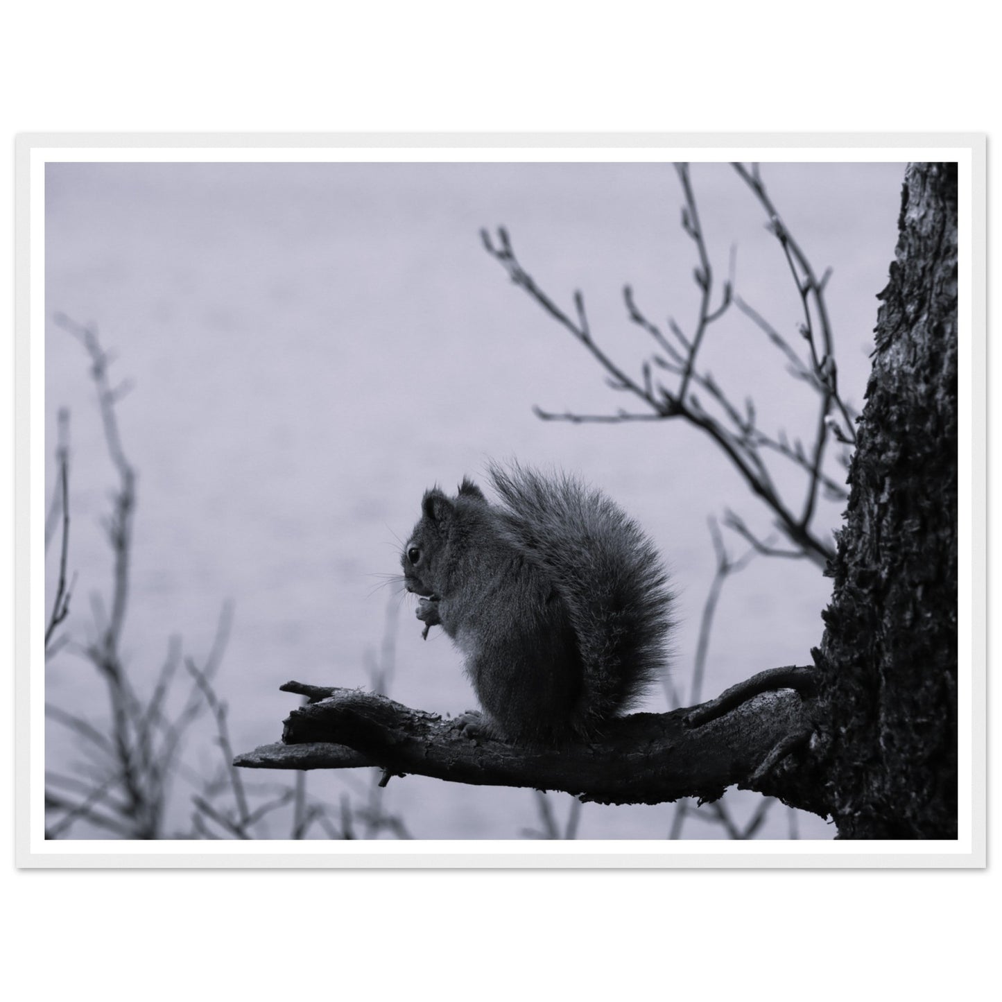 Squirrel on a branch, Grand Teton National Park - Black & White - Premium matte paper poster with wooden frame