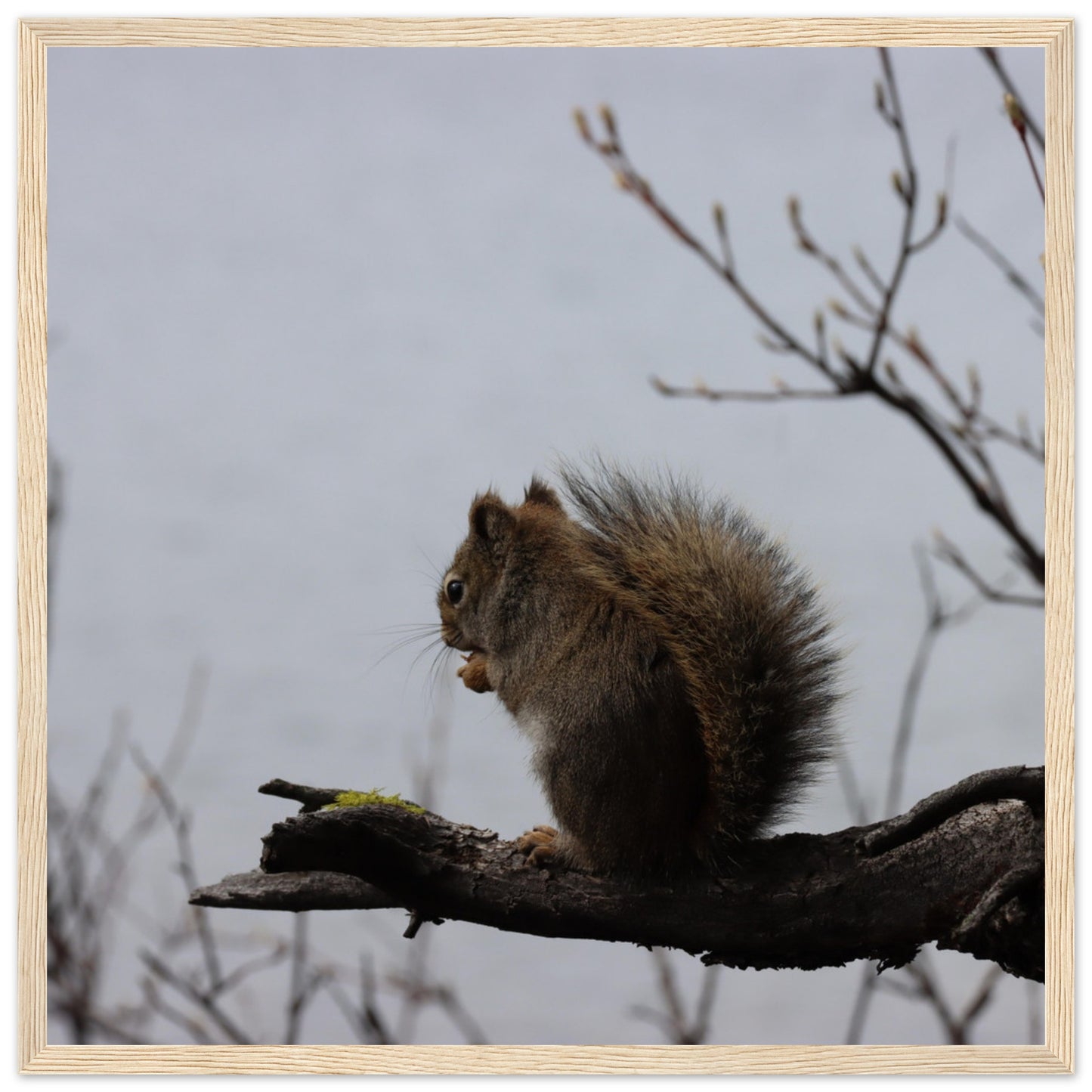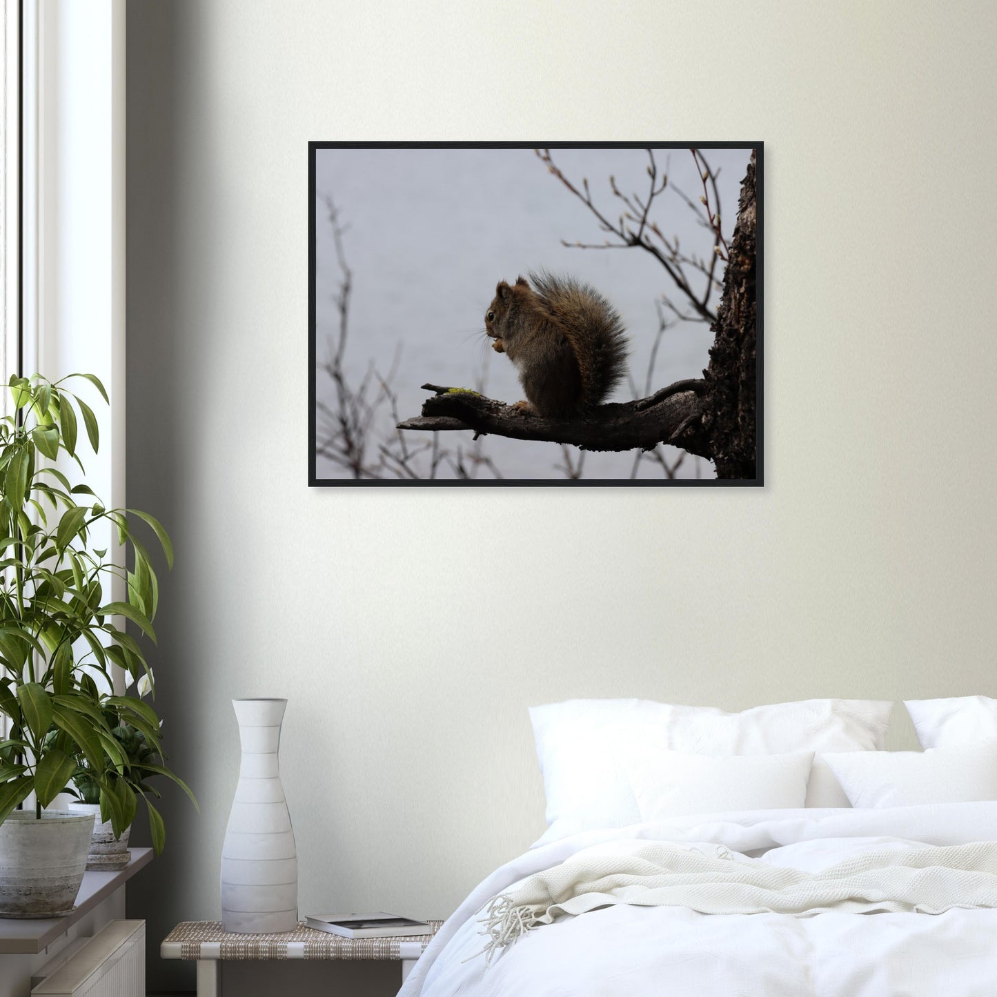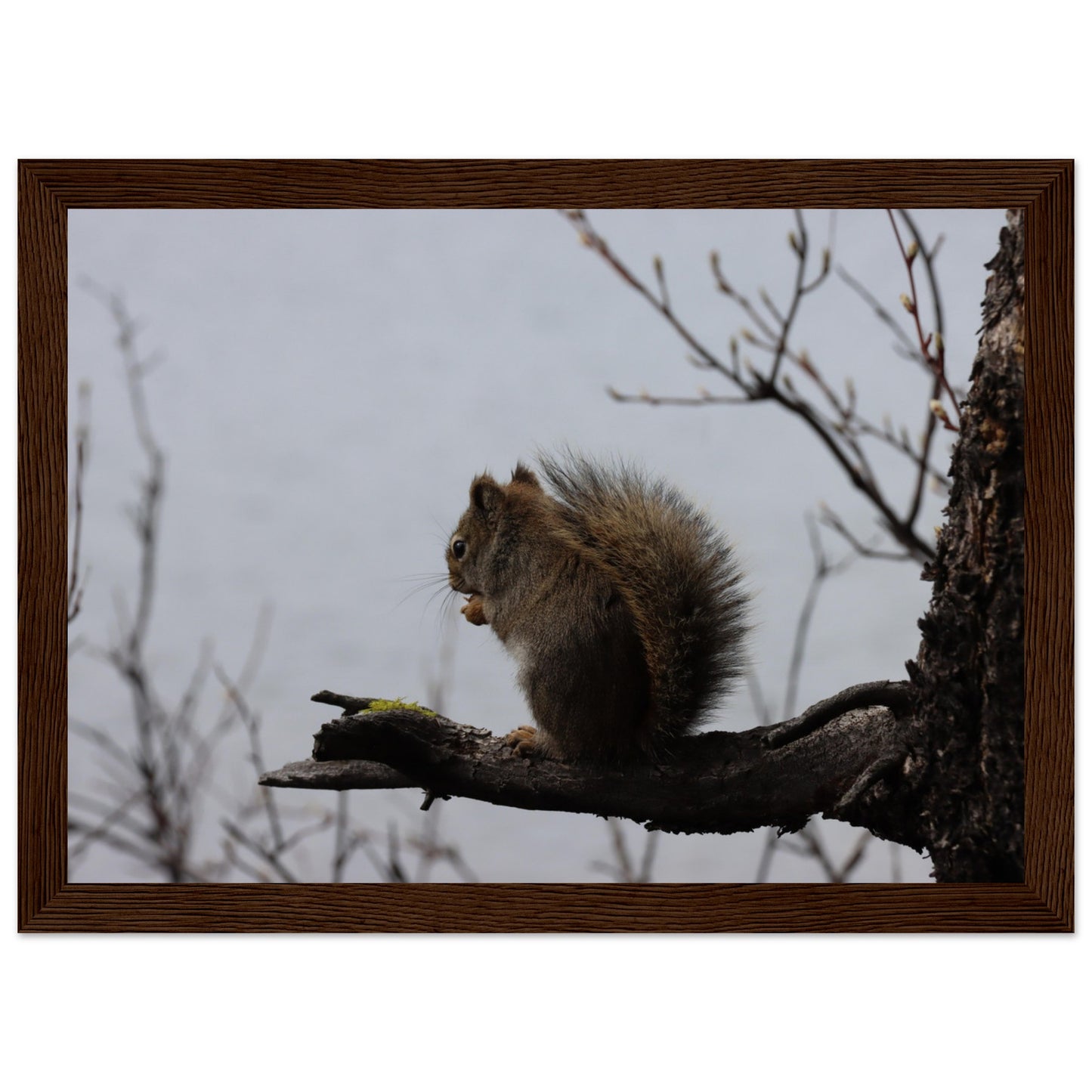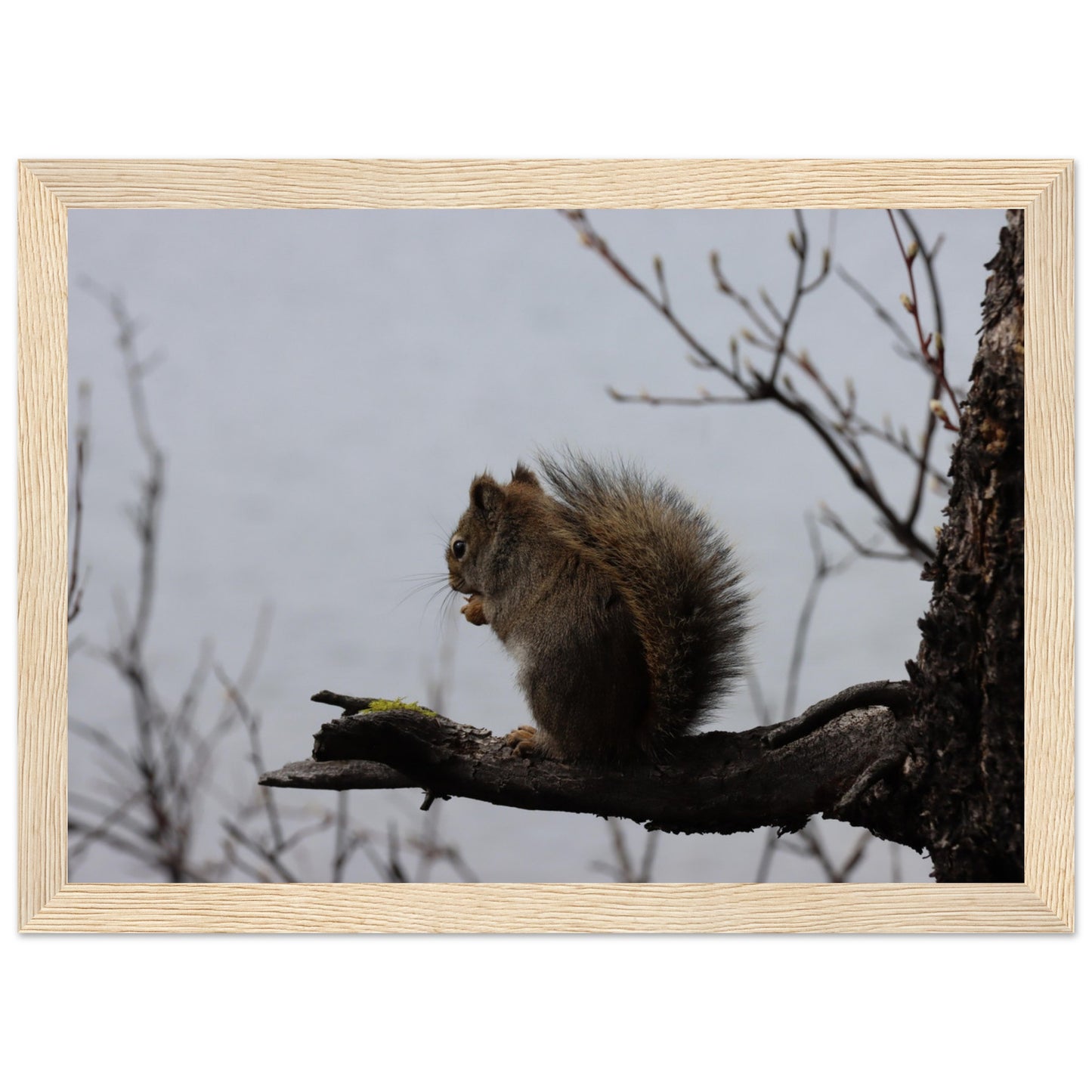 Squirrel on a branch - Premium matte paper poster with wooden frame