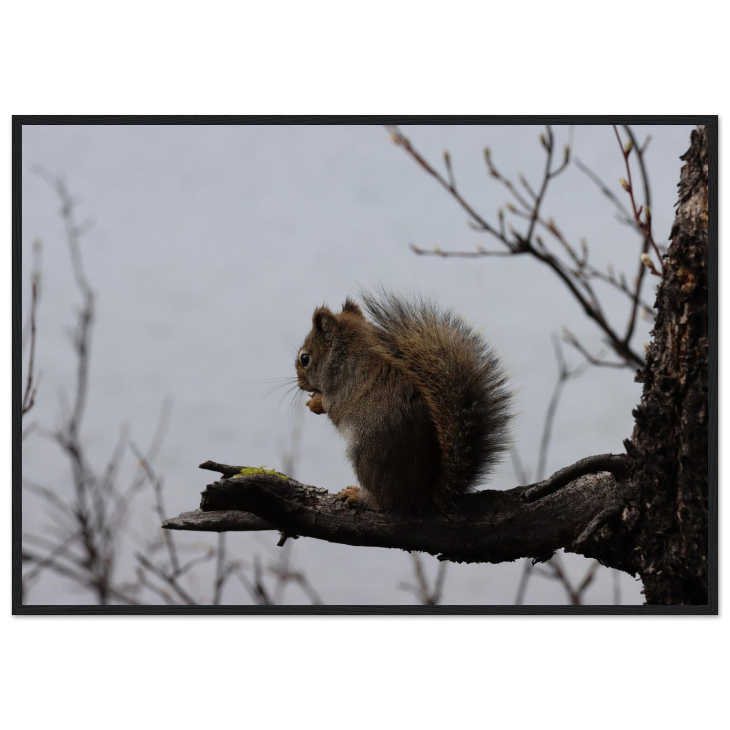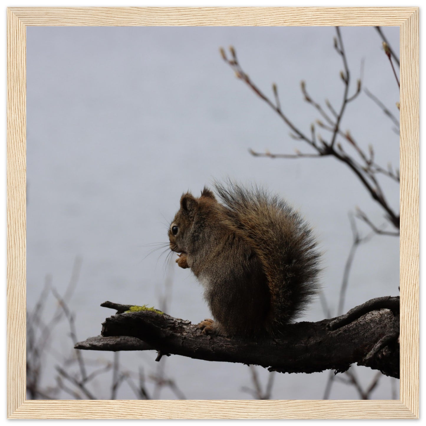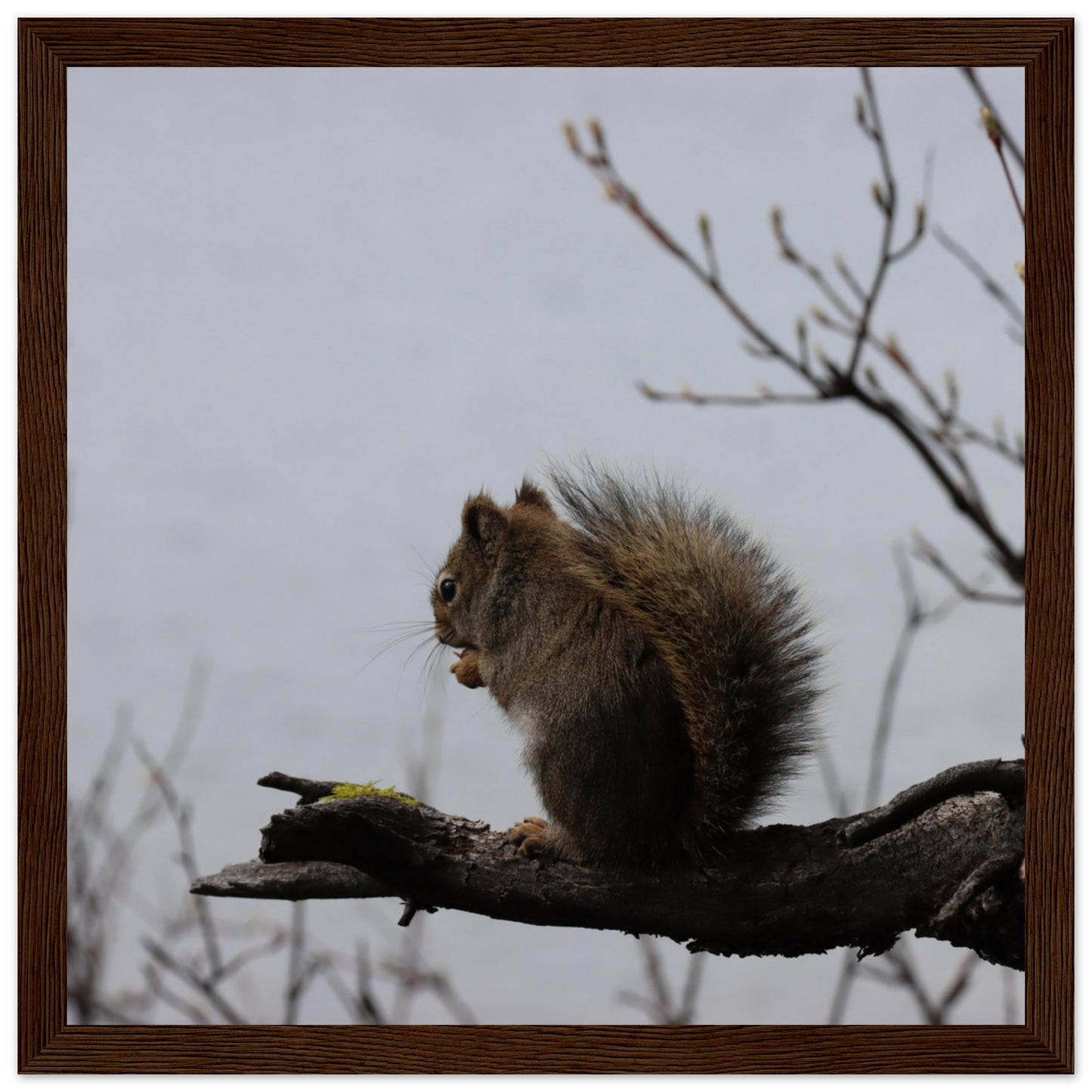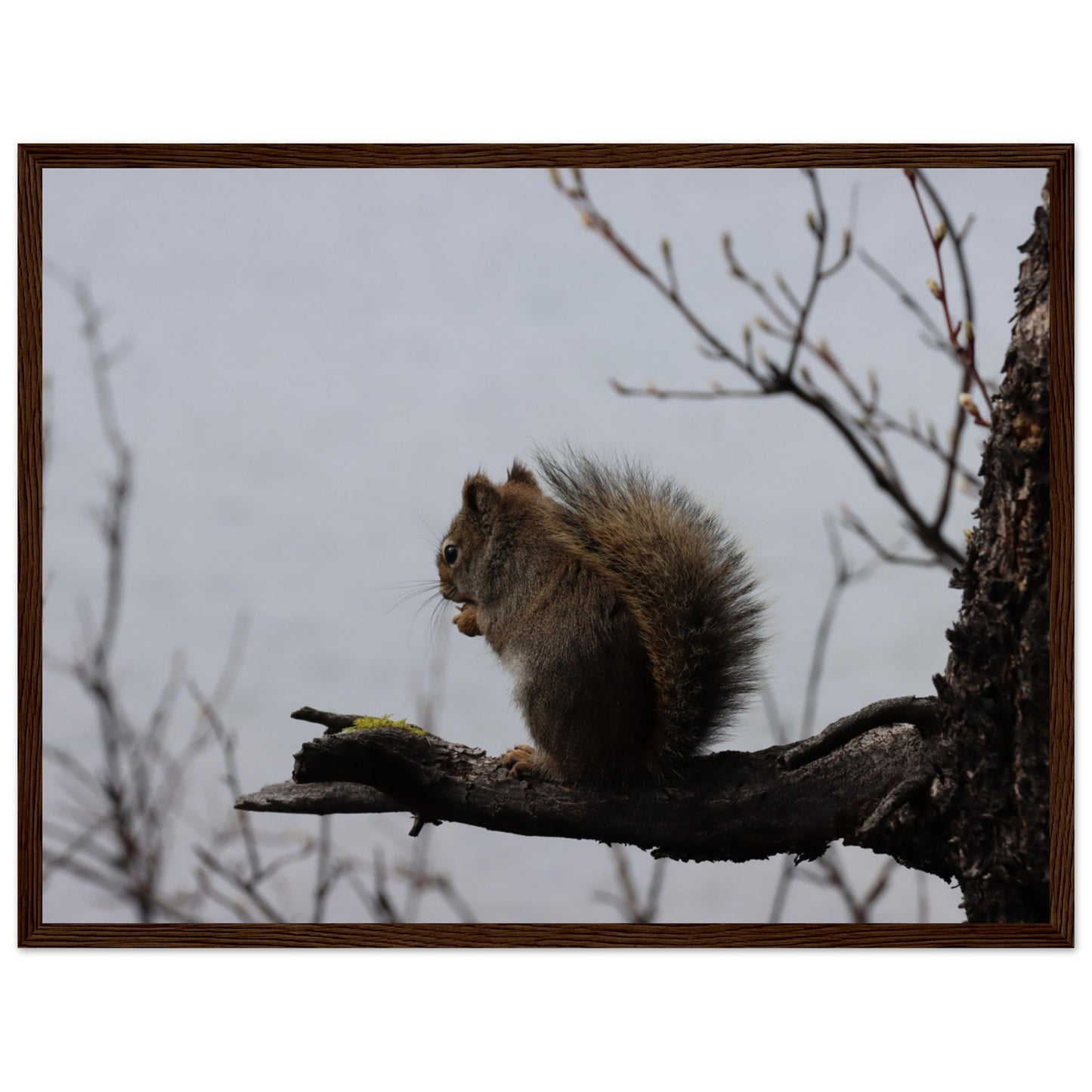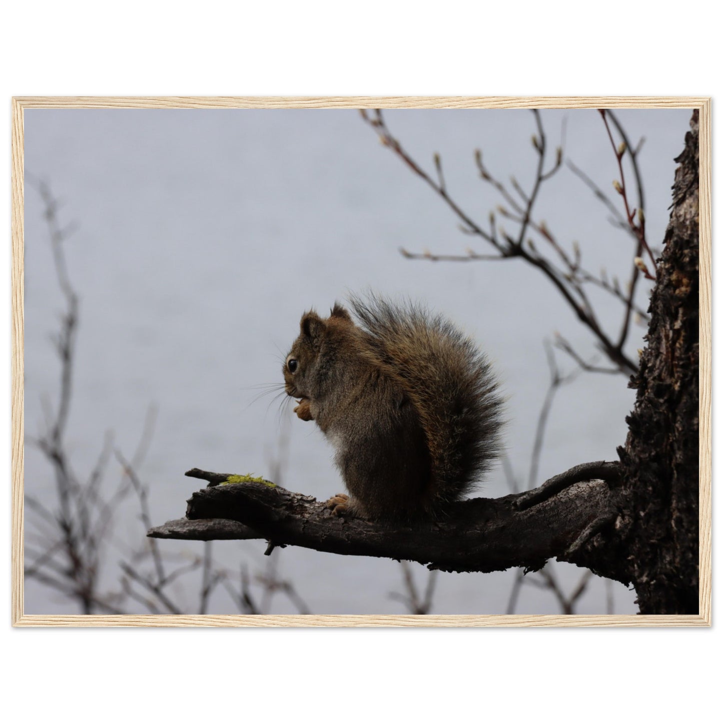 Squirrel on a branch - Premium matte paper poster with wooden frame