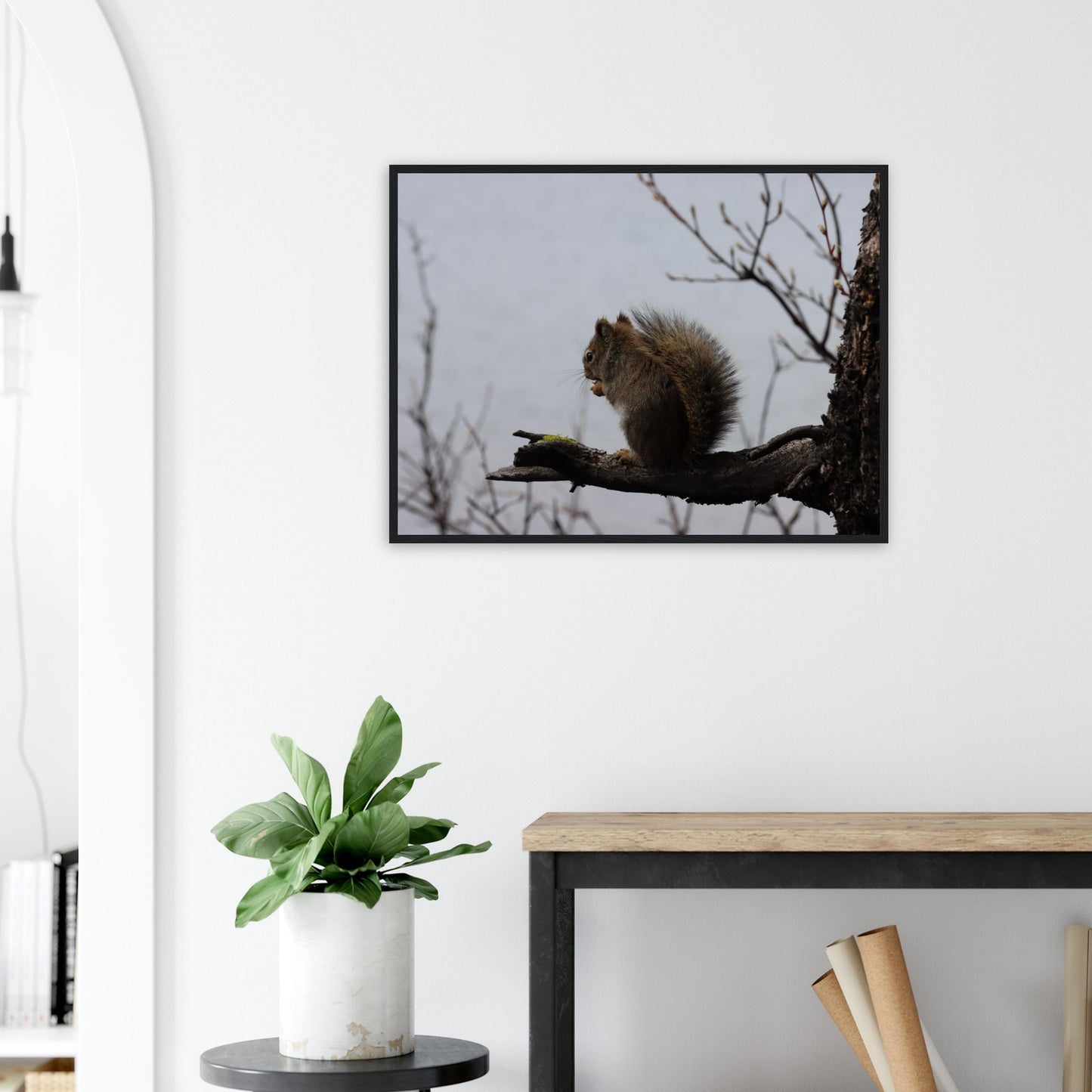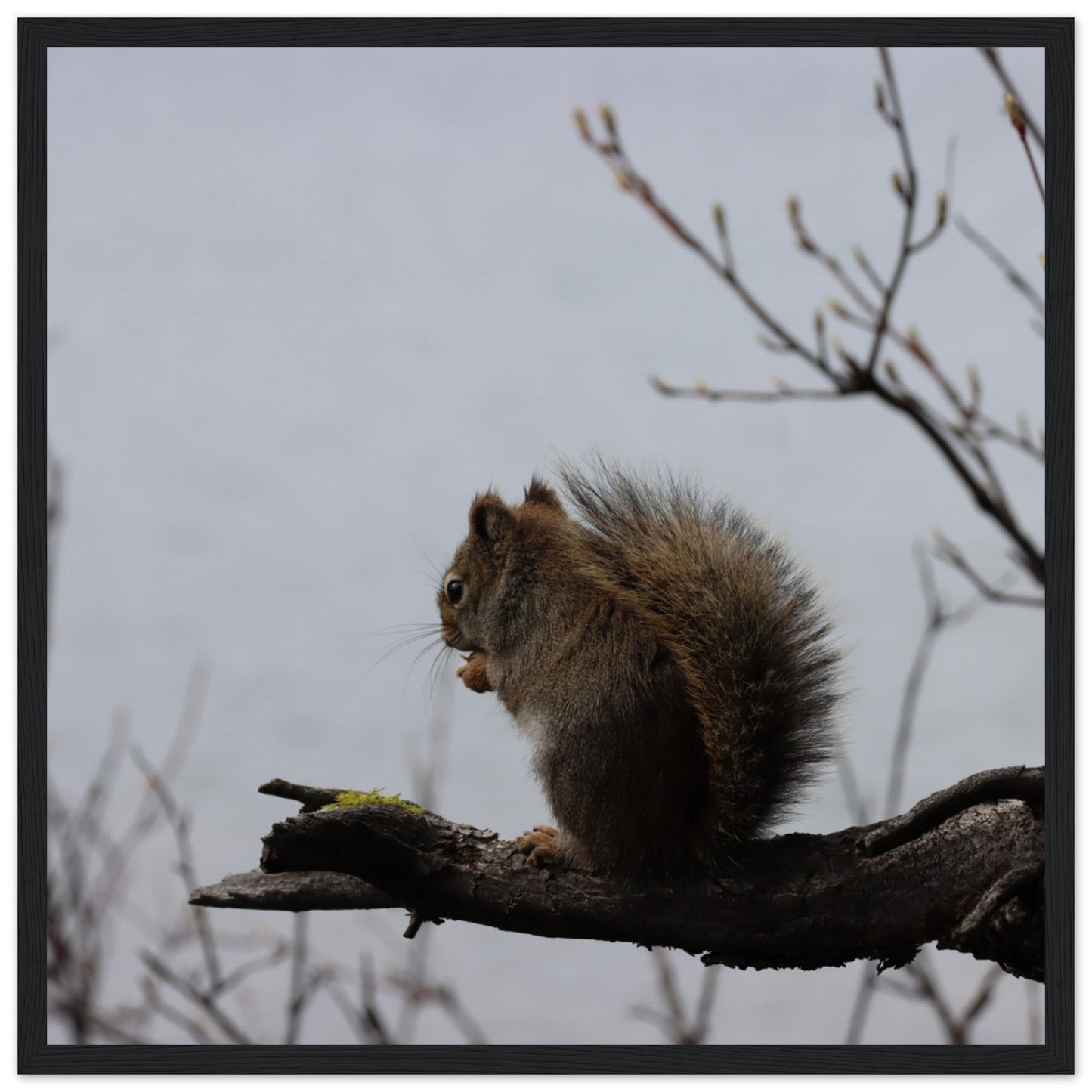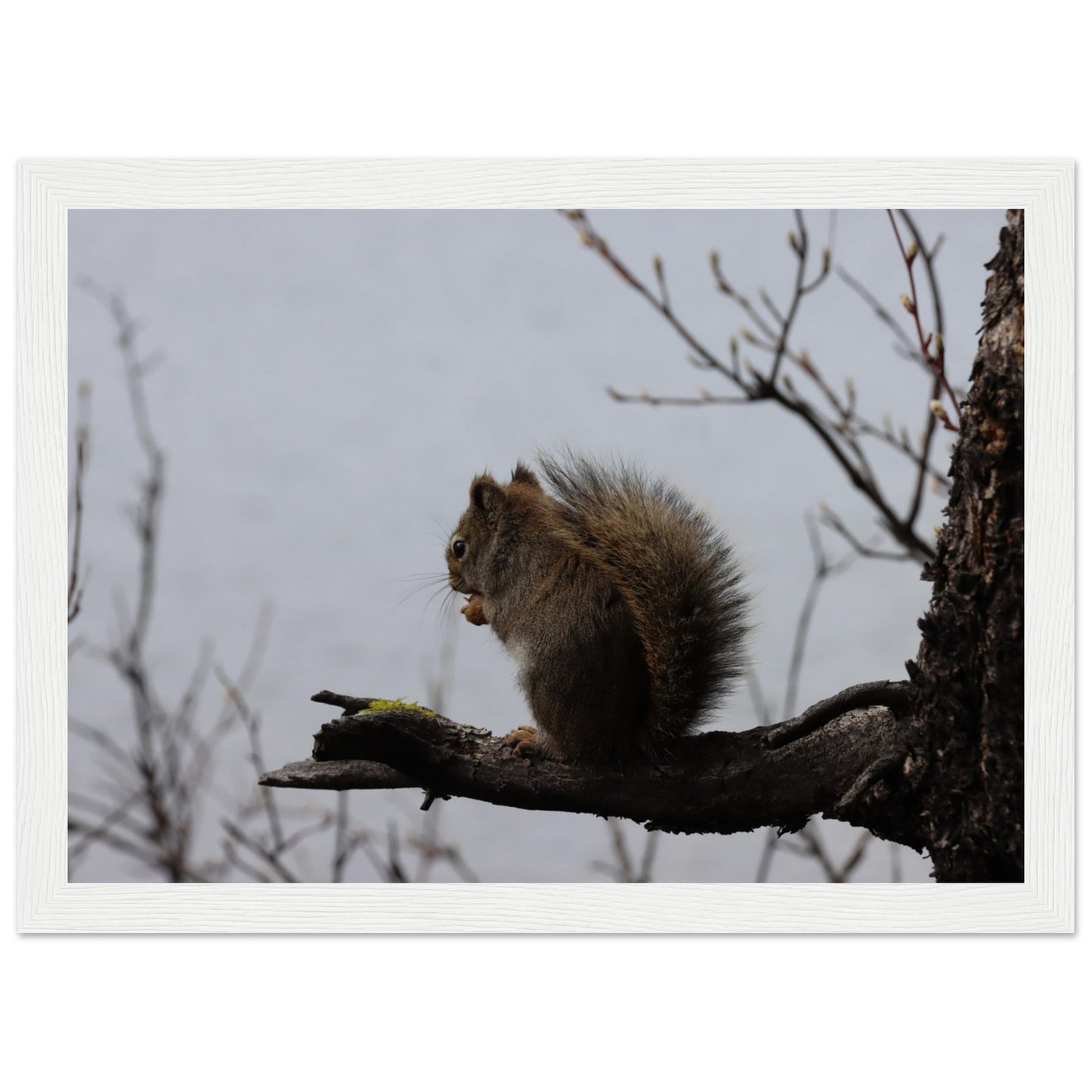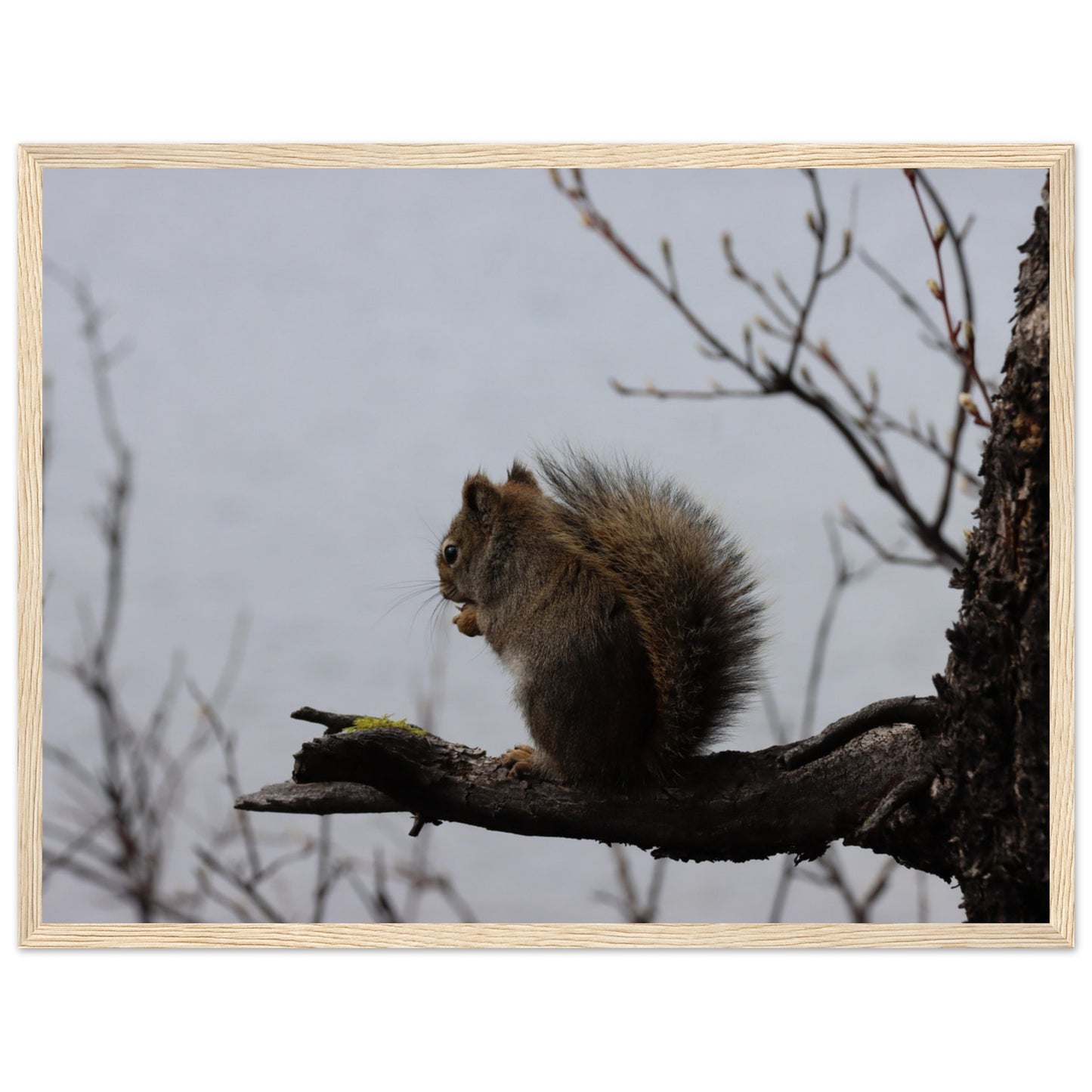 Squirrel on a branch - Premium matte paper poster with wooden frame