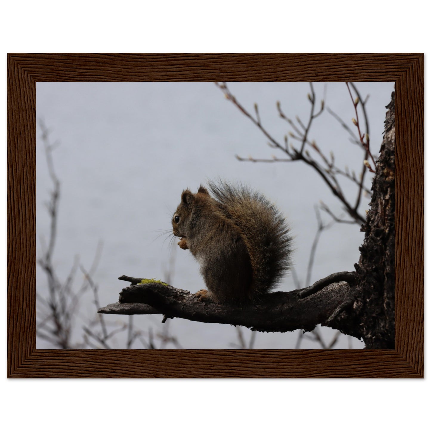 Squirrel on a branch - Premium Matte Paper Wooden Framed Poster