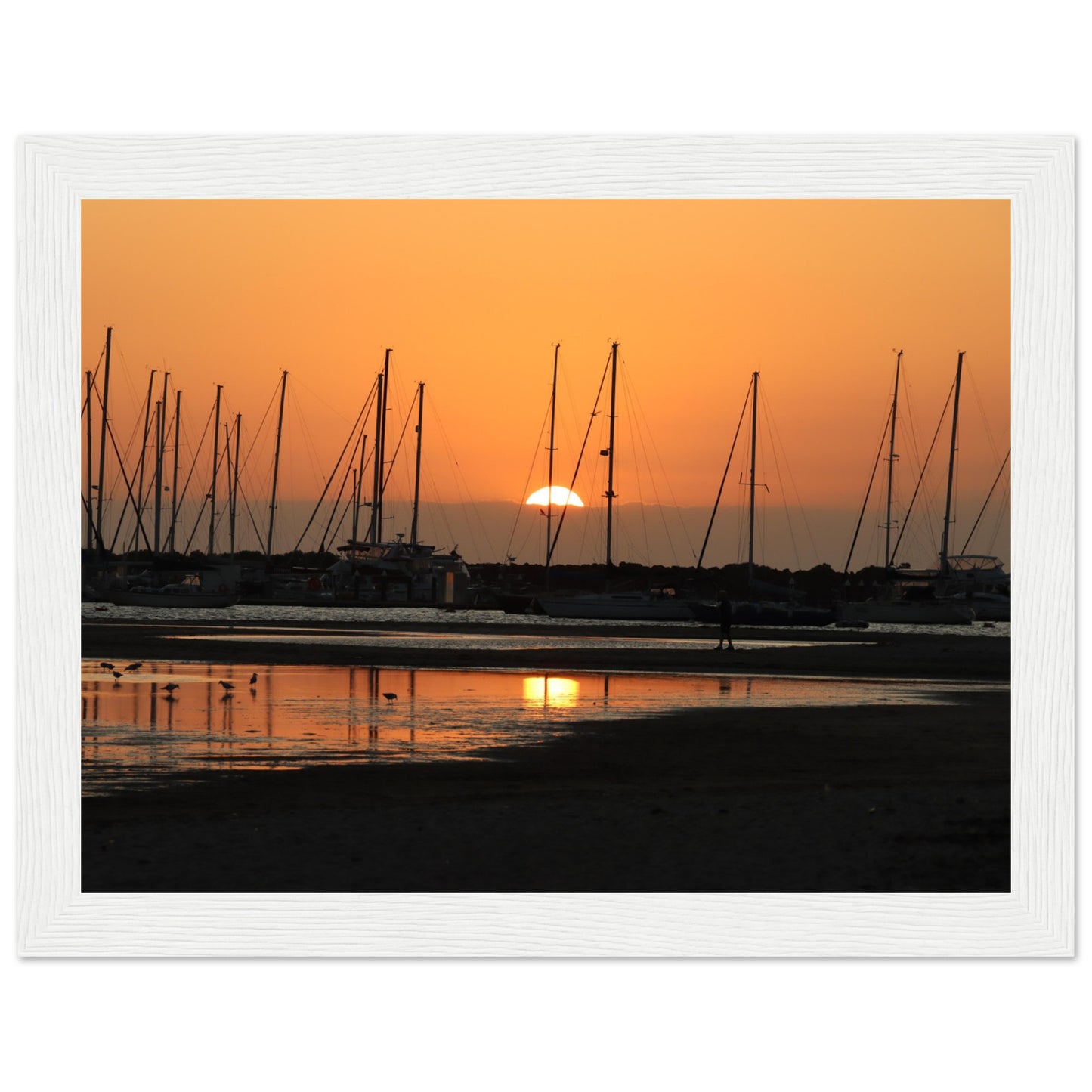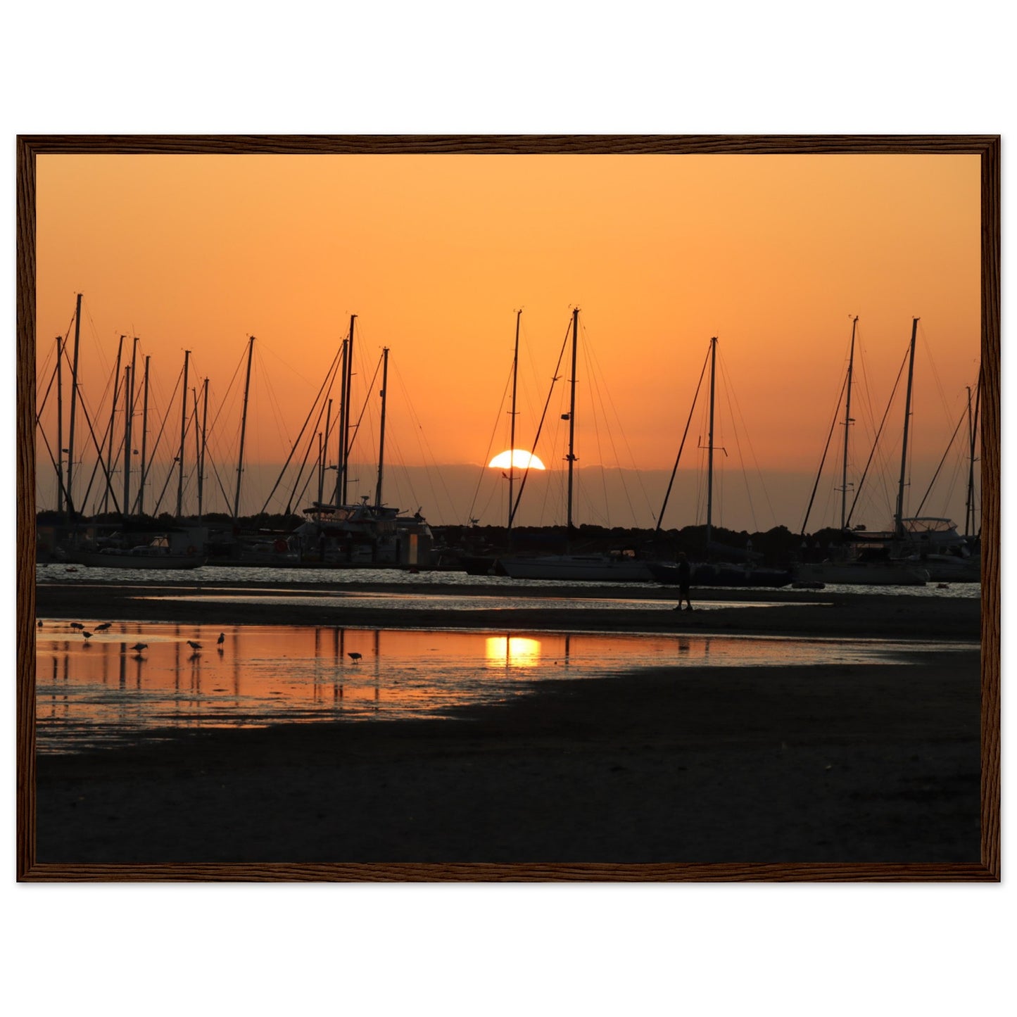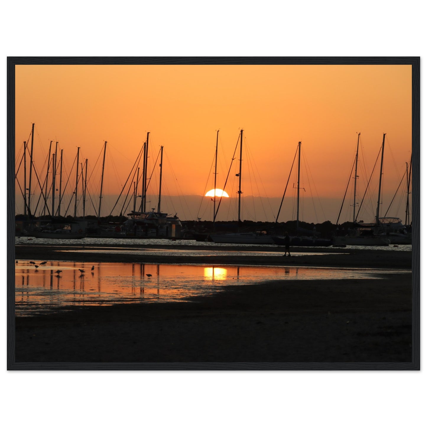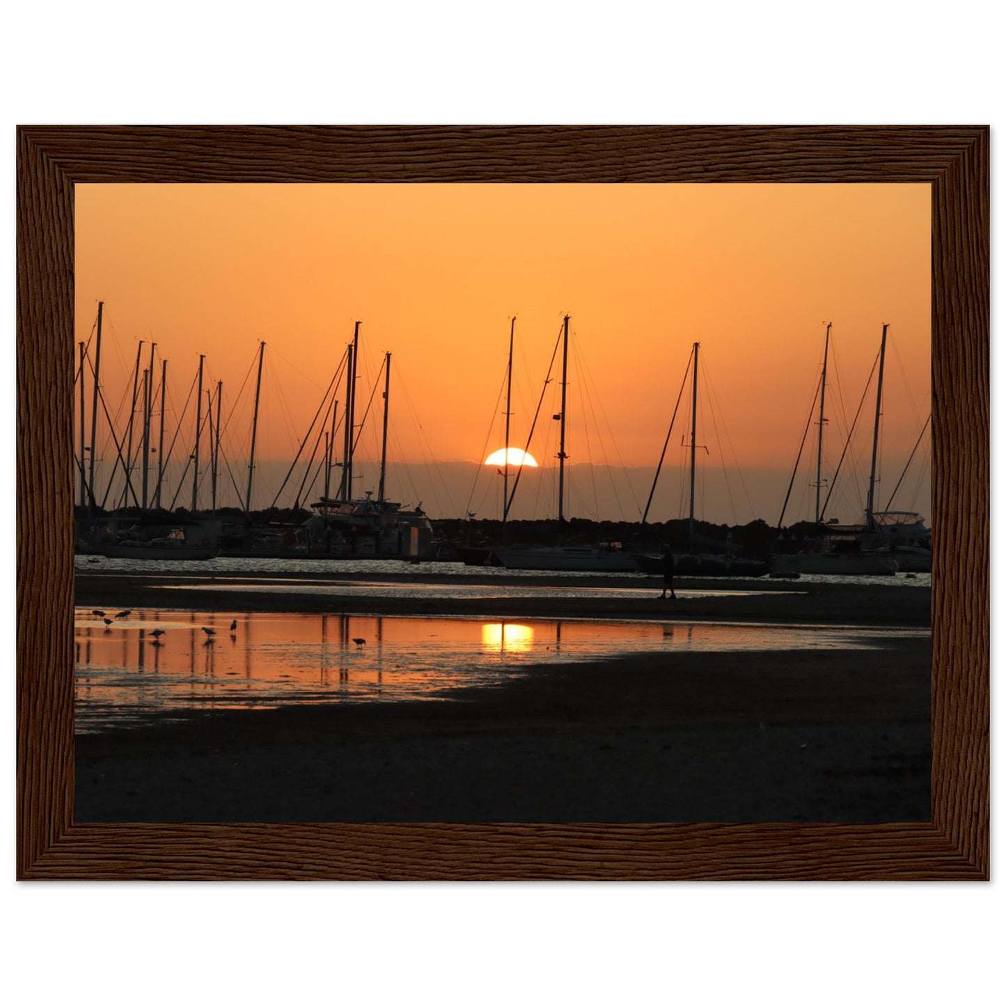 Sun setting over the marina - Premium Matte Paper Wooden Framed Poster