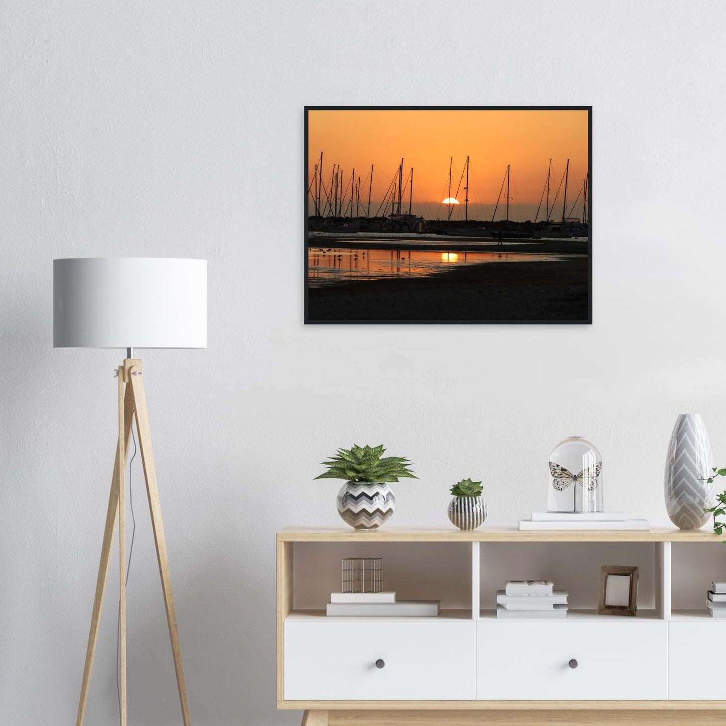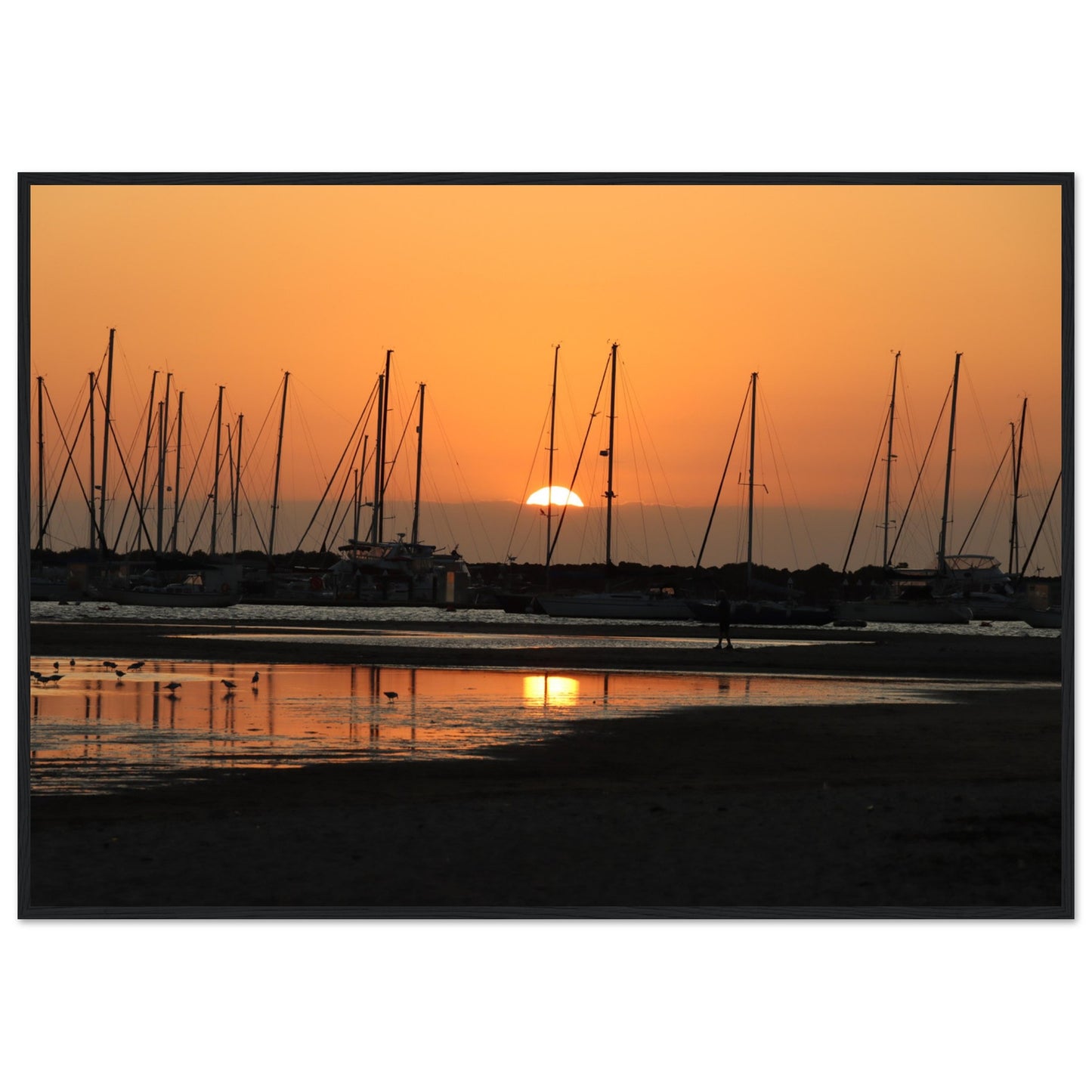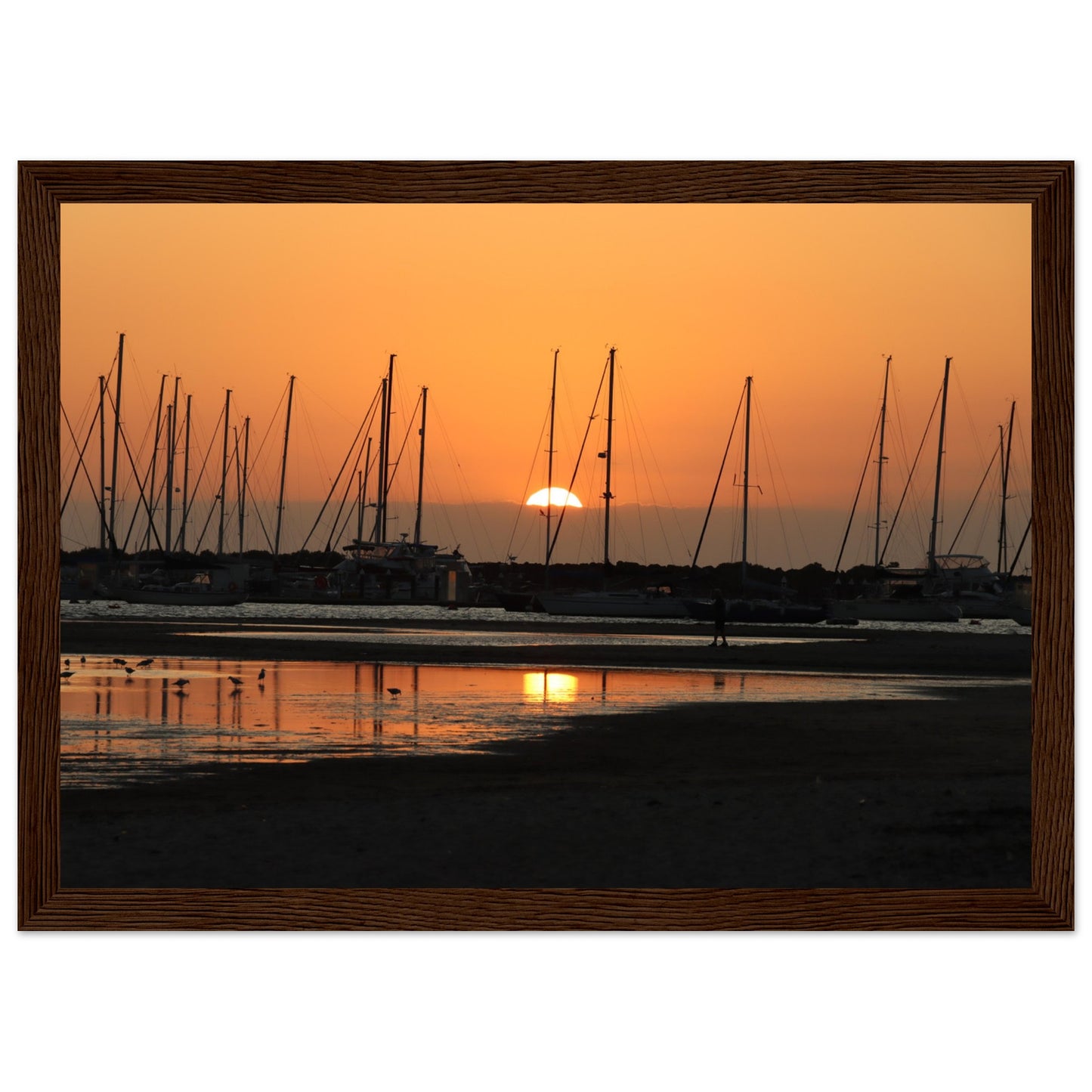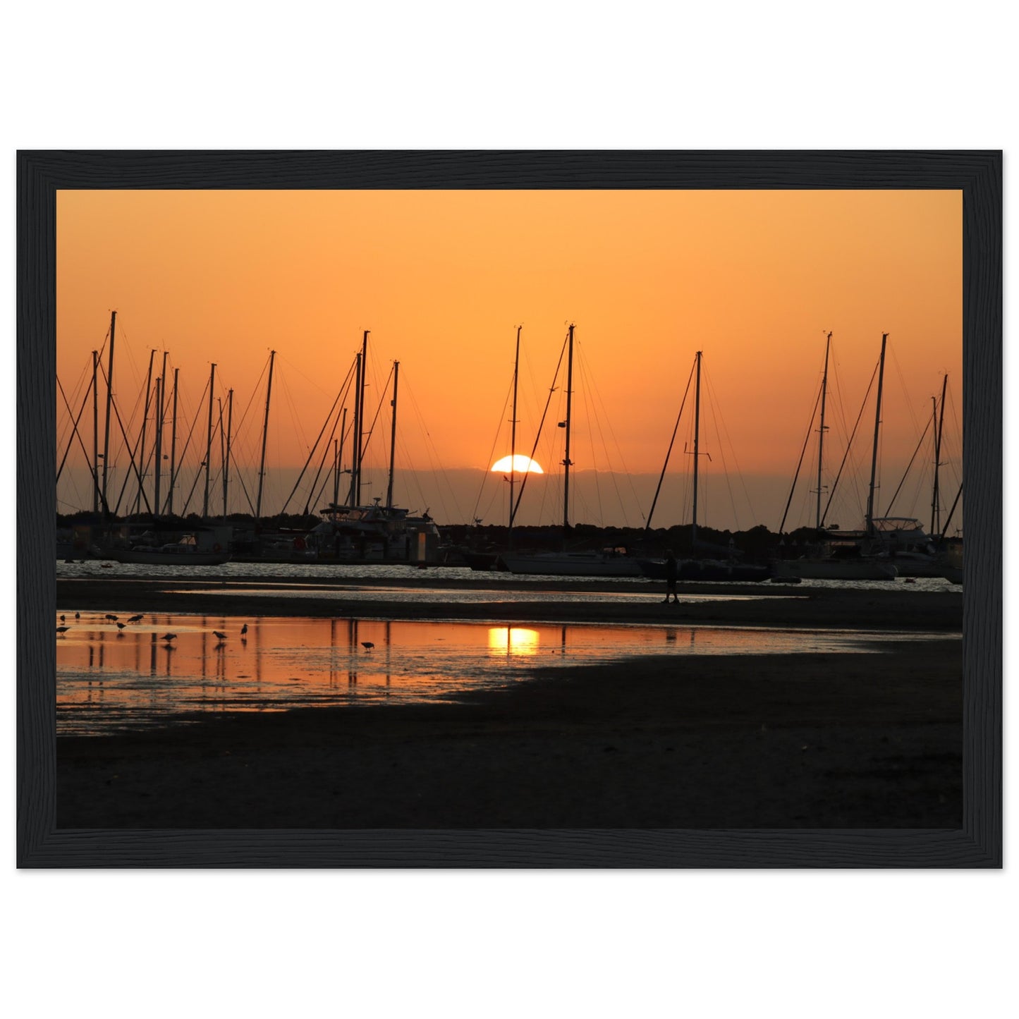 Sun setting over the marina - Premium matte paper poster with wooden frame