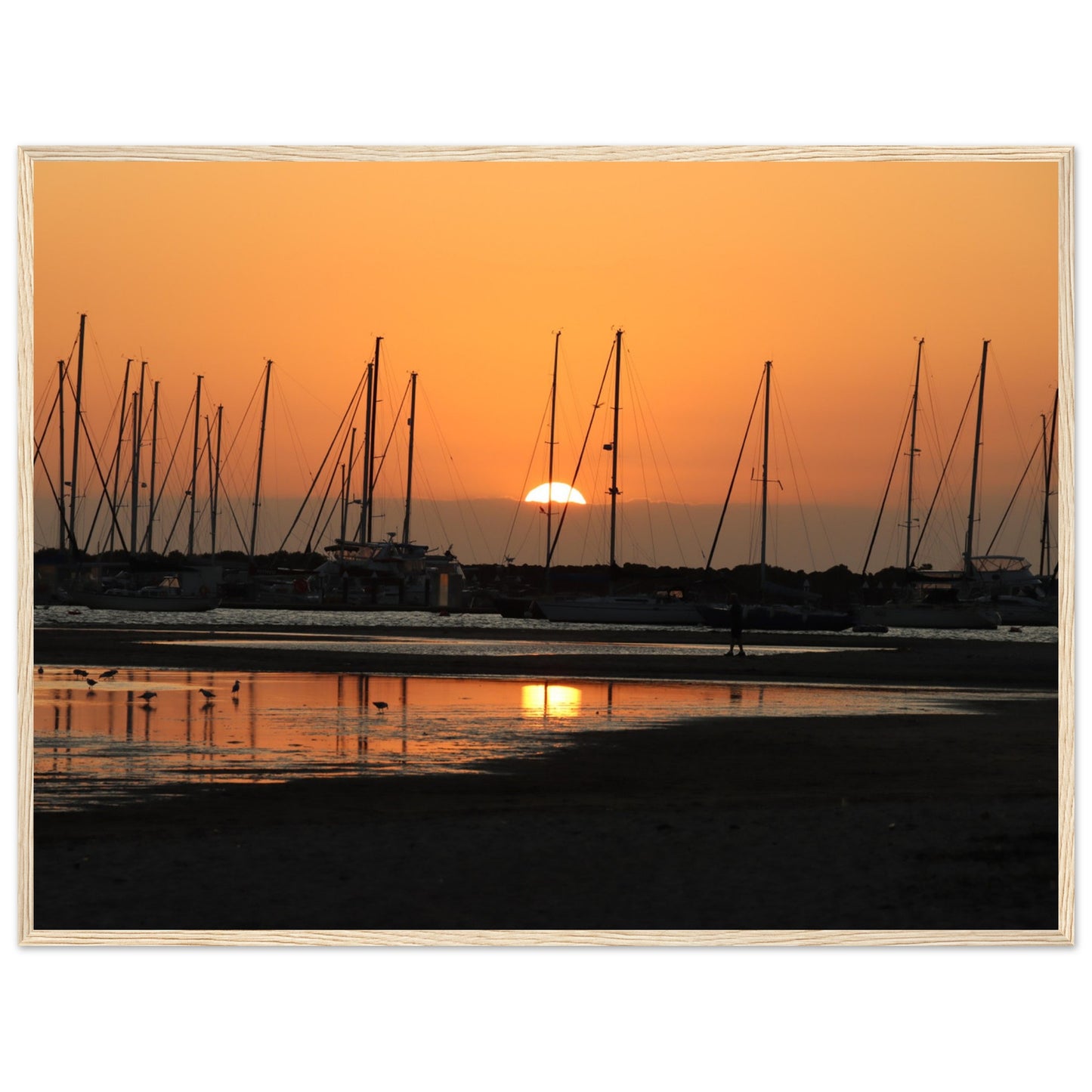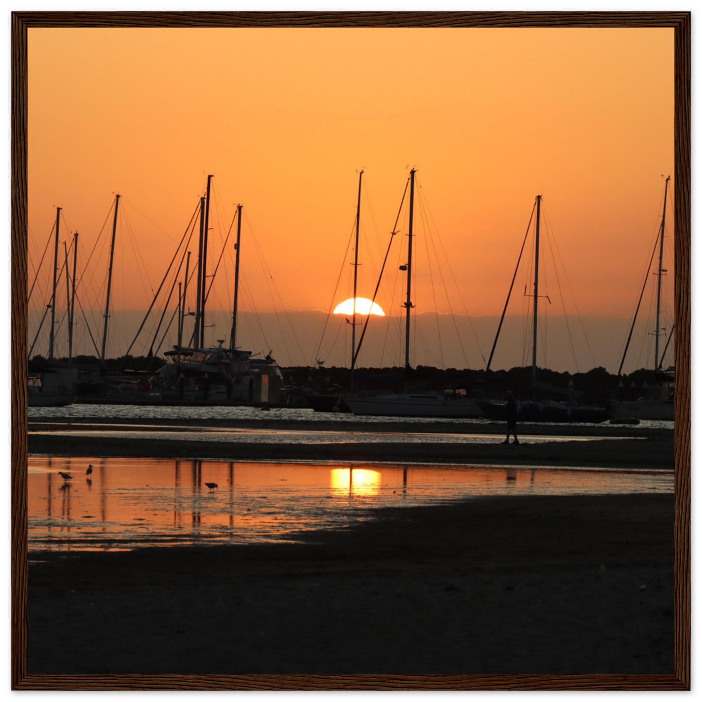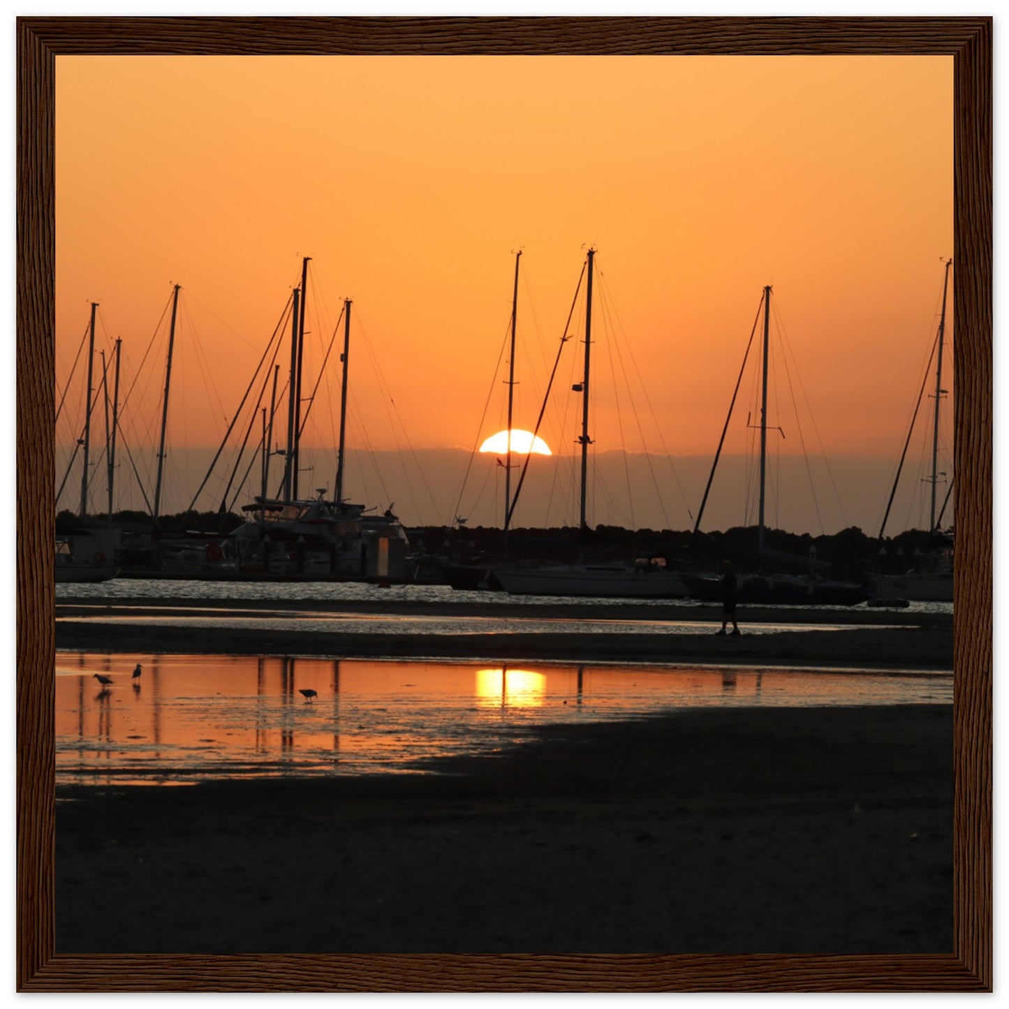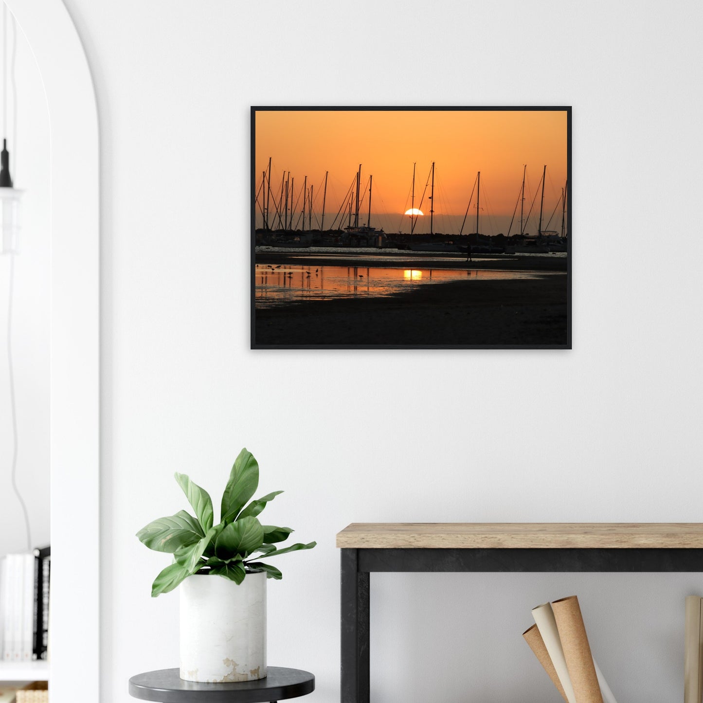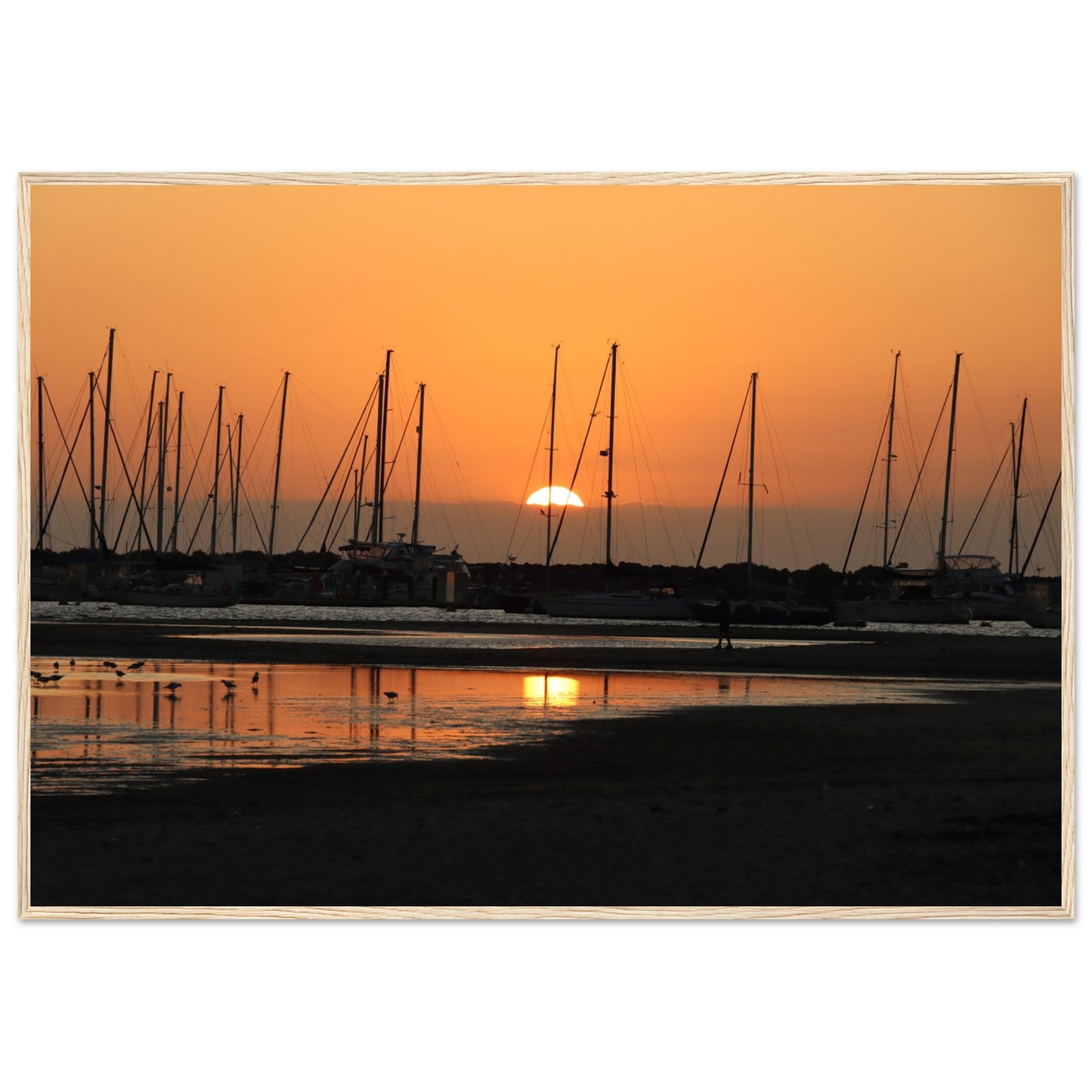 Sun setting over the marina - Premium matte paper poster with wooden frame