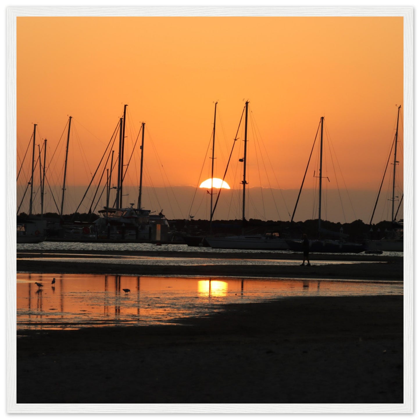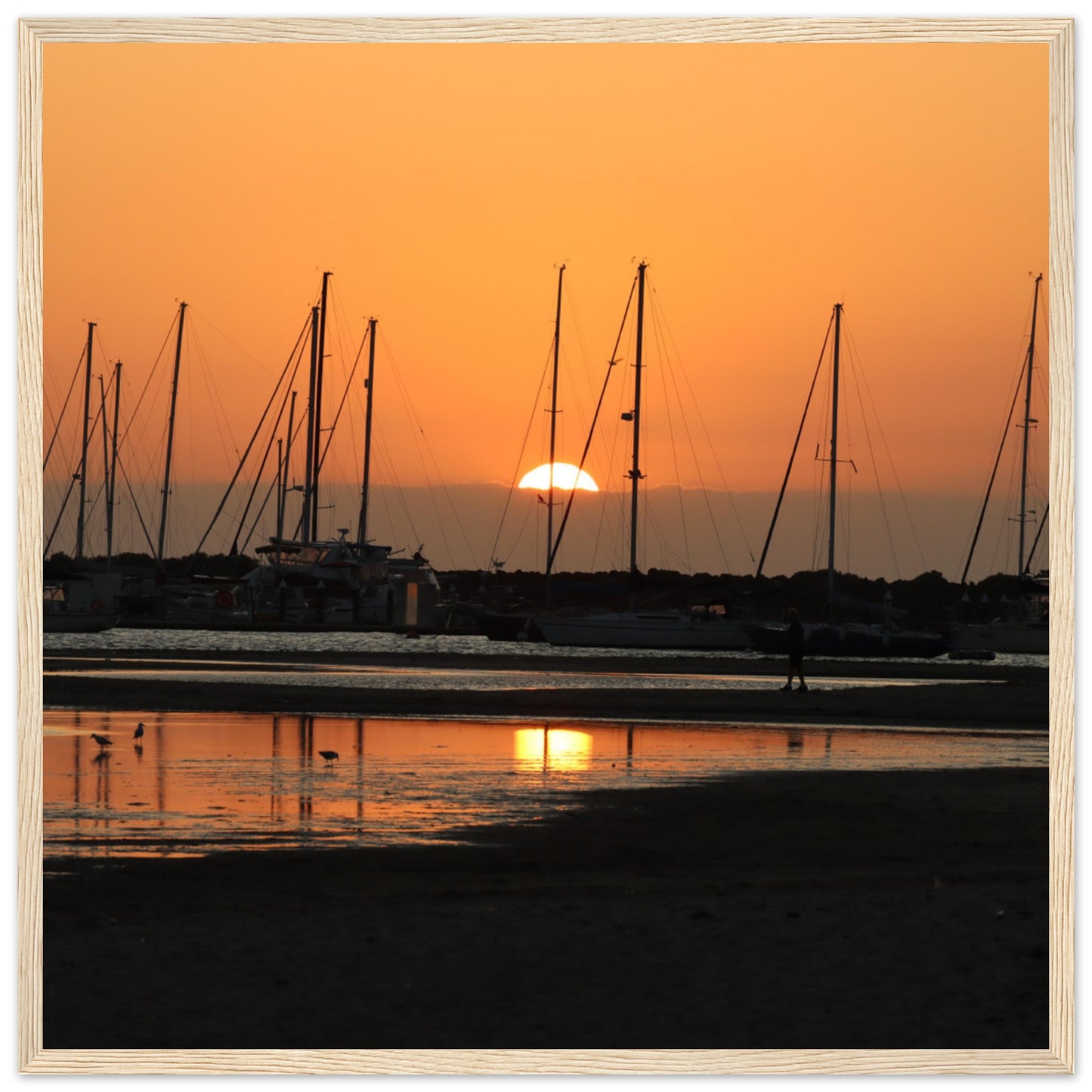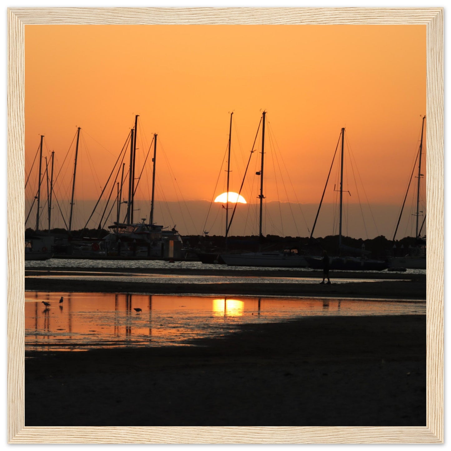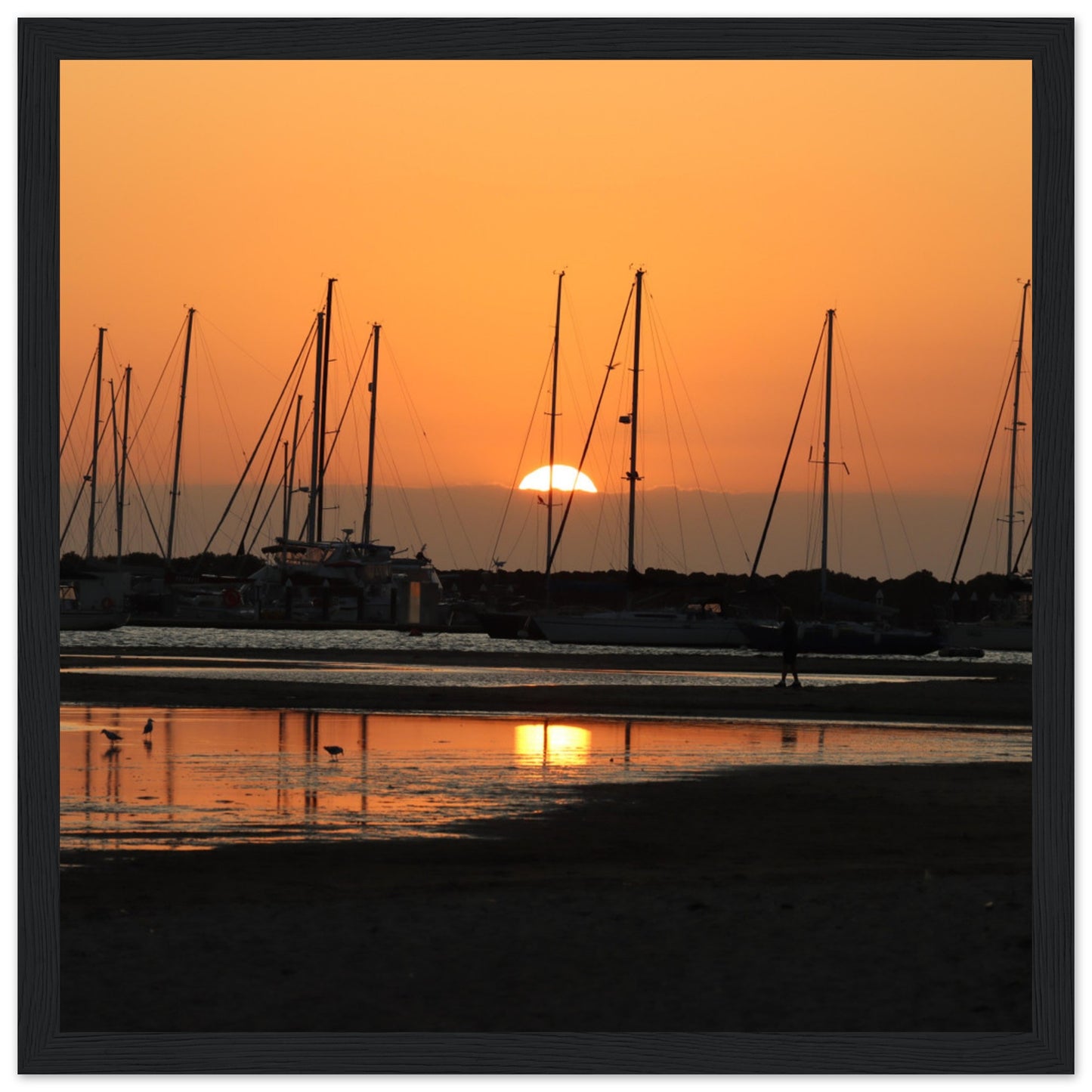 Sun setting over the marina - Premium matte paper poster with wooden frame