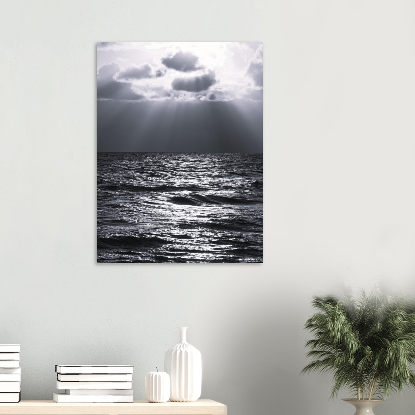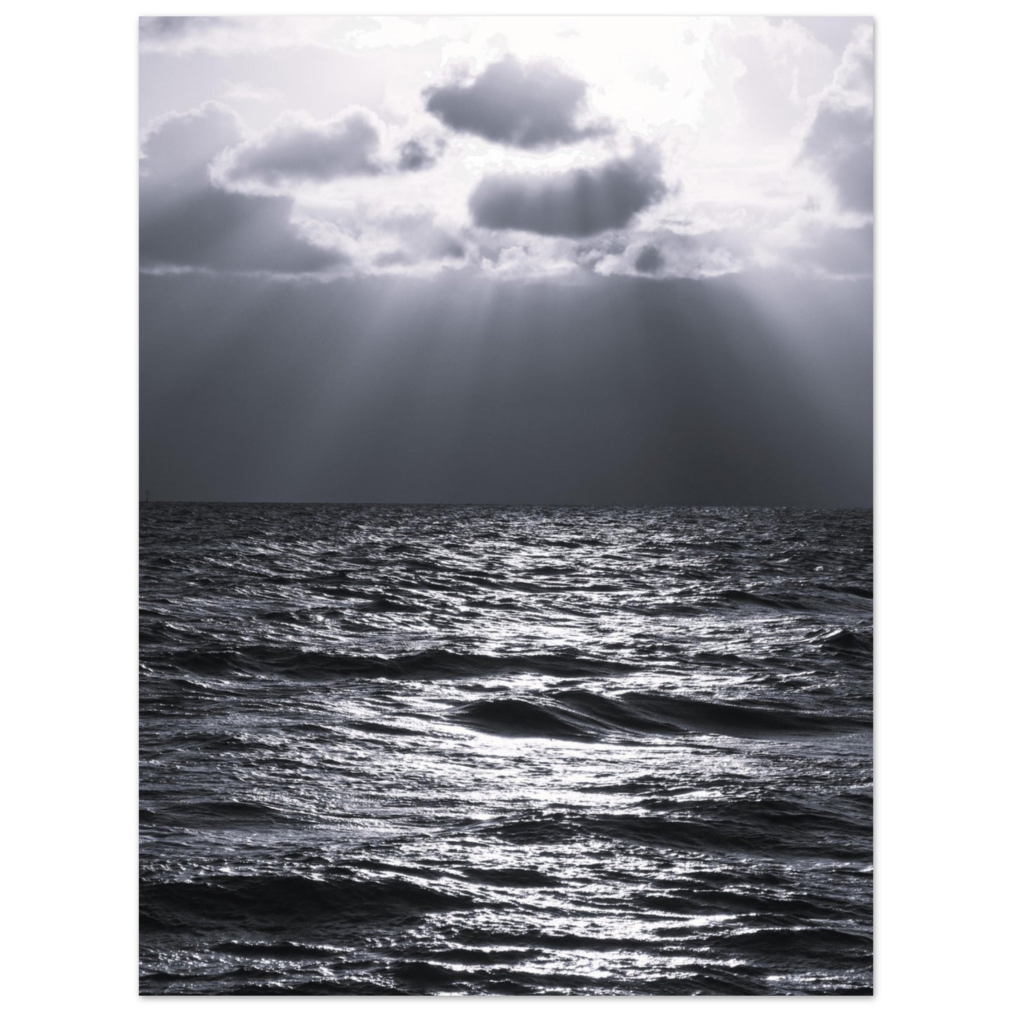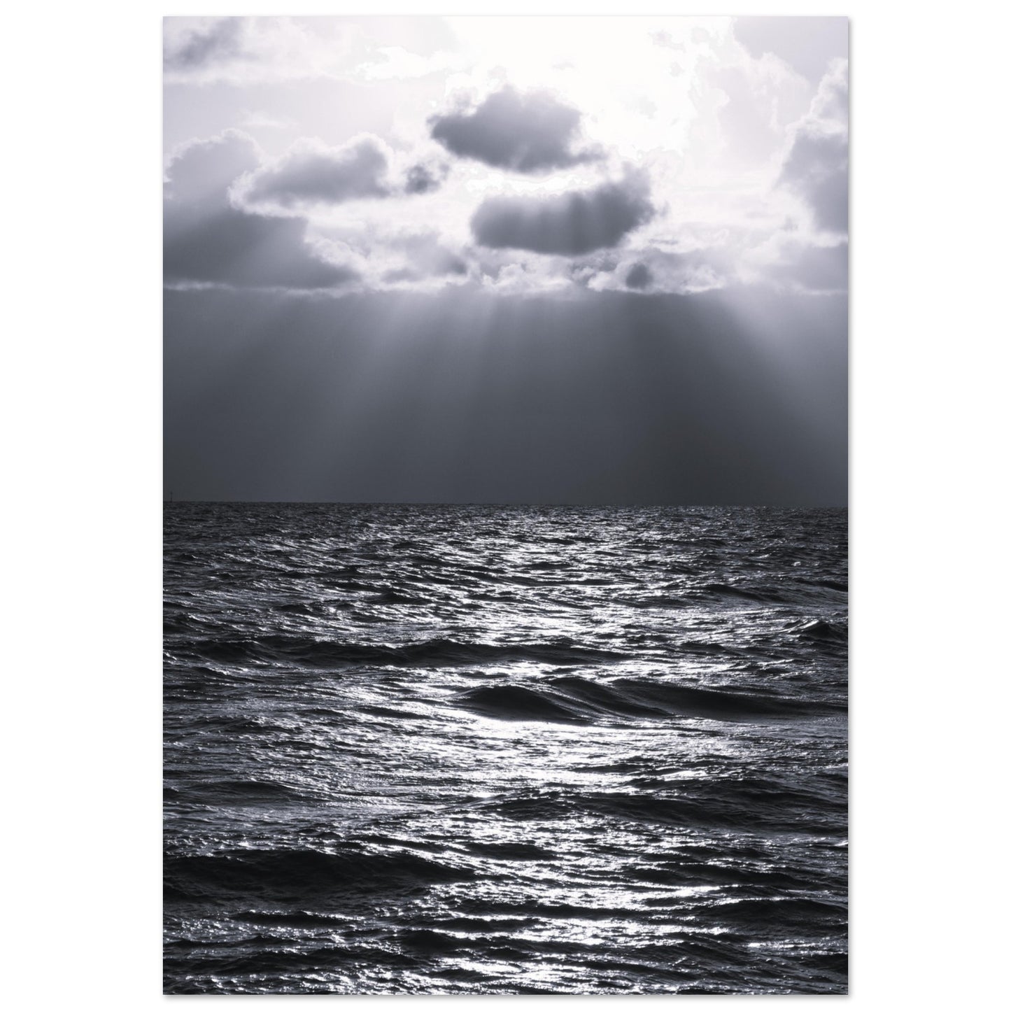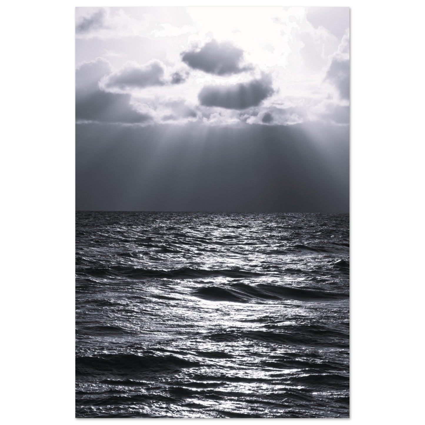 Sun setting over the ocean, Melbourne - Black & White - Lightweight foam board
