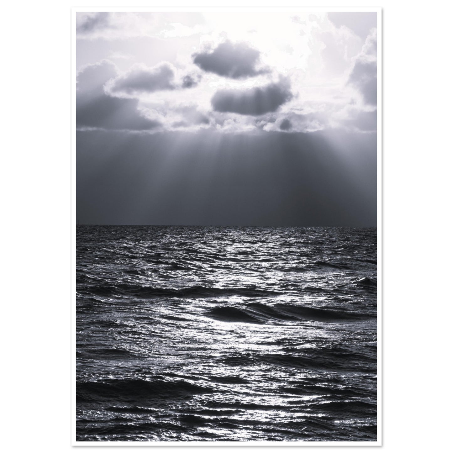 Sun setting over the ocean, Melbourne (B&W) - Premium Matte Paper Poster