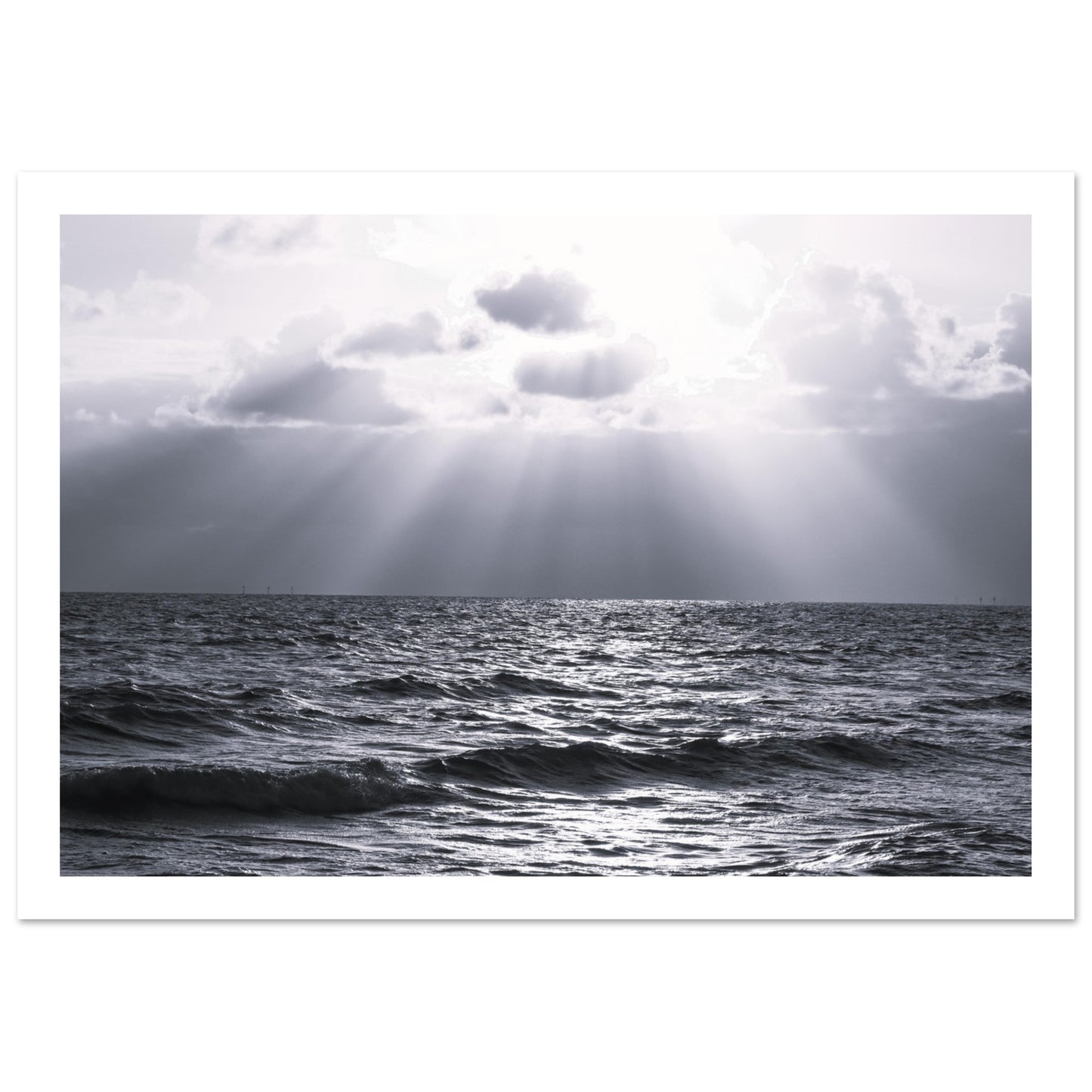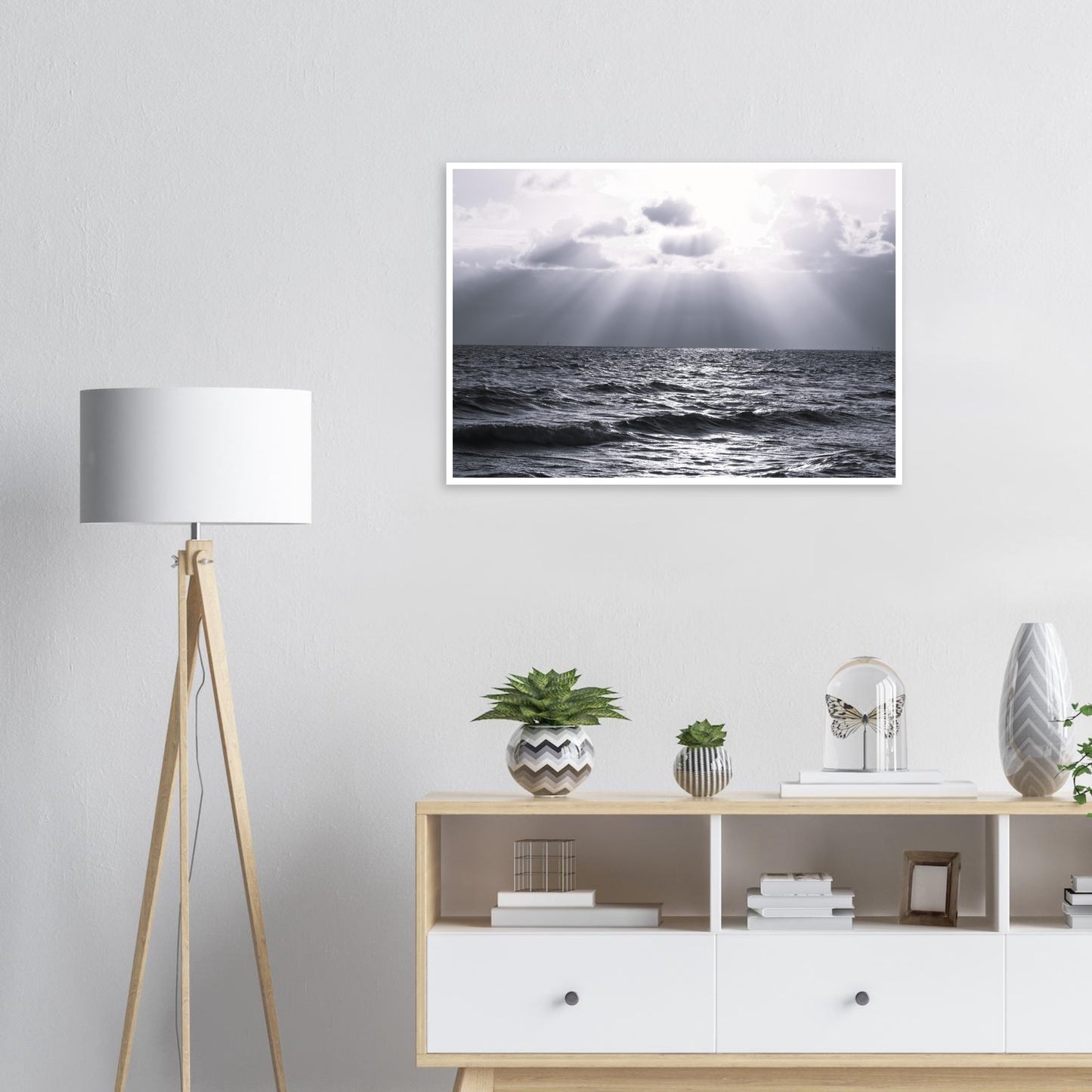 Sun setting over the ocean - Black & White - Premium Matte Paper Poster