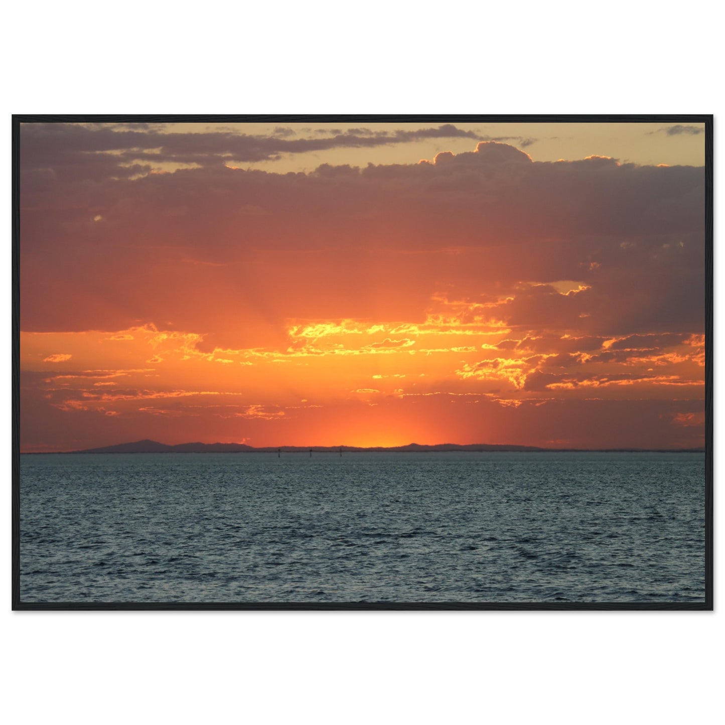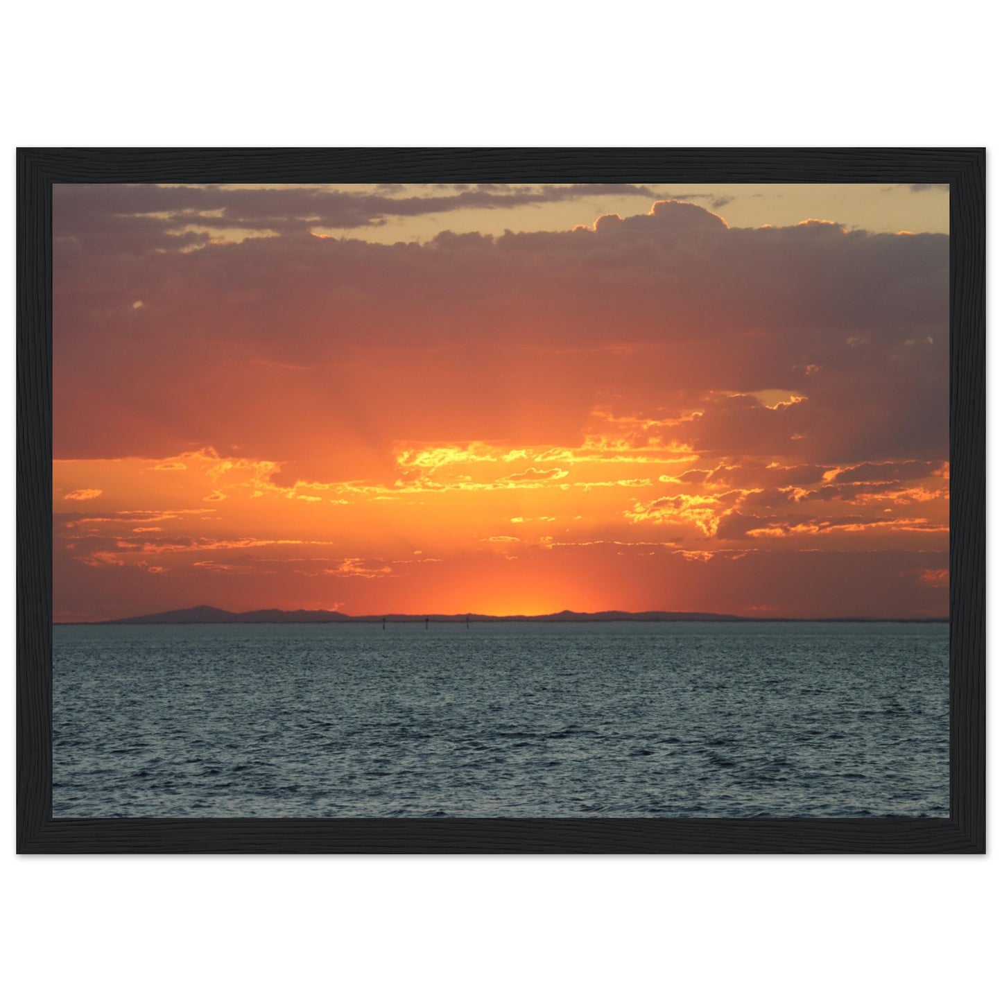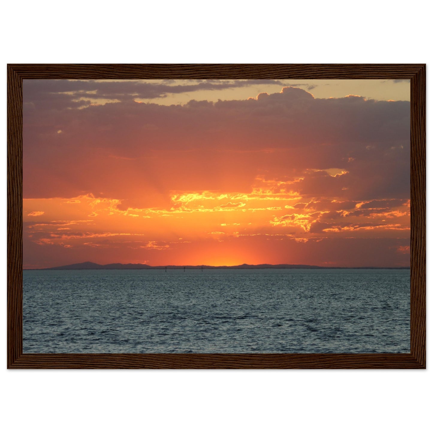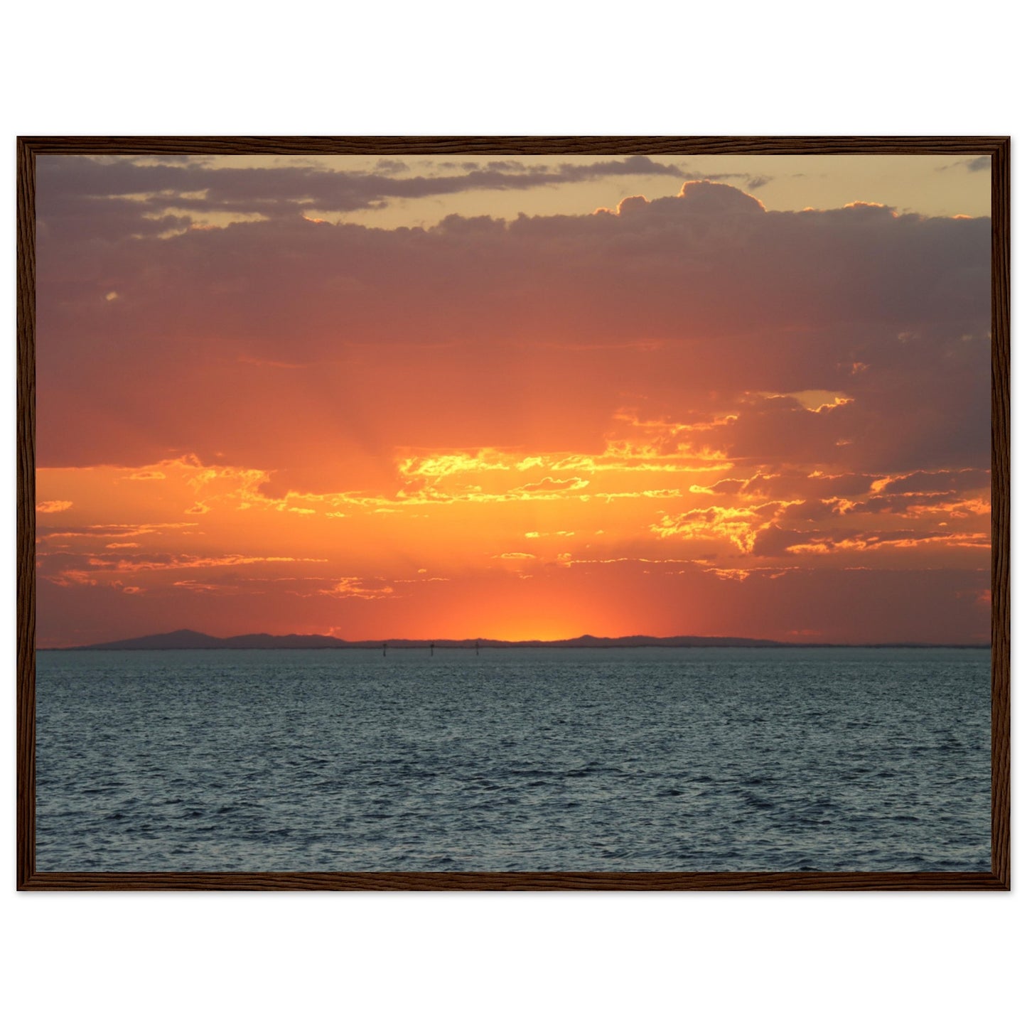 Sun setting through the clouds - Premium Matte Paper Wooden Framed Poster
