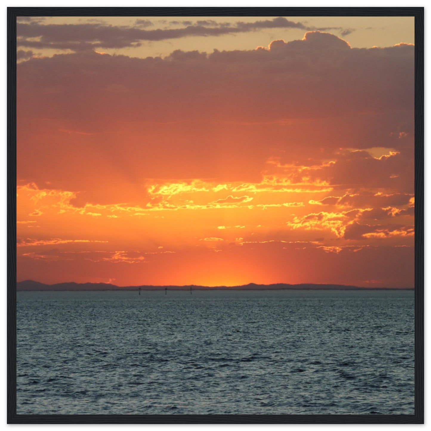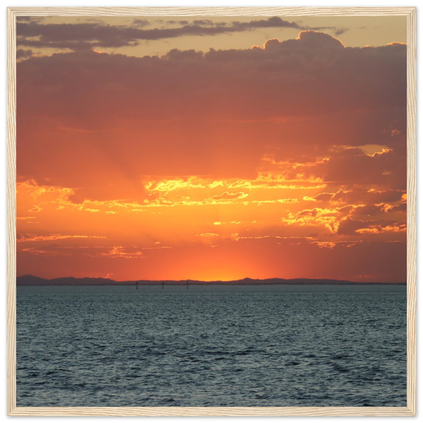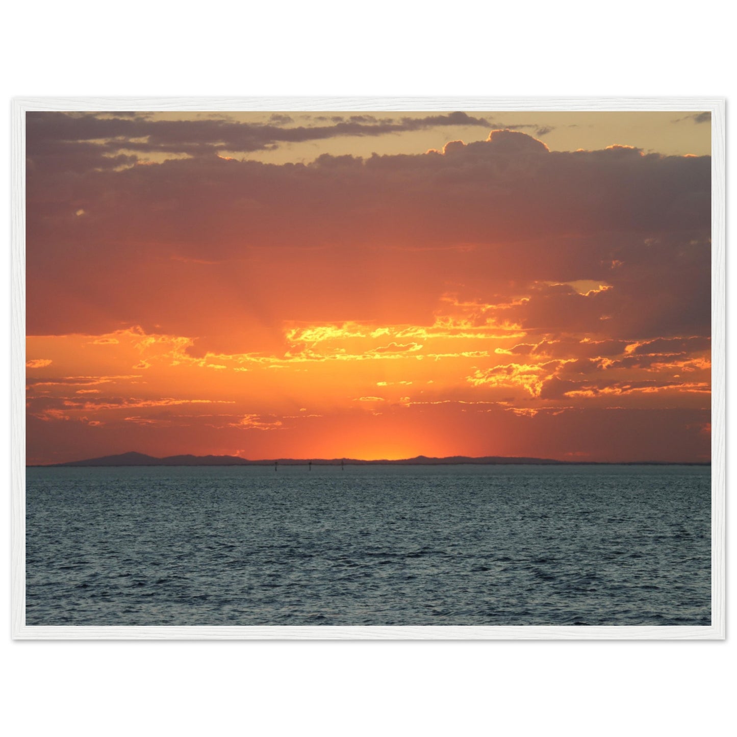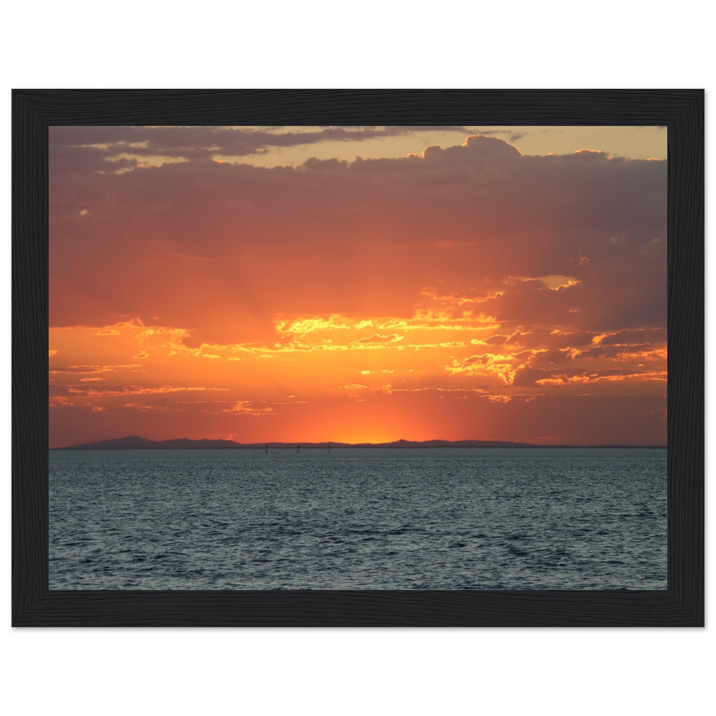 Sun setting through the clouds - Premium Matte Paper Wooden Framed Poster