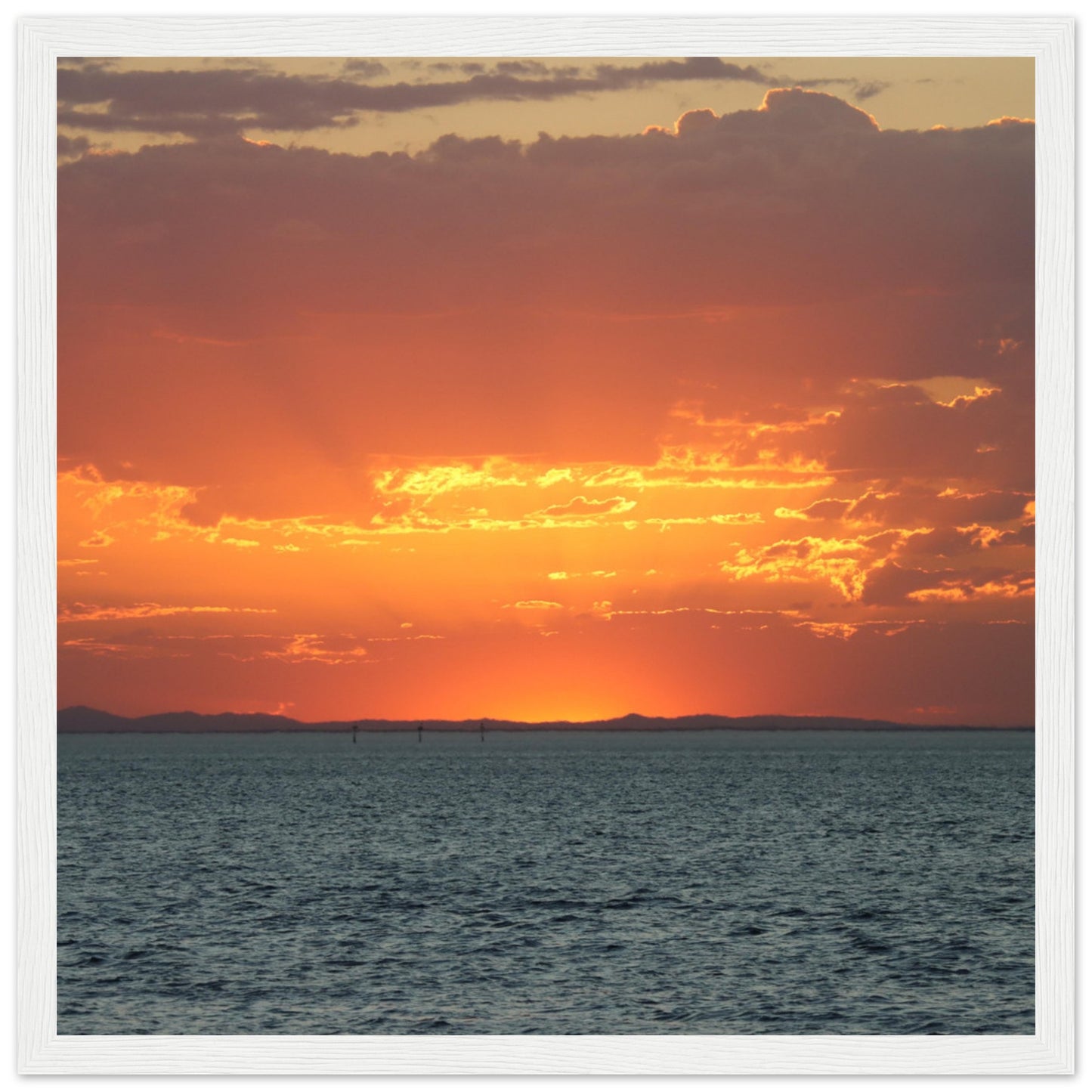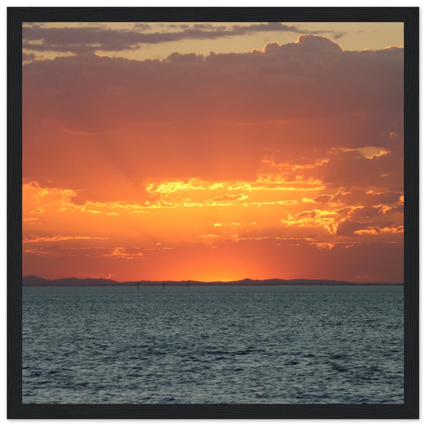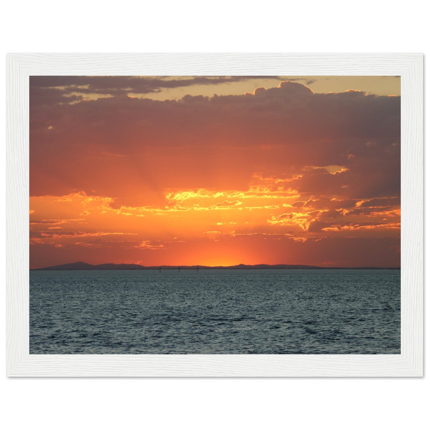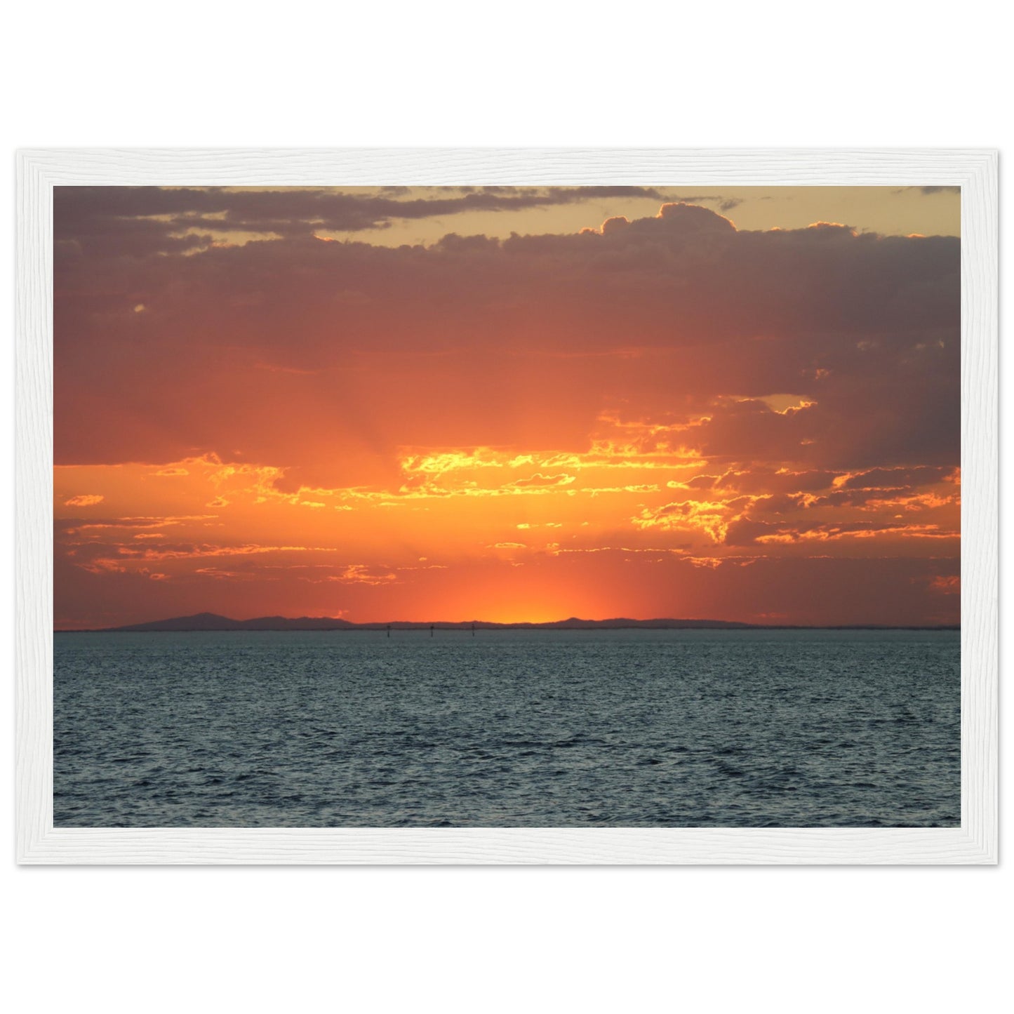 Sun setting through the clouds - Premium Matte Paper Wooden Framed Poster