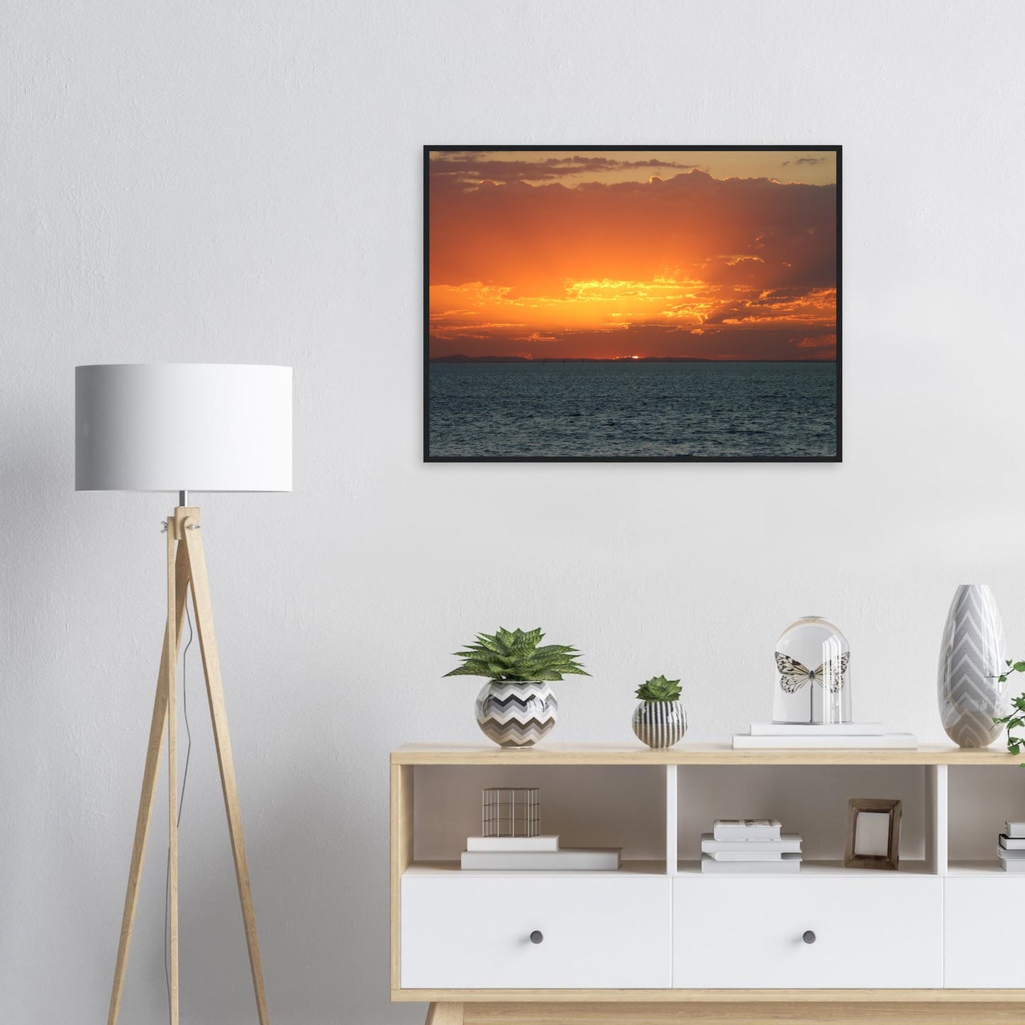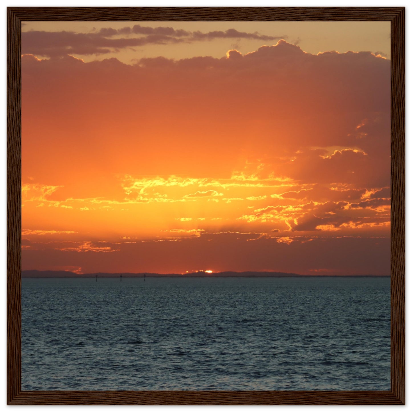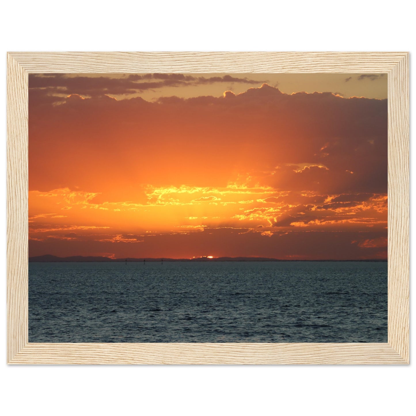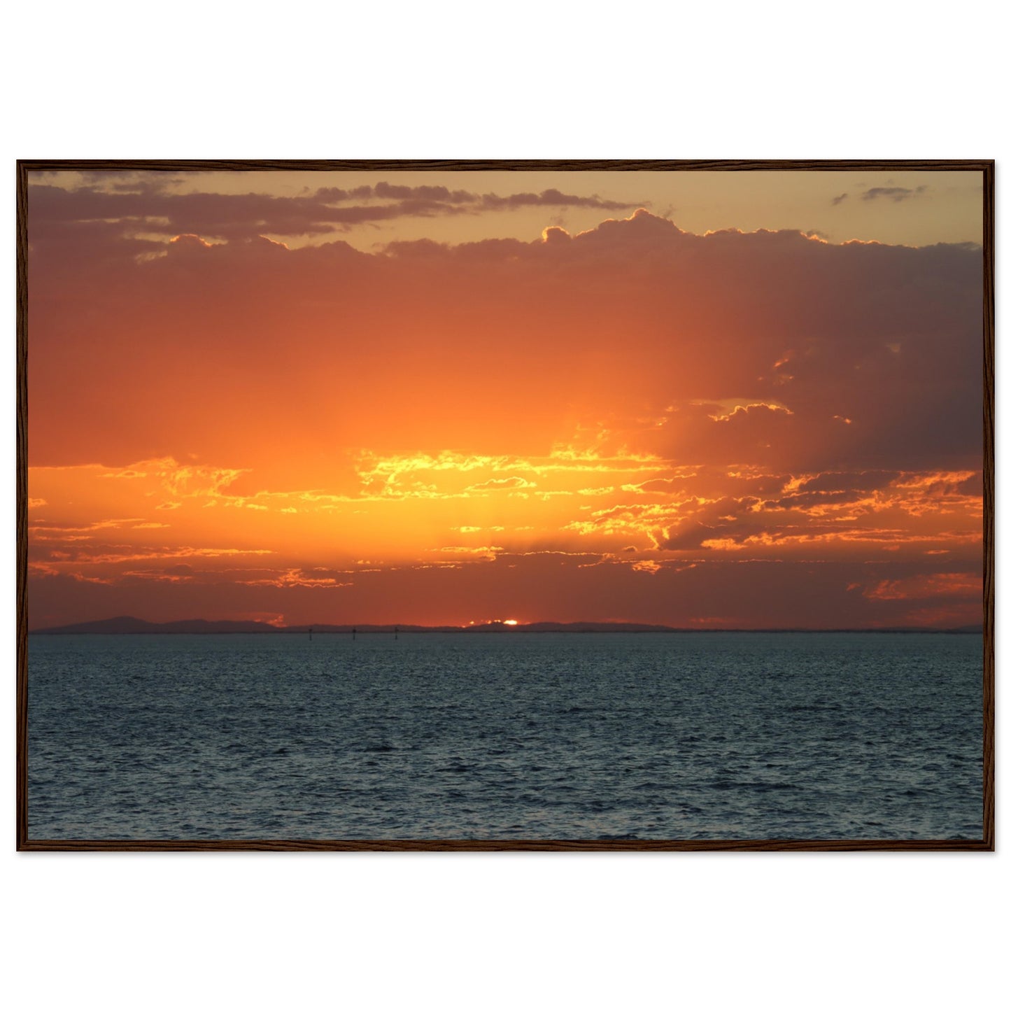 Sun setting through the clouds, Victoria - Premium matte paper poster with wooden frame