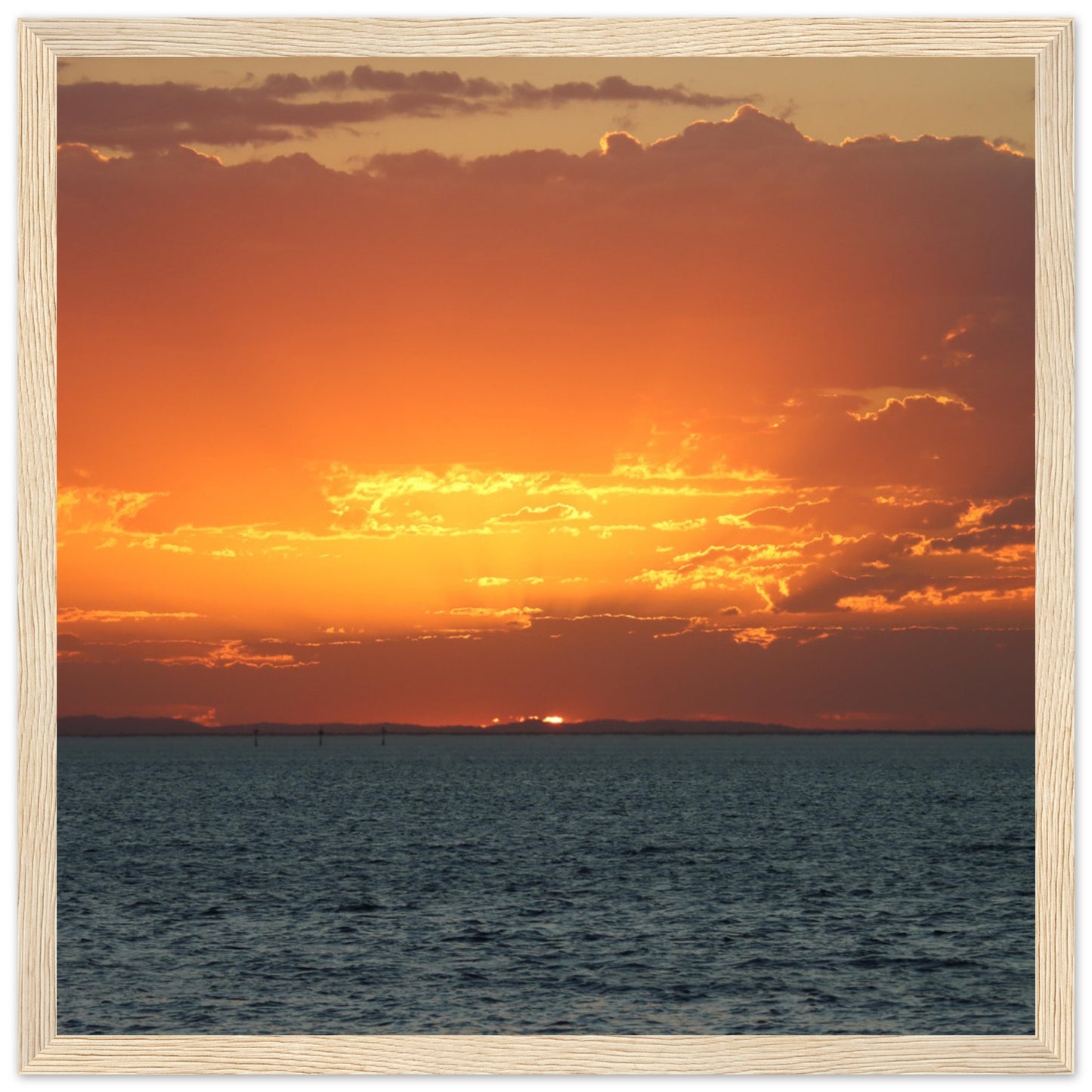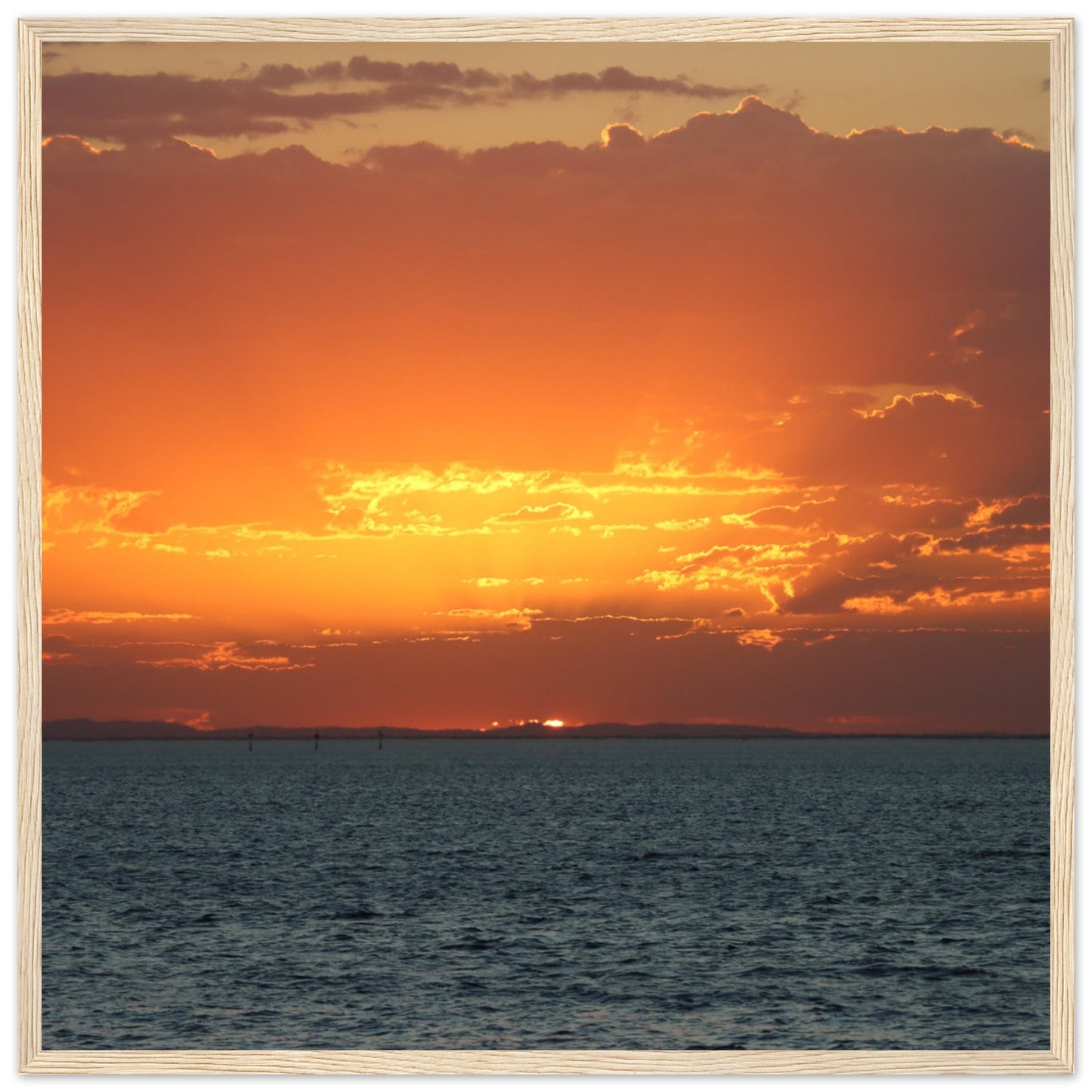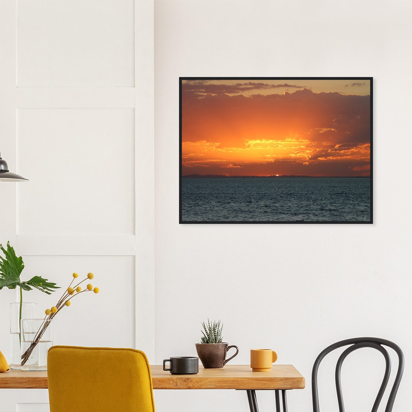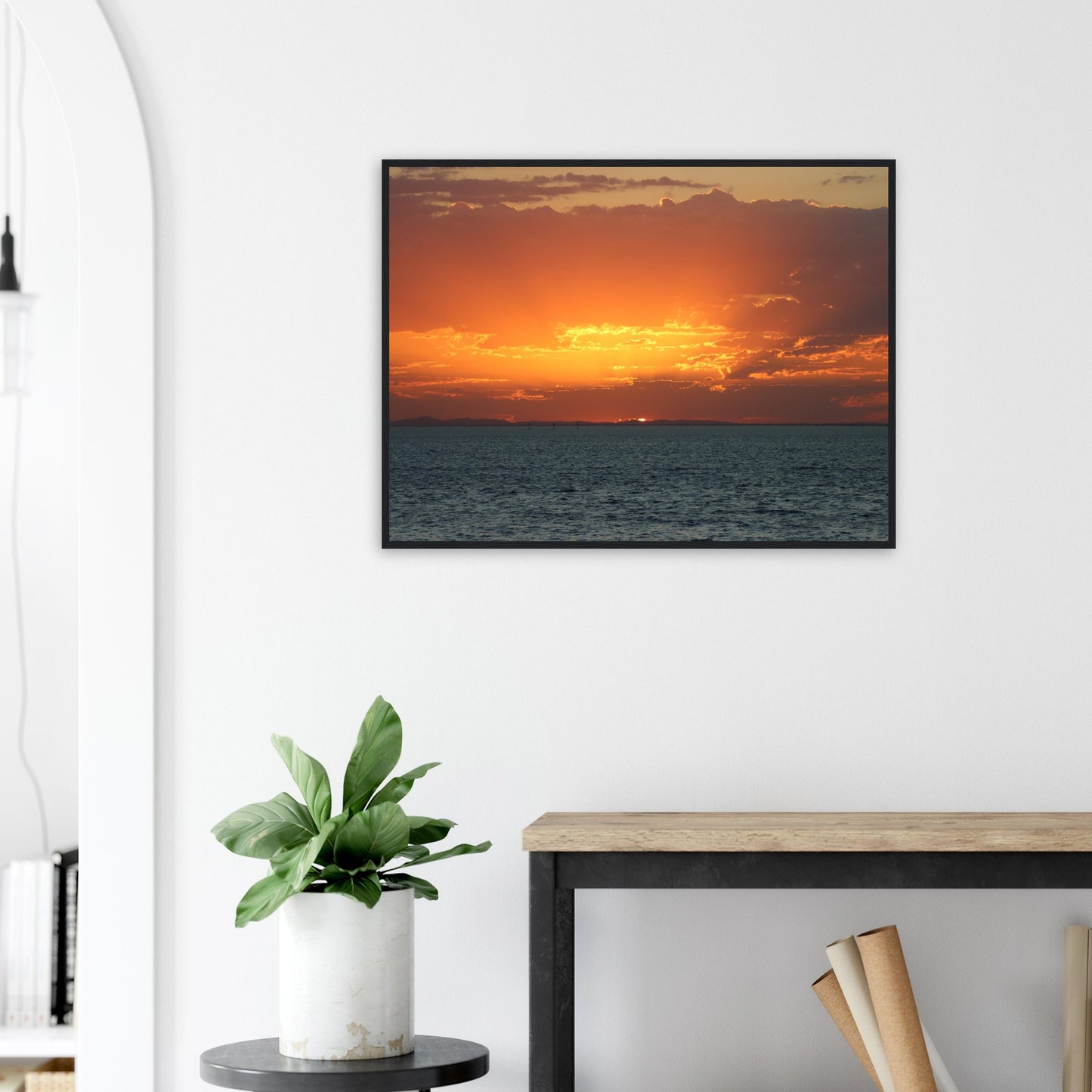Sun setting through the clouds, Victoria - Premium matte paper poster with wooden frame