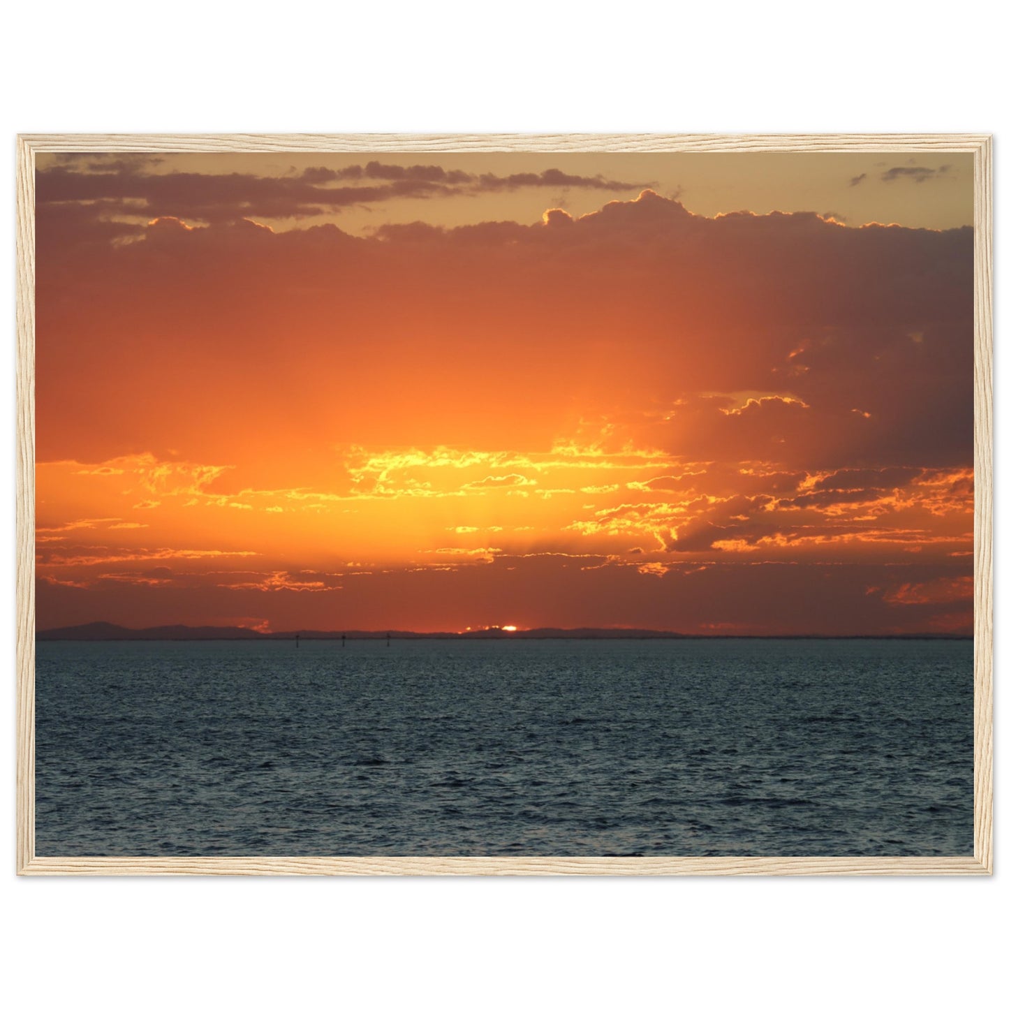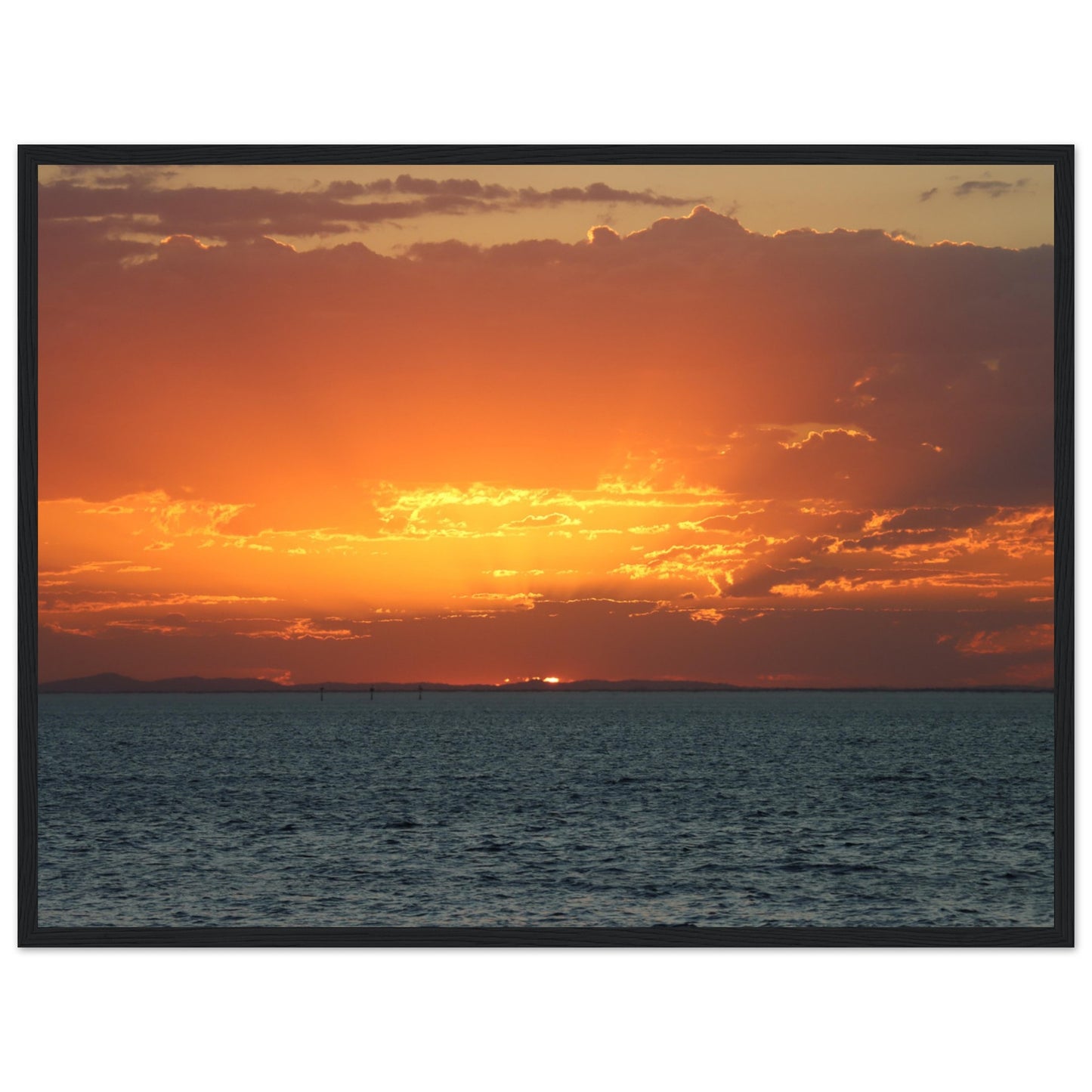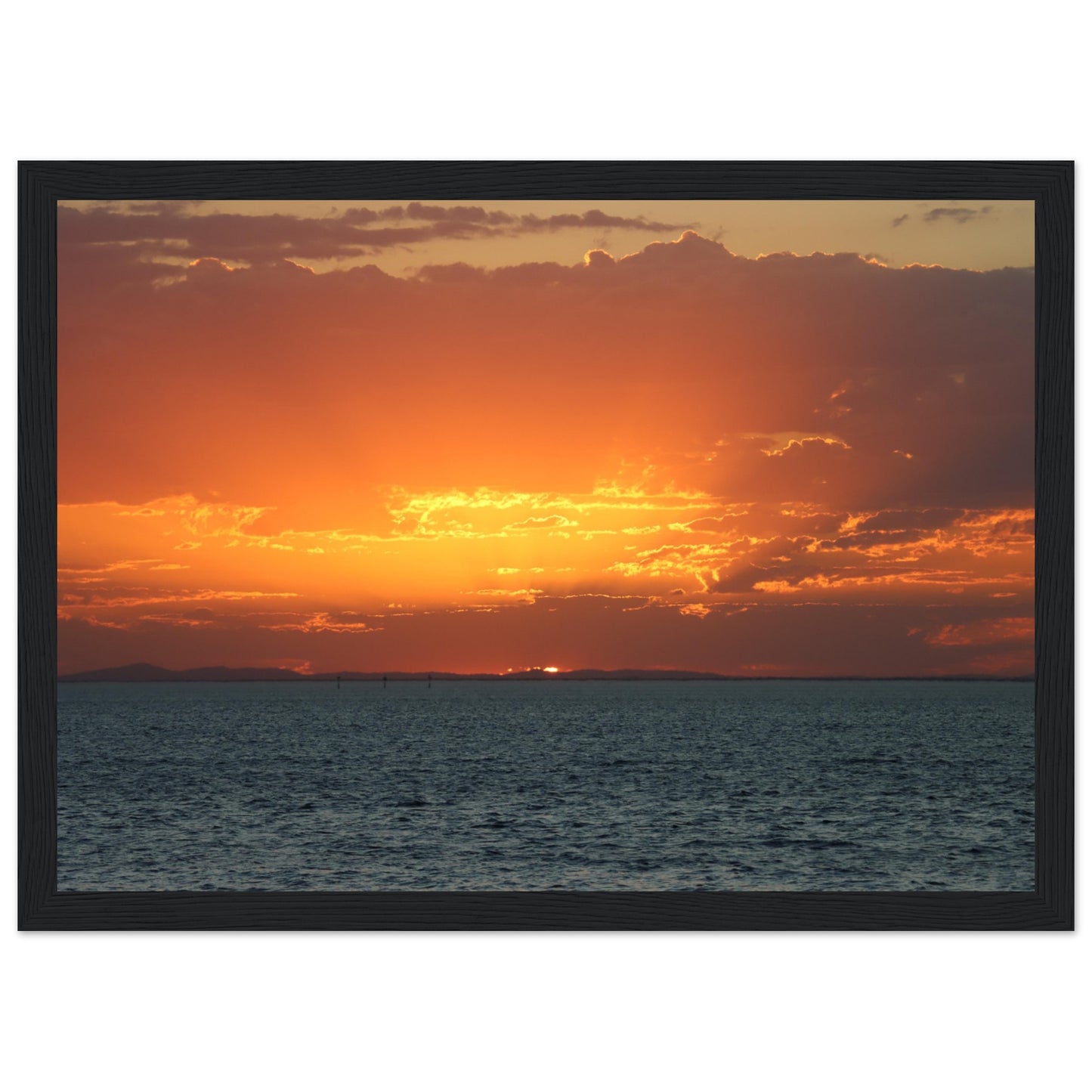 Sun setting through the clouds, Victoria - Premium Matte Paper Wooden Framed Poster