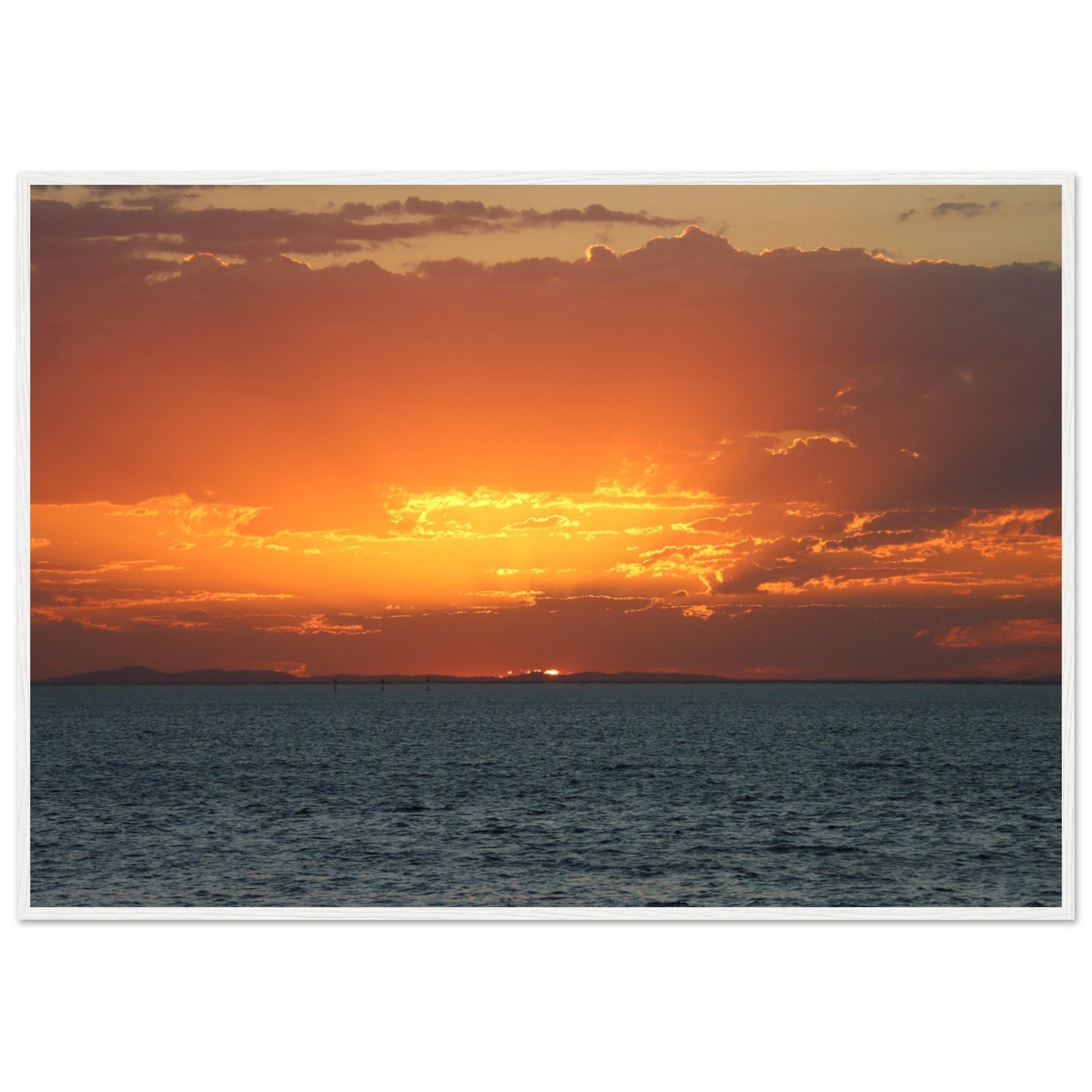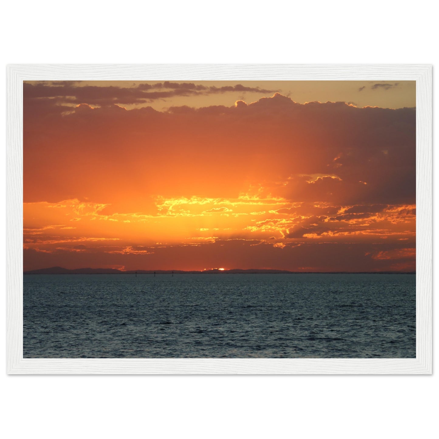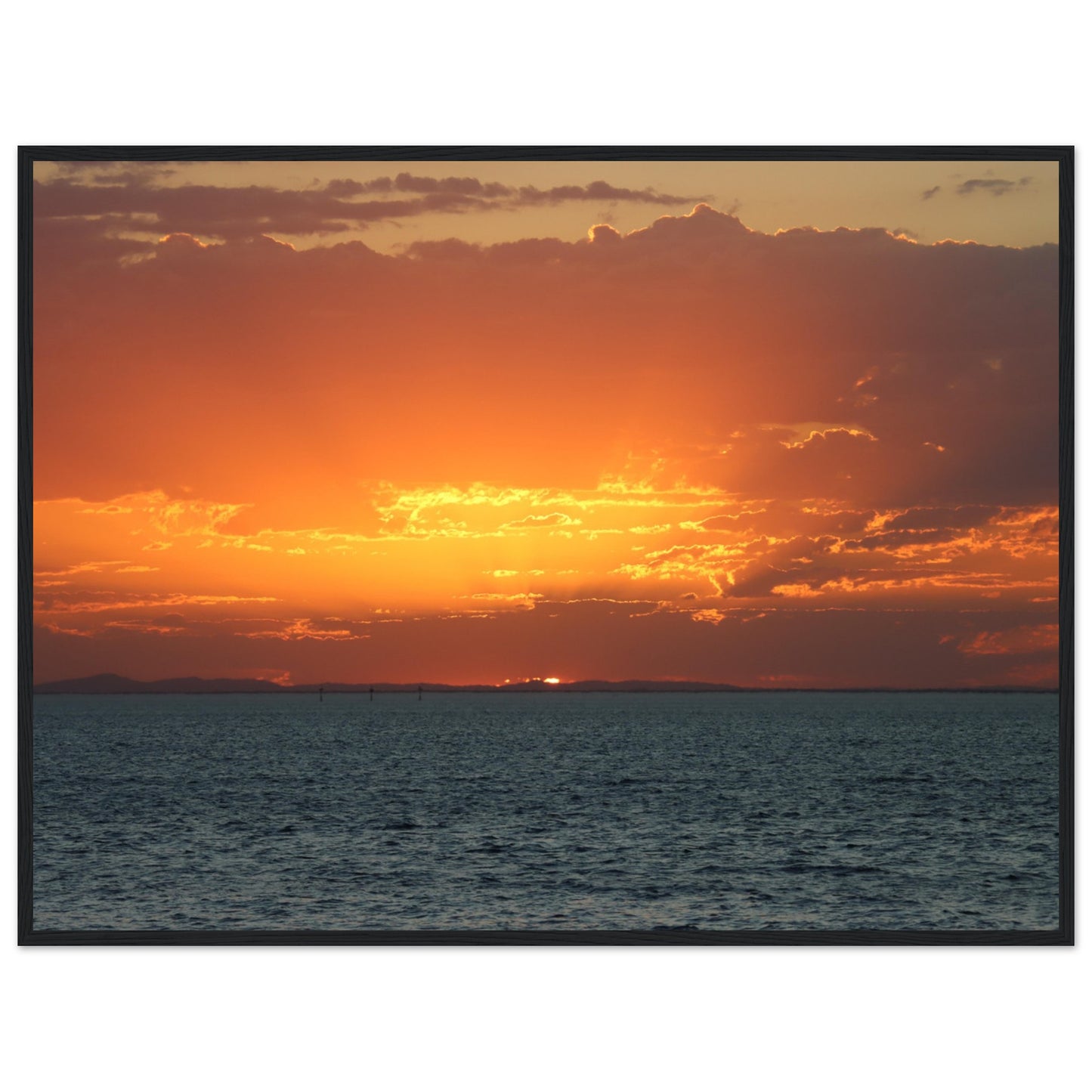 Sun setting through the clouds, Victoria - Premium Matte Paper Wooden Framed Poster