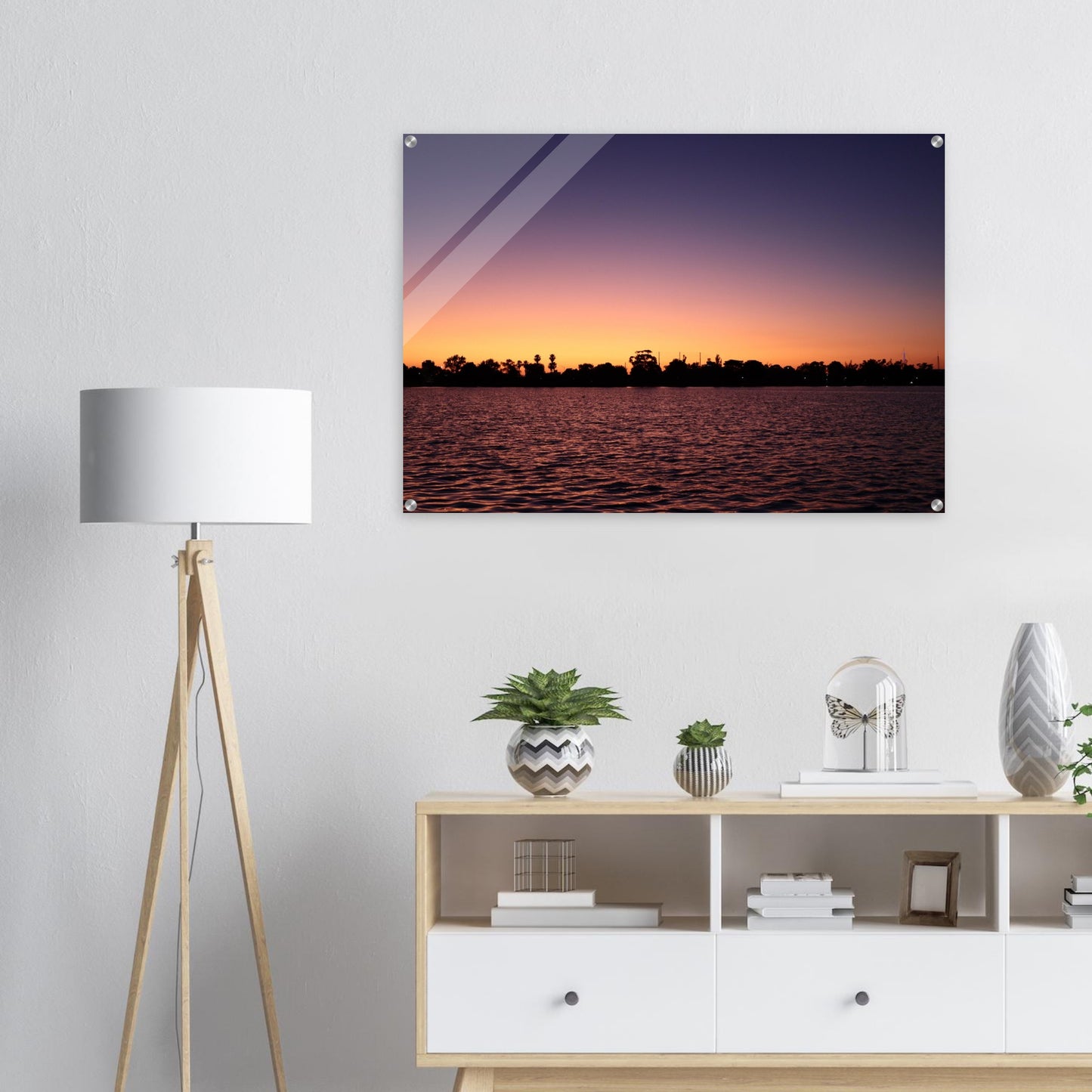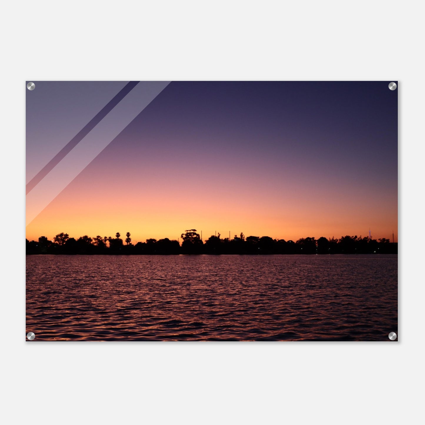 Sunset over the lake, Melbourne - Acrylic prints (lightweight, shatterproof, and temperature-resistant, making them easy to mount on your walls.)
