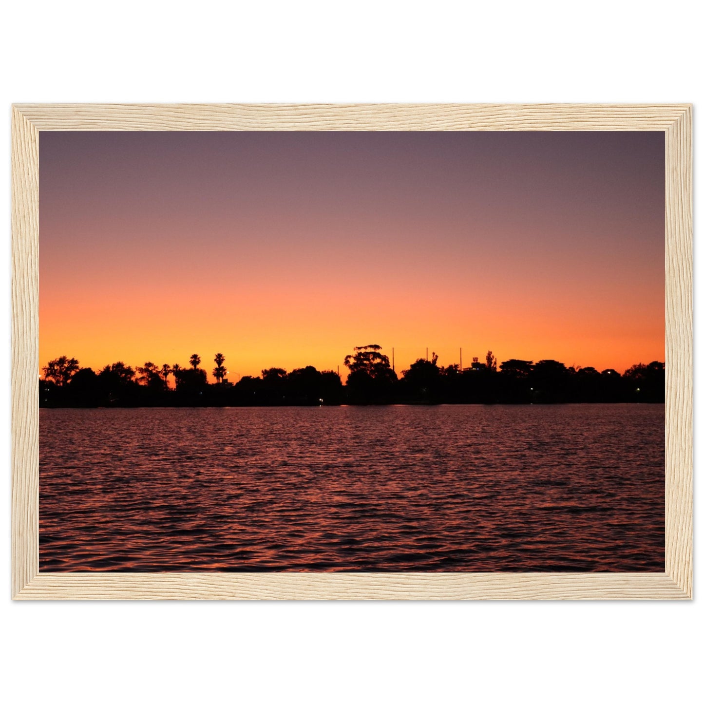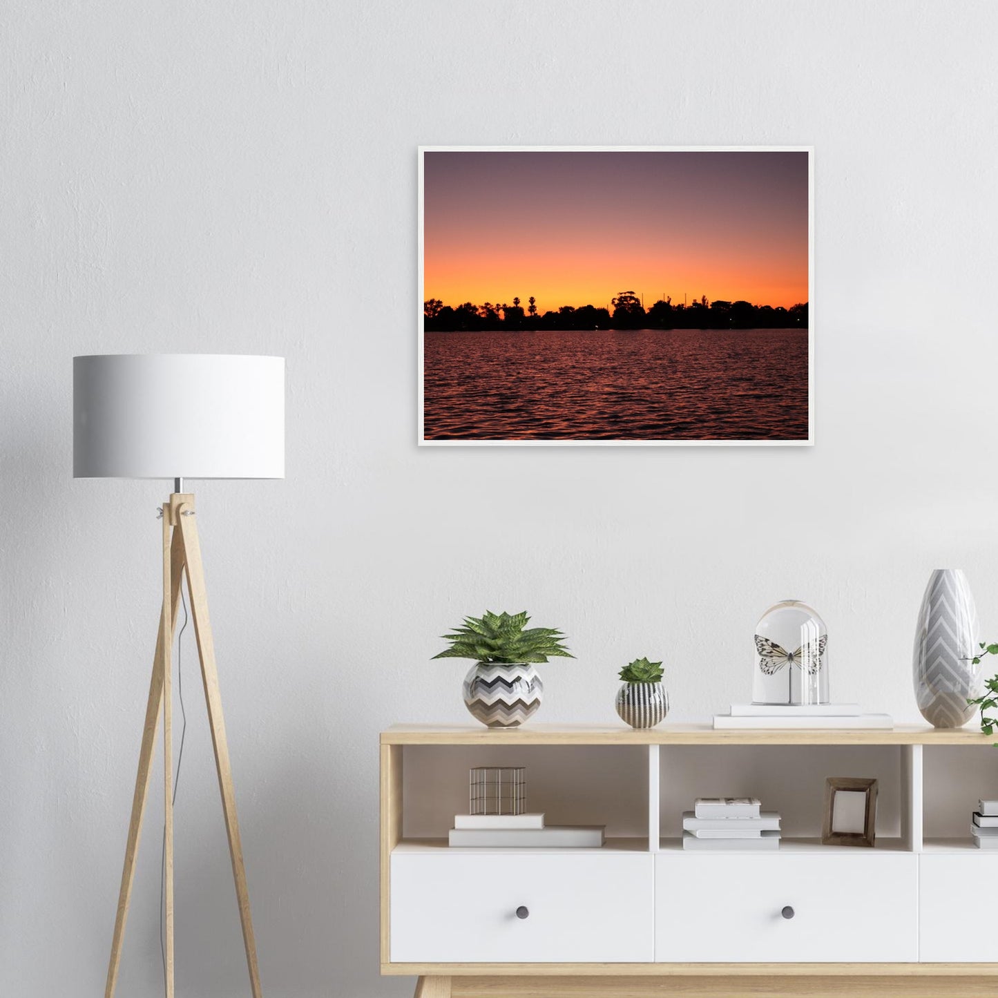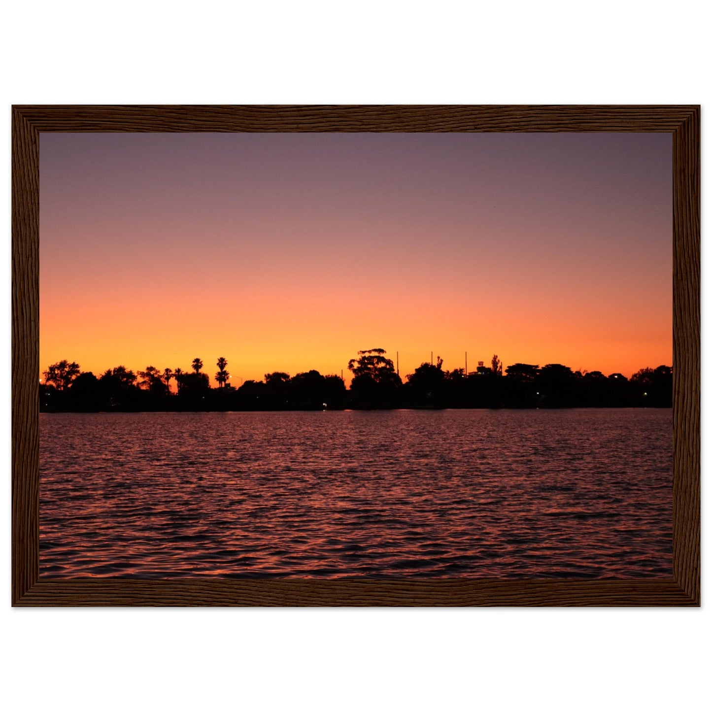 Sunset over the lake, Australia - Premium matte paper poster with wooden frame