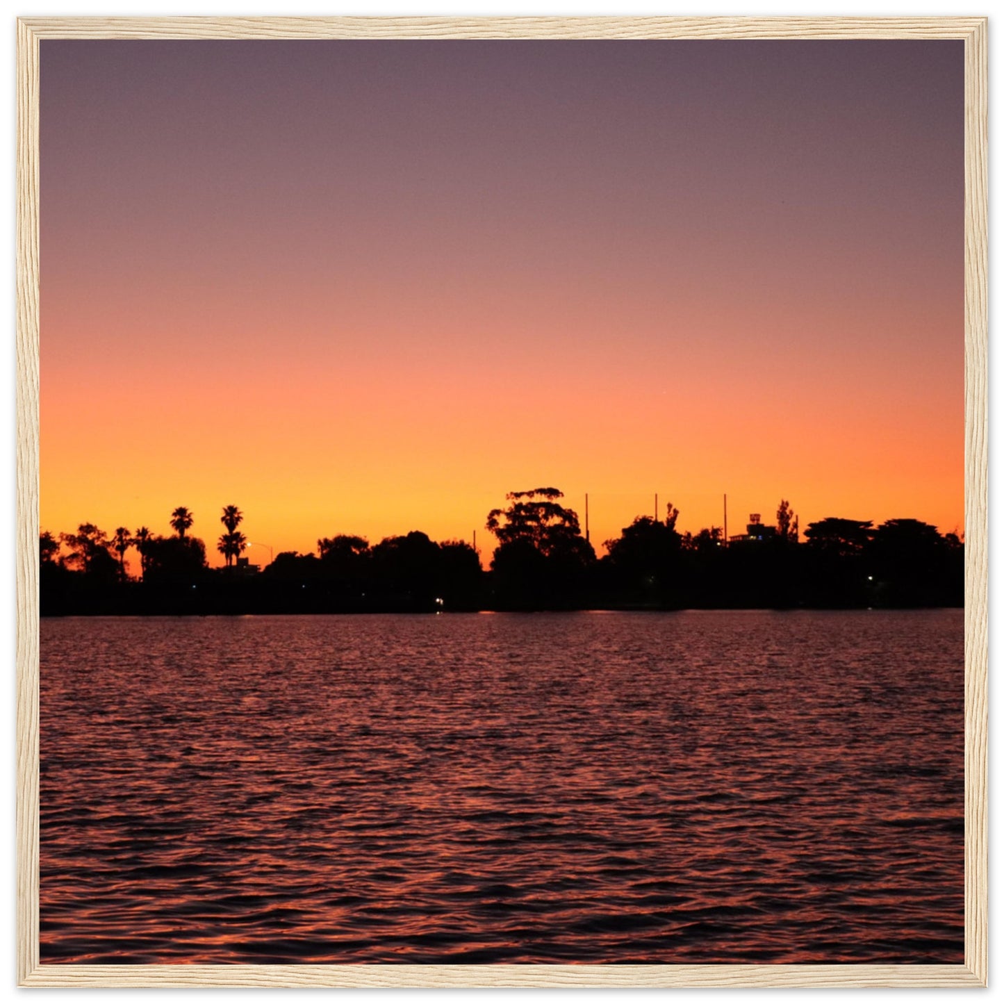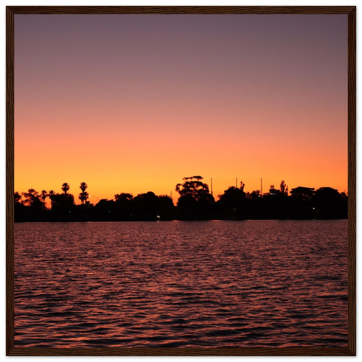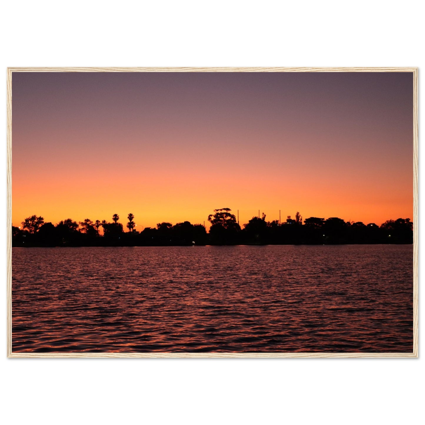 Sunset over the lake, Australia - Premium matte paper poster with wooden frame