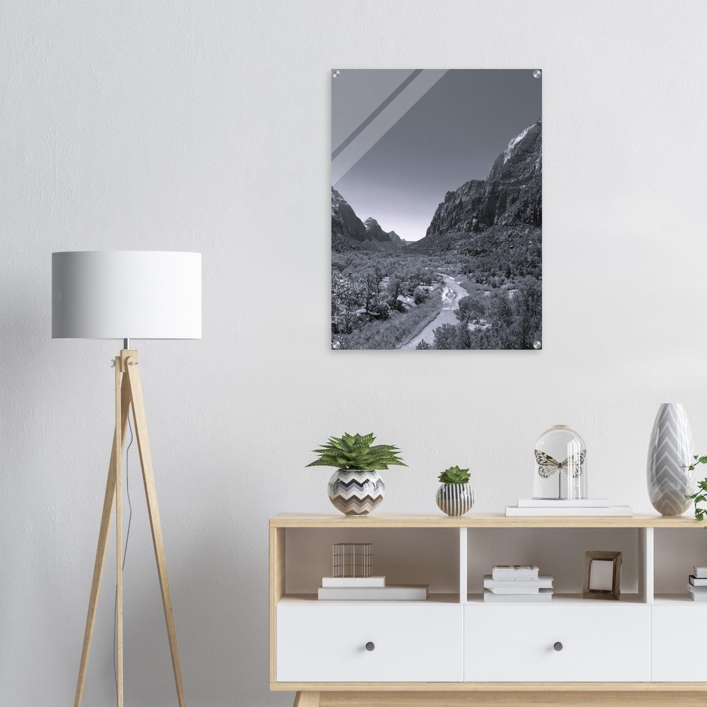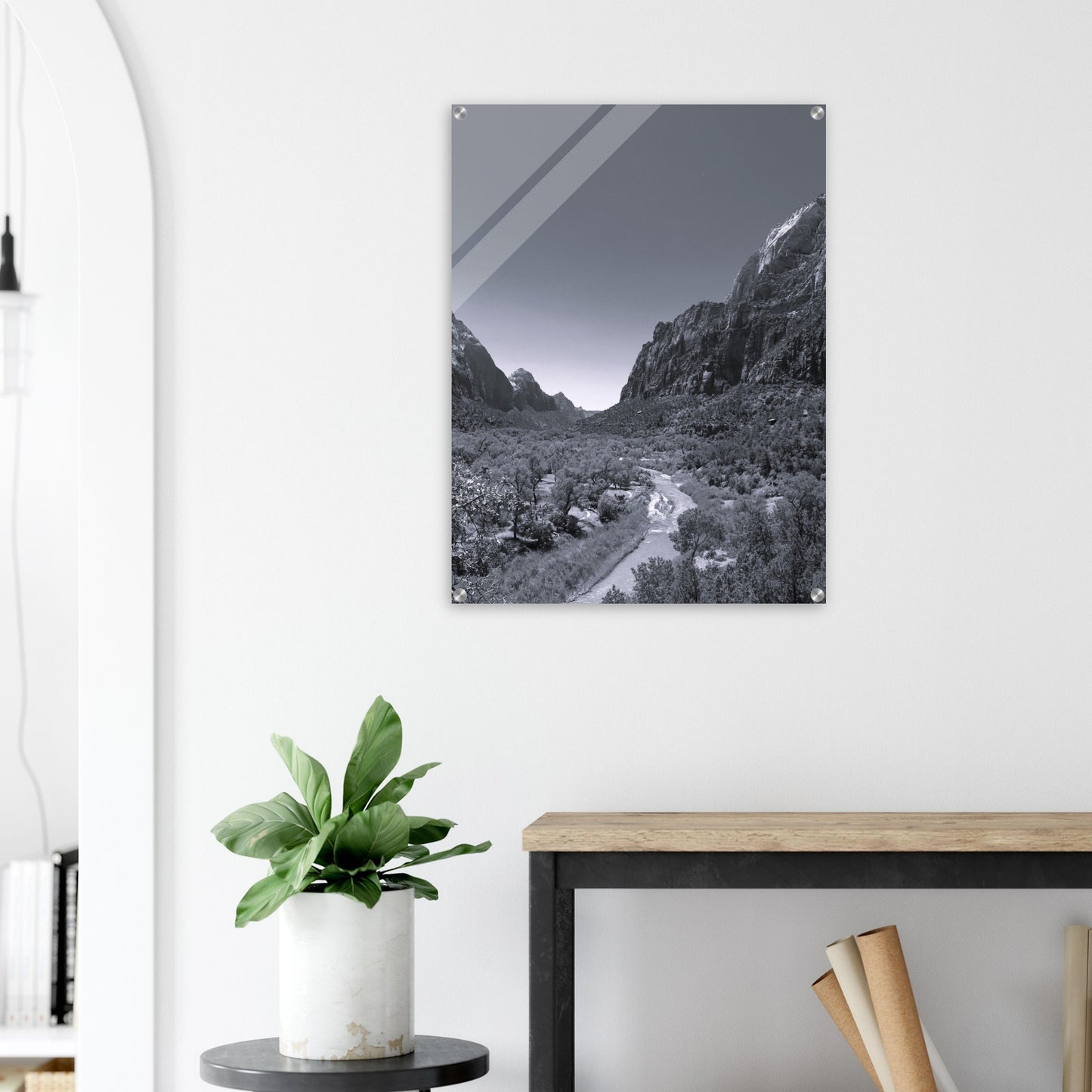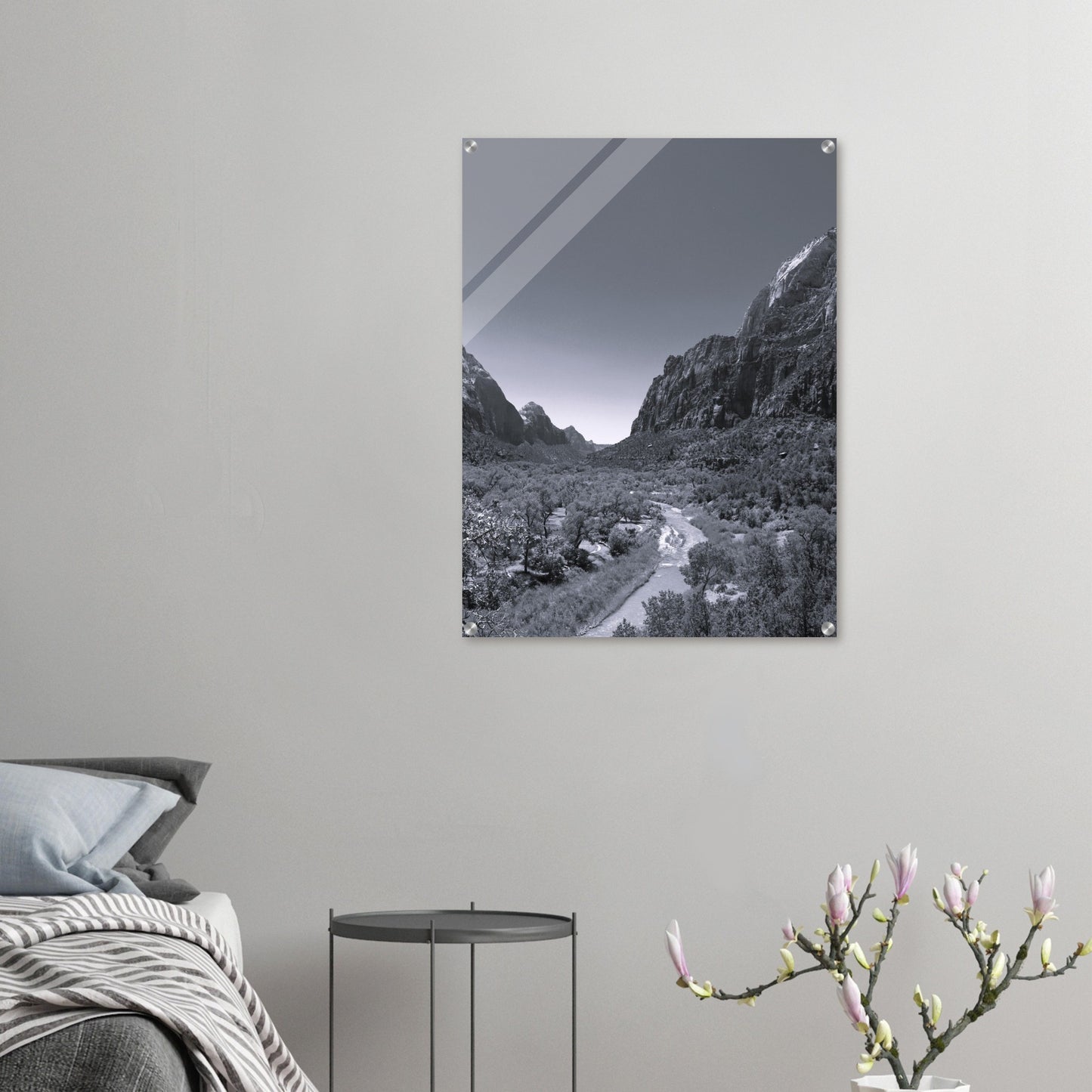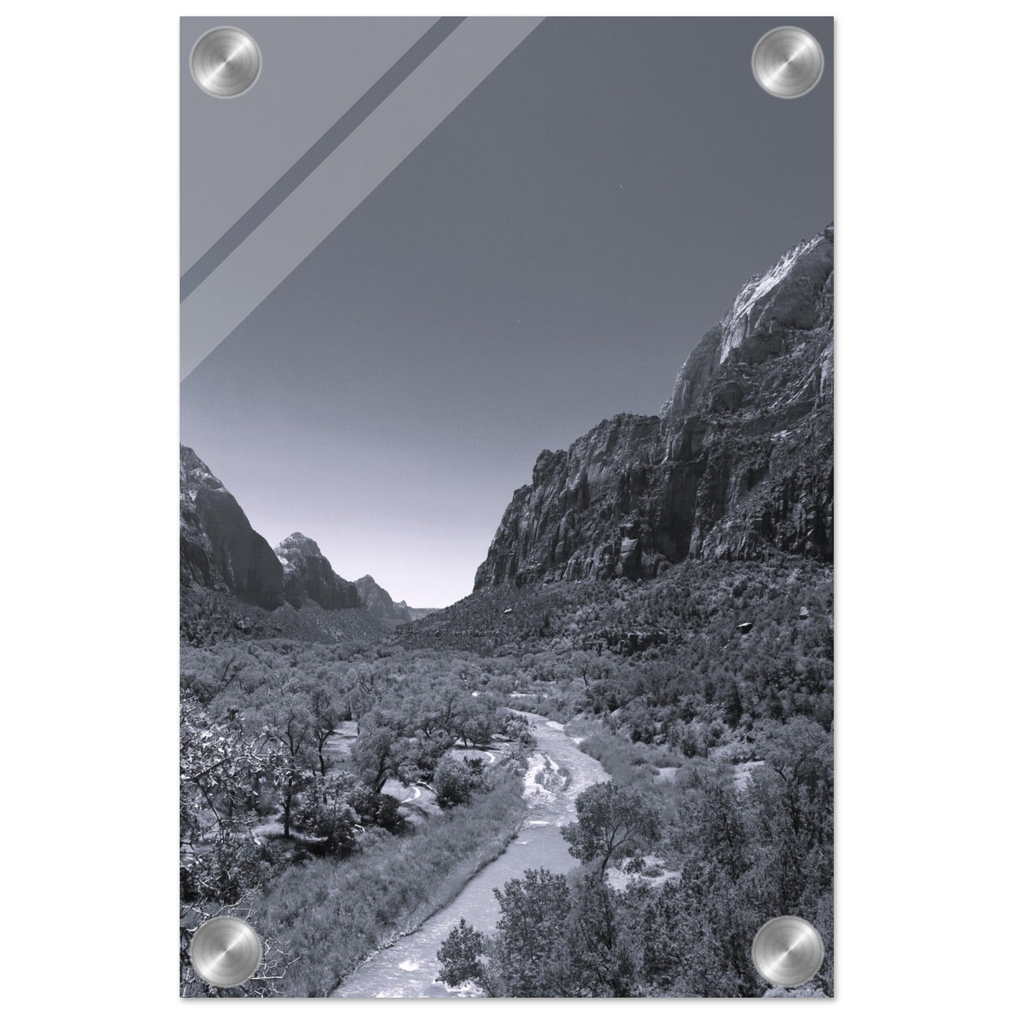 Zion National Park river - Black & White - Acrylic print (lightweight, shatterproof, and temperature-resistant, making them easy to mount on your walls.)